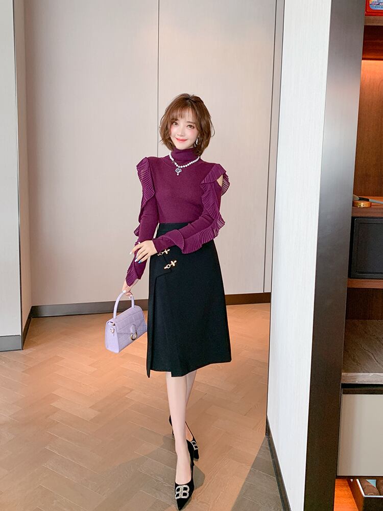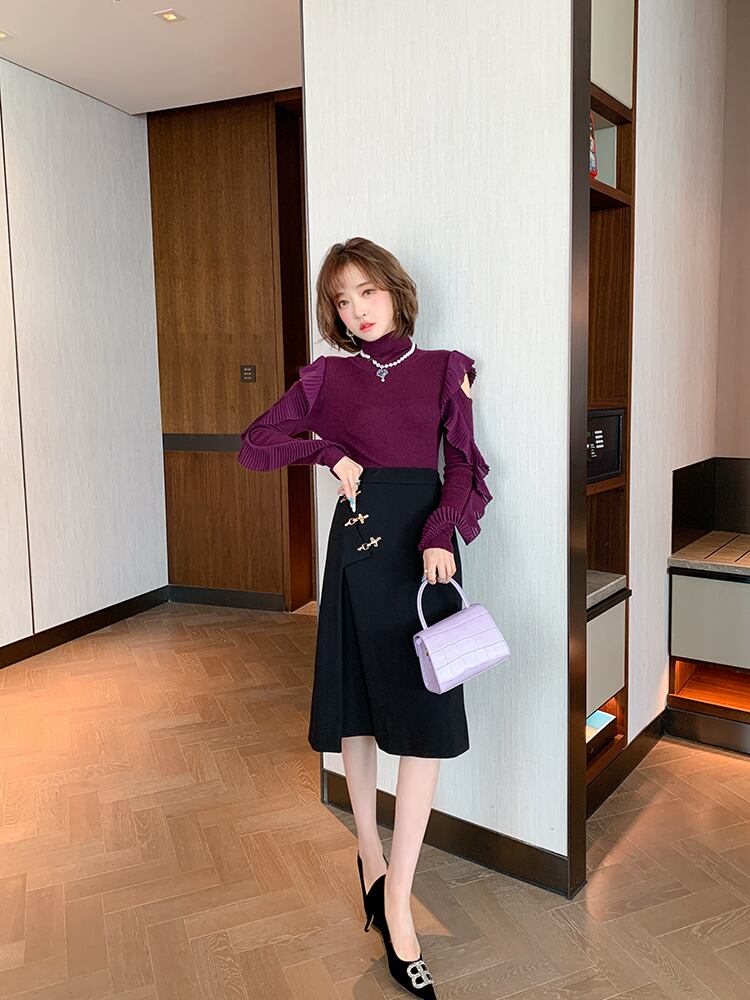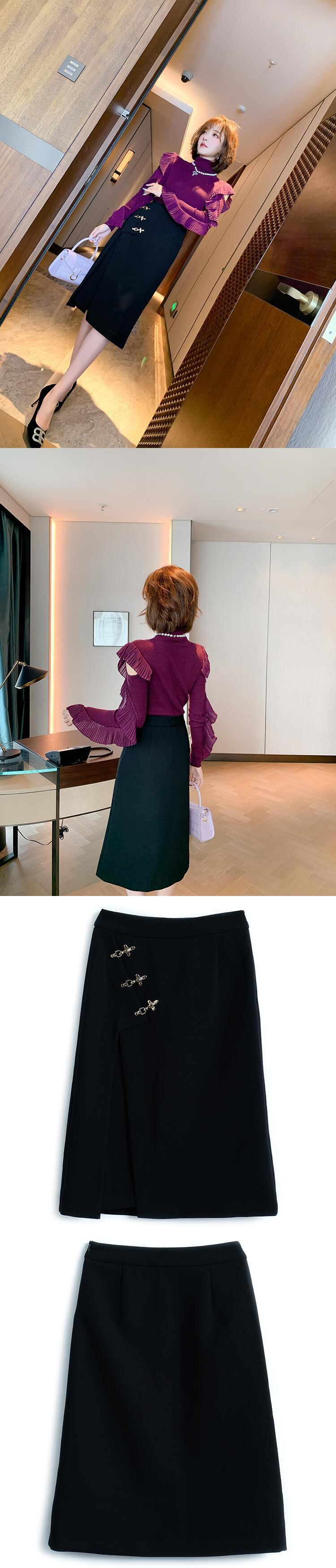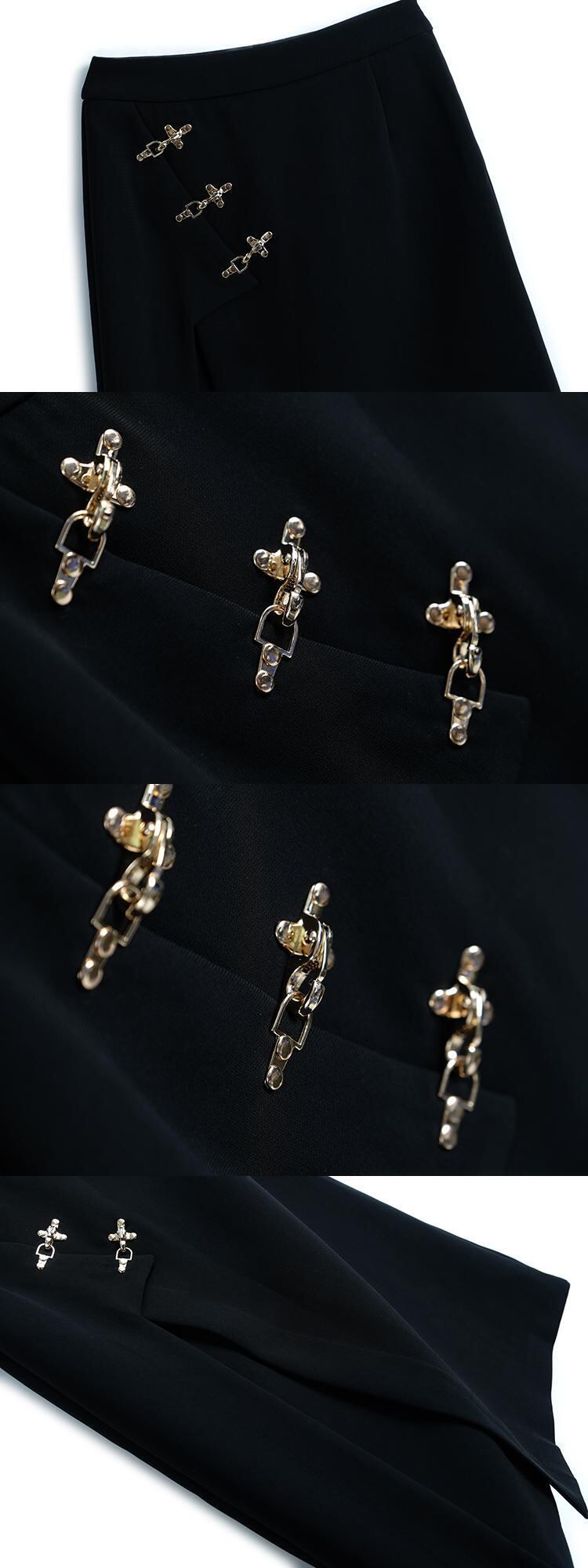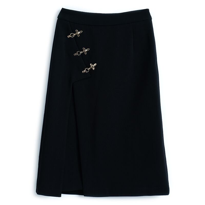 スタンダードメタルバックルスリットハイウェストウェストスカート オータムウィンター レトロ 秋物 冬物 MIUCO89038784804