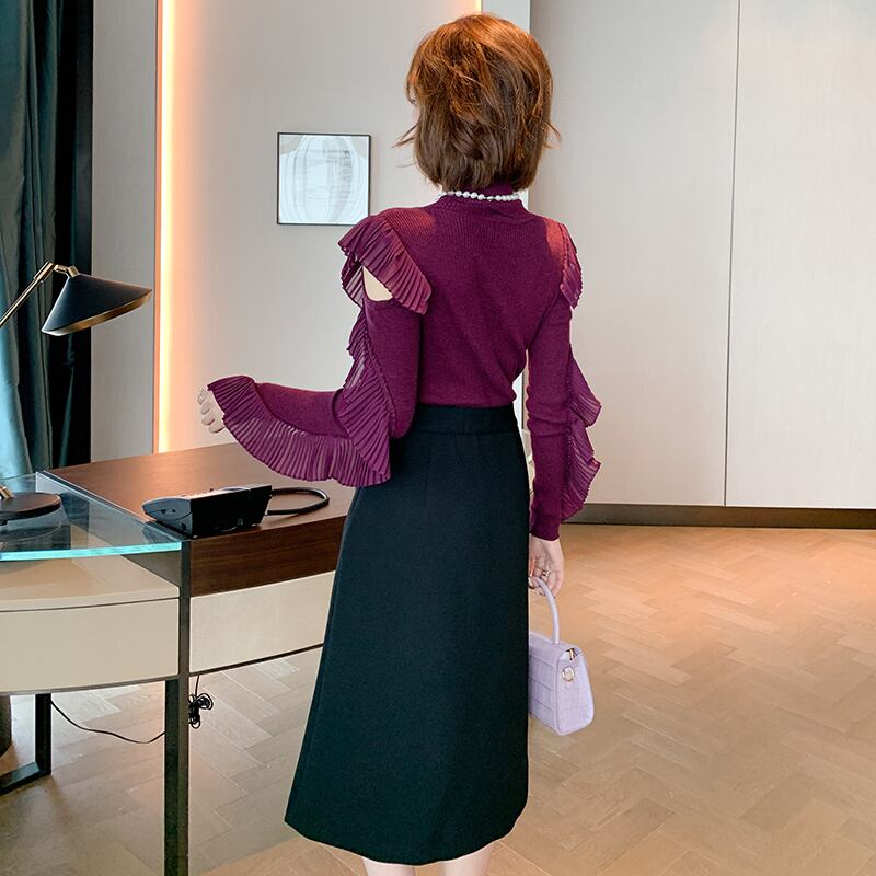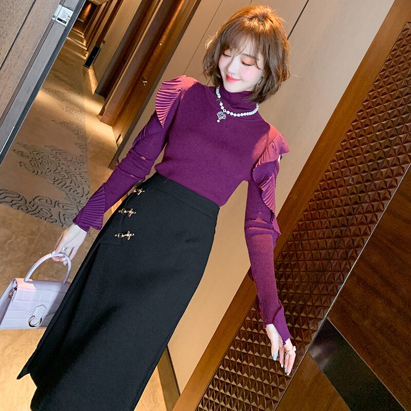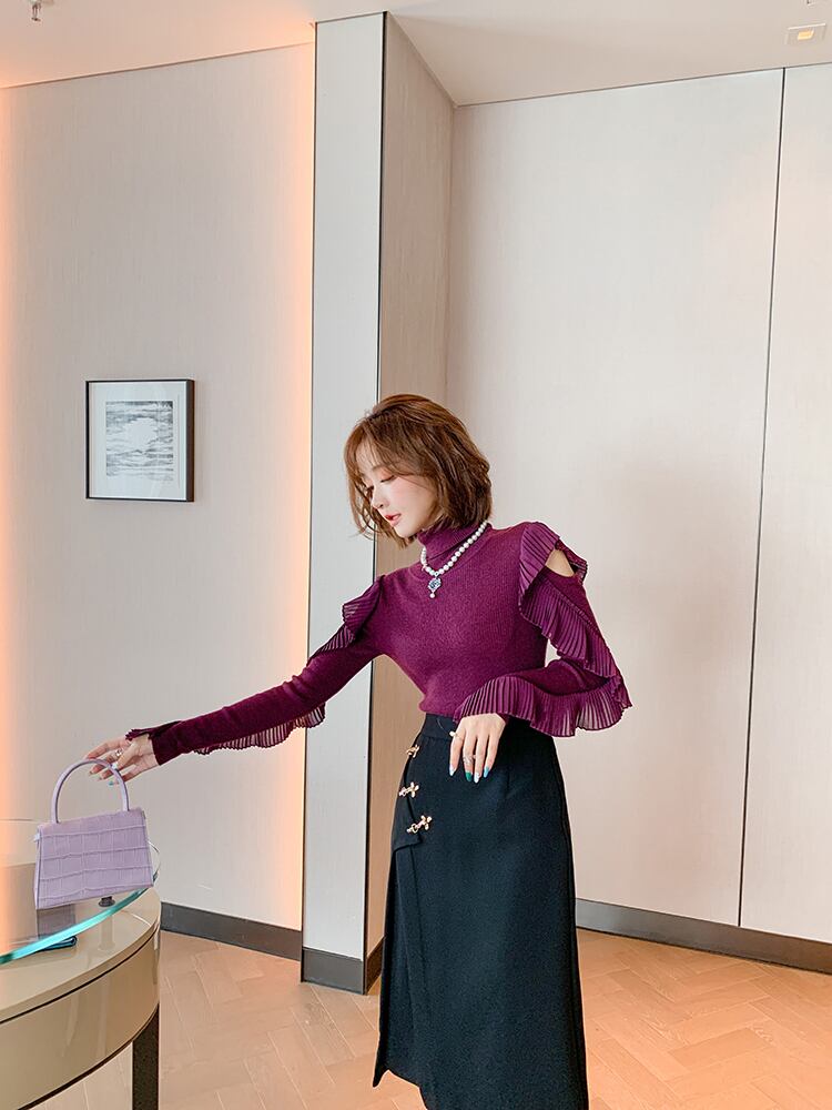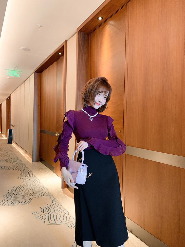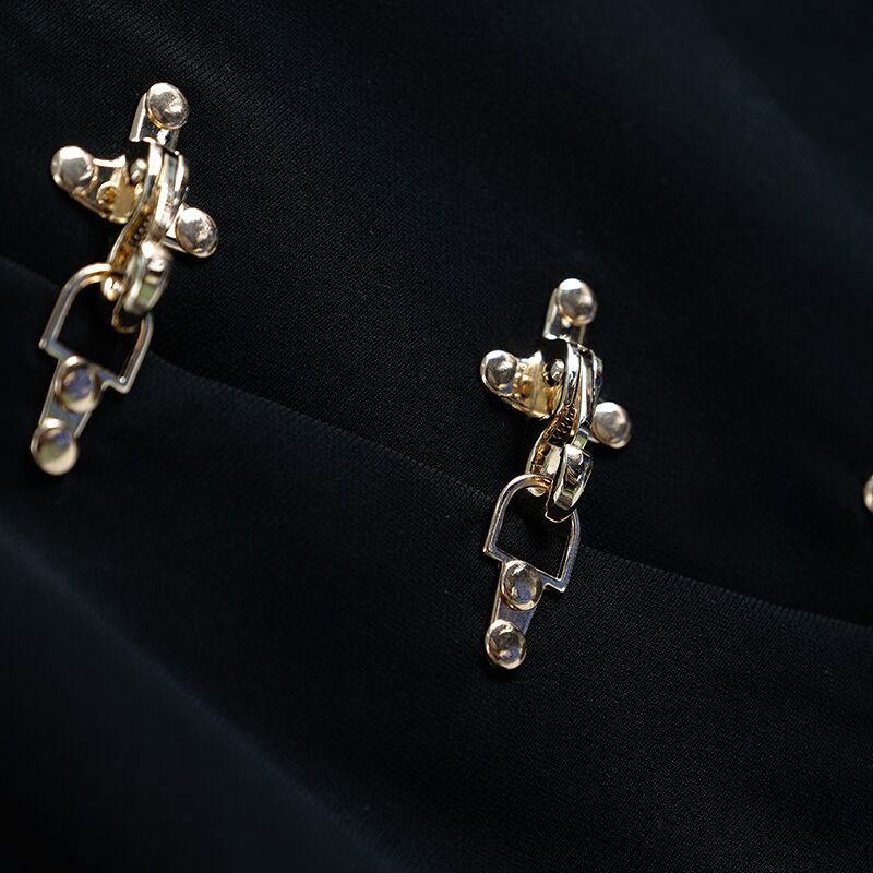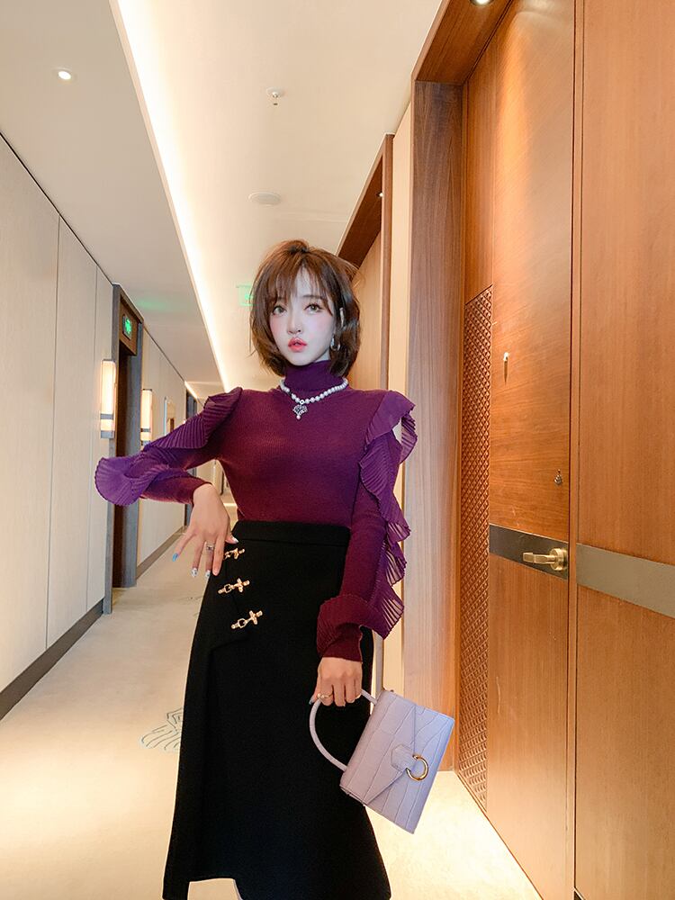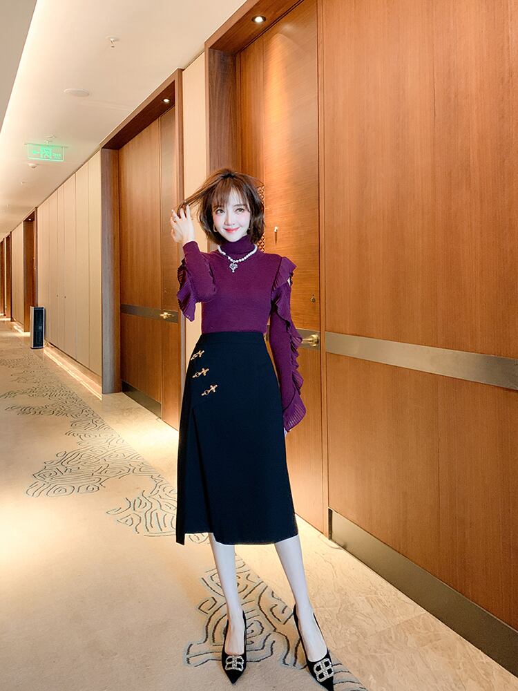 スタンダードメタルバックルスリットハイウェストウェストスカート オータムウィンター レトロ 秋物 冬物 MIUCO89038784804