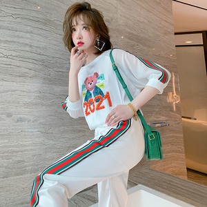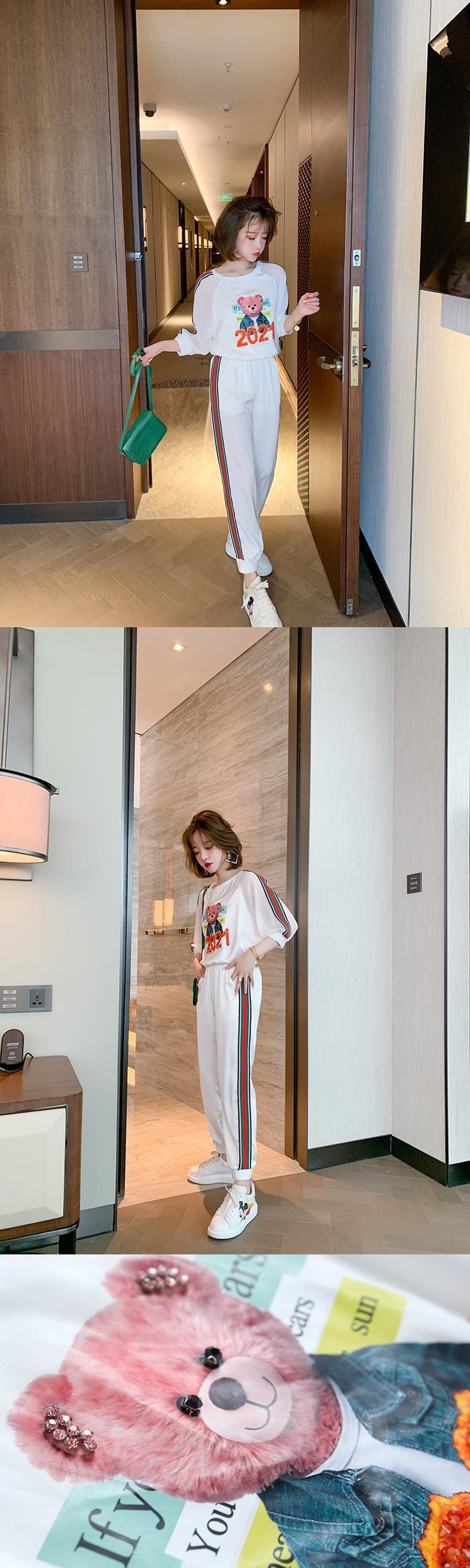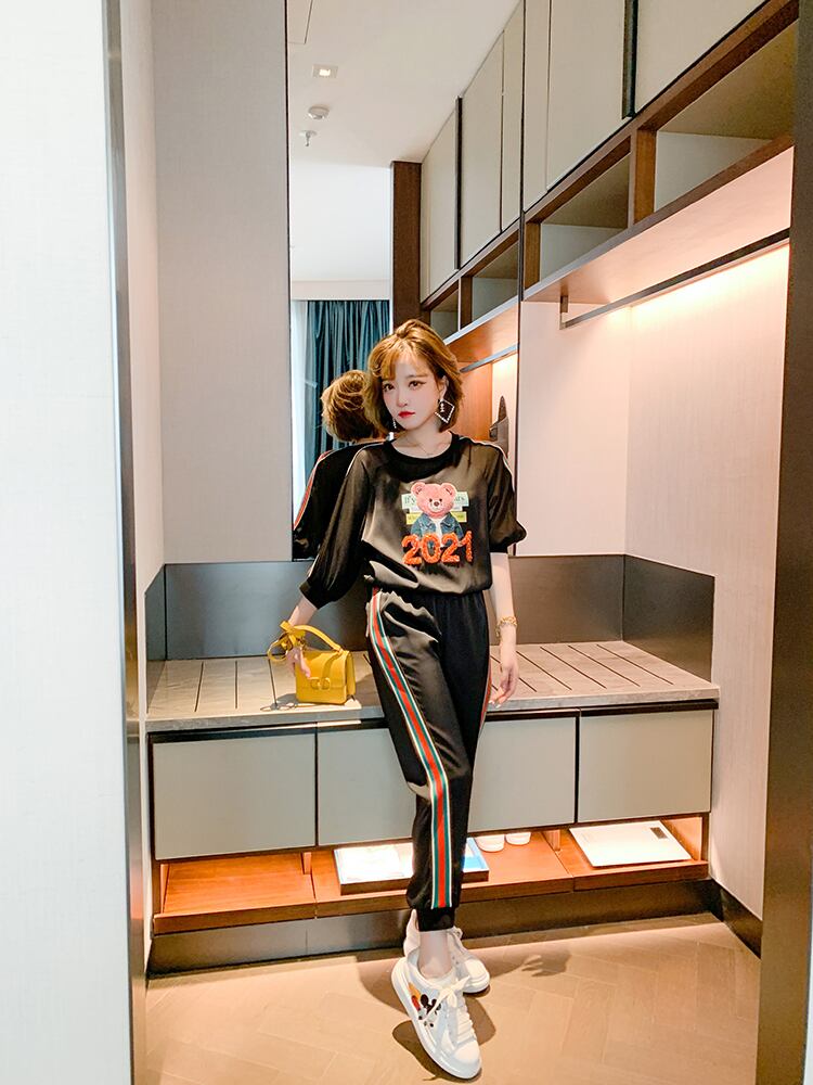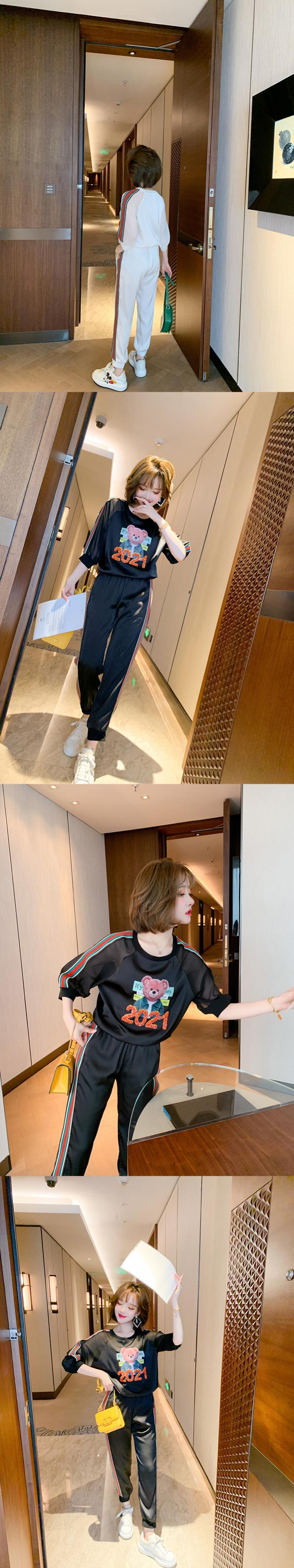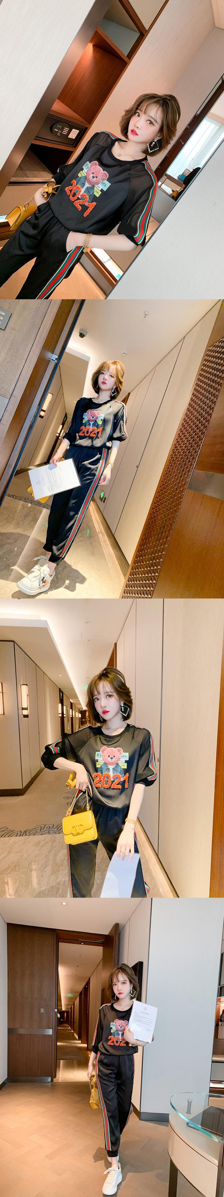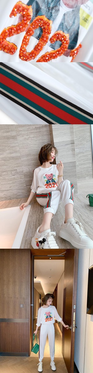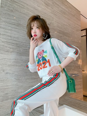 スパンコールラウンドネックトップス カジュアルパンツ サマースタイル 夏物 Oネック MIUCO46851210461