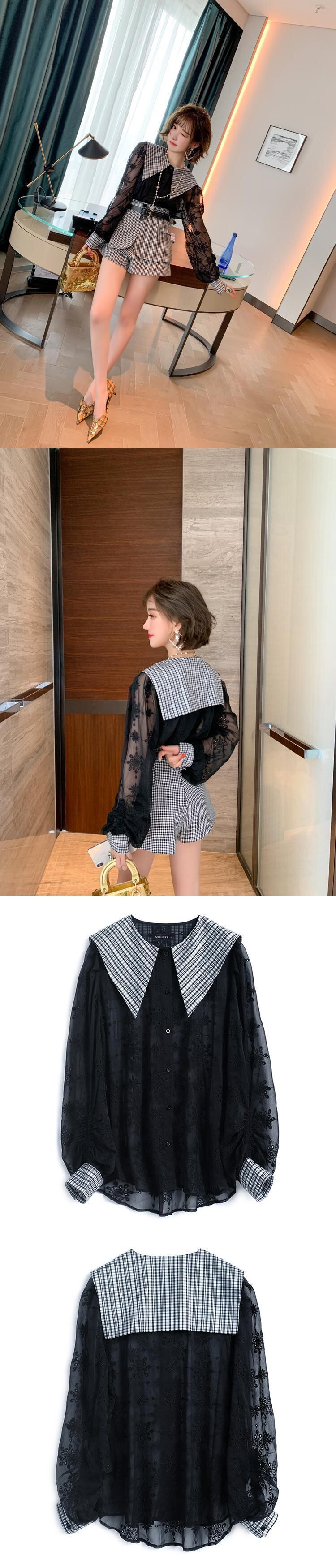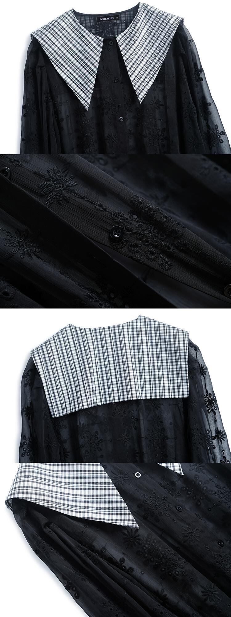 格子柄レースセーター オータム レッド 刺繍 秋物 MIUCO50818623974
