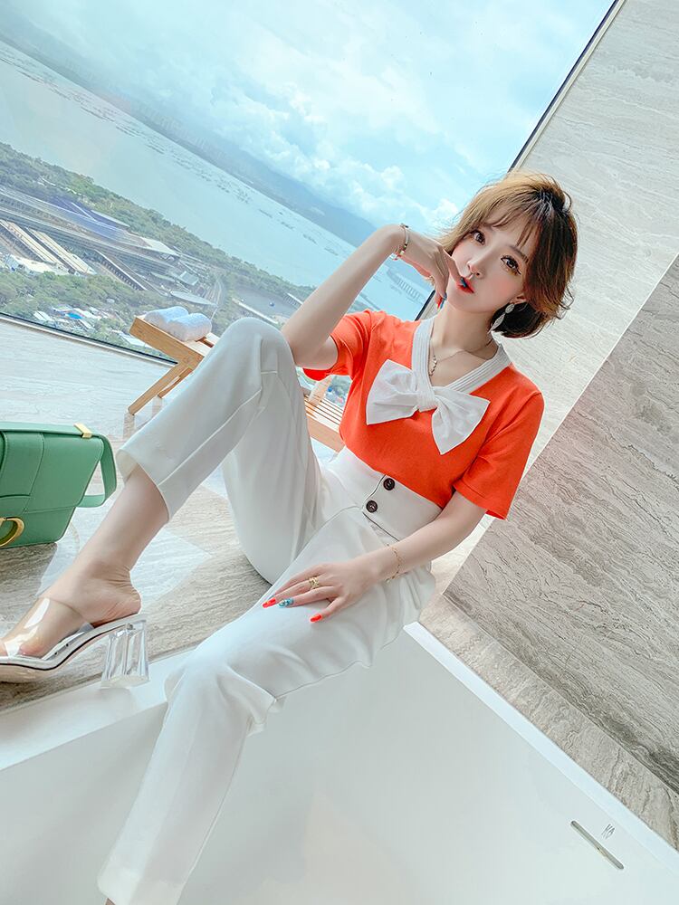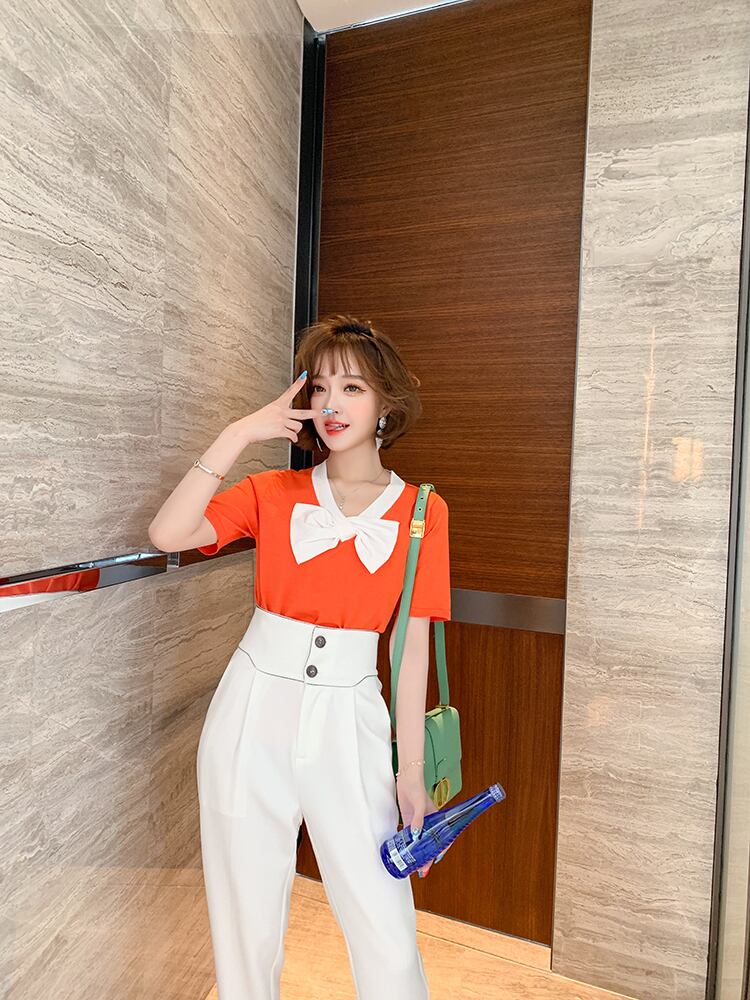 カラーVネックスリムニット オータム リボン 秋物 MIUCO64852186504