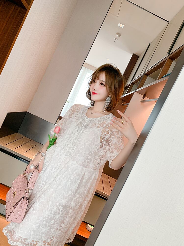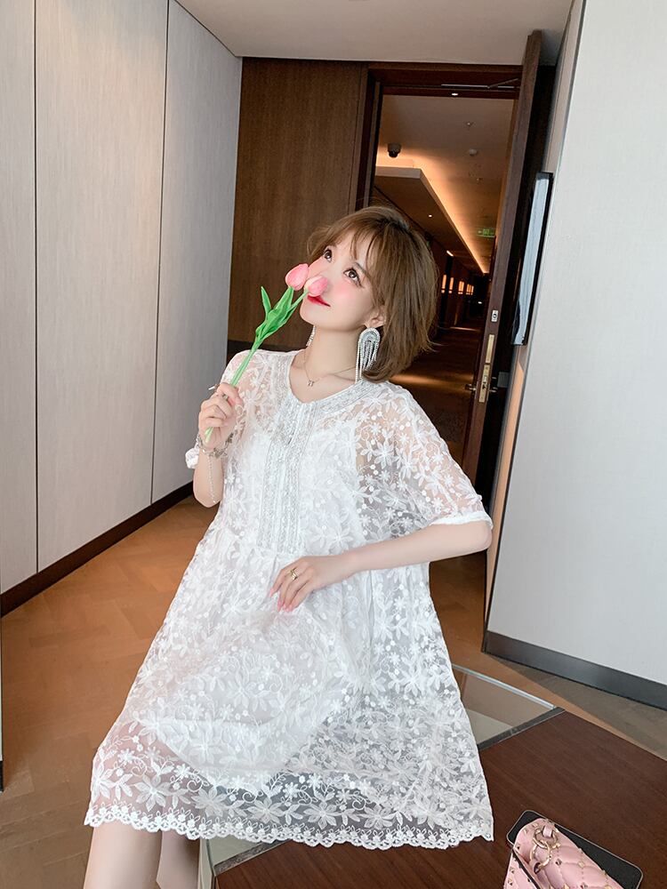 レーススカート ドレス サマー レッド 刺繍 夏物 MIUCO65255213250