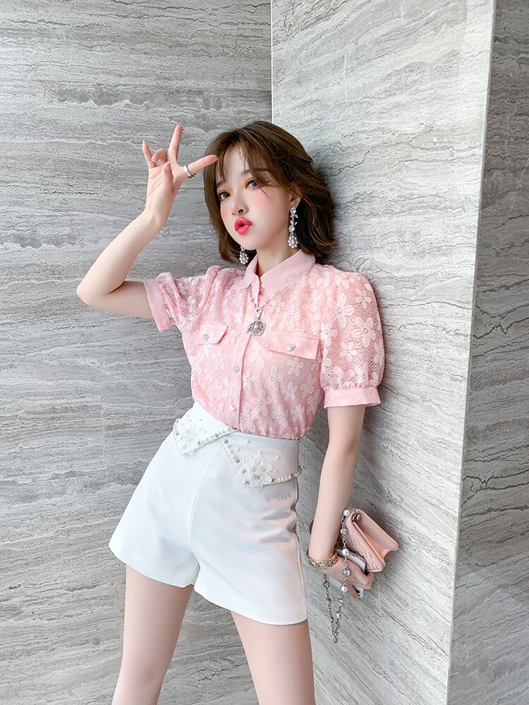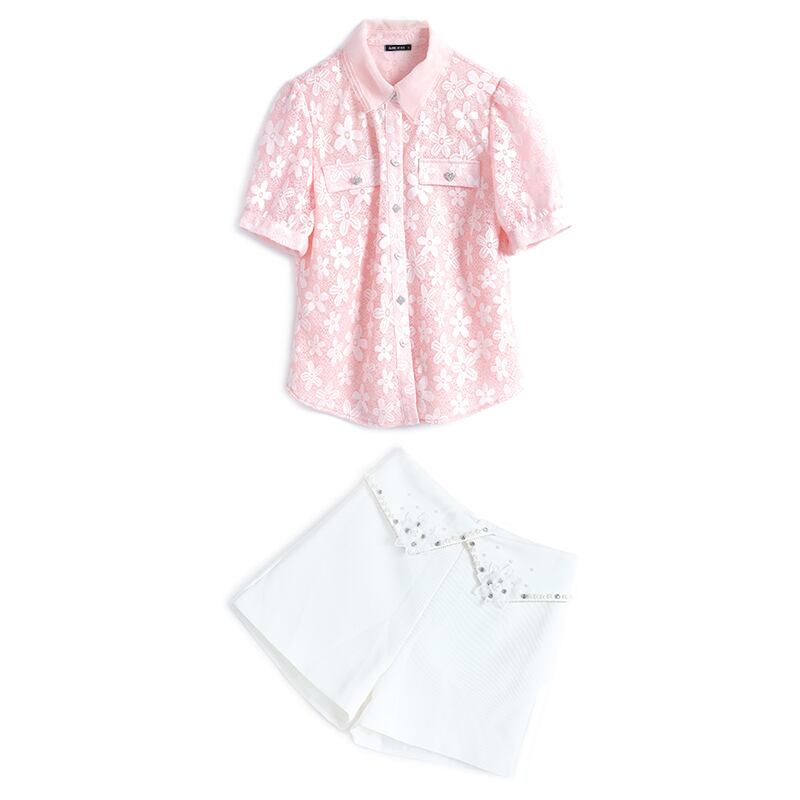 レースジャカードスリーブシャツ Flowerデザイン ショーツ ブルマー フラワーデザイン MIUCO95846583768