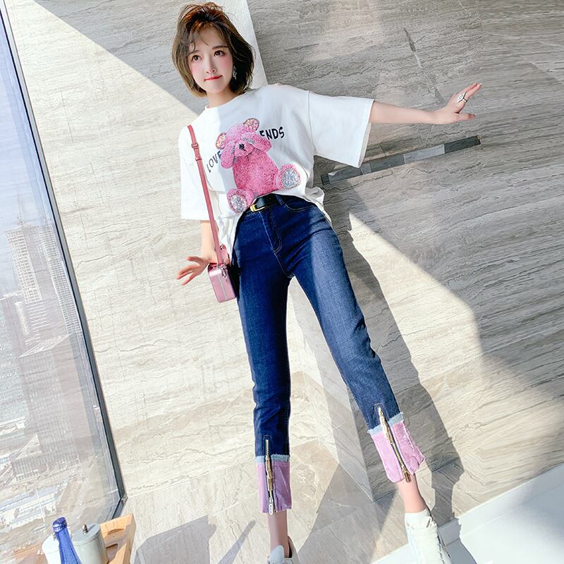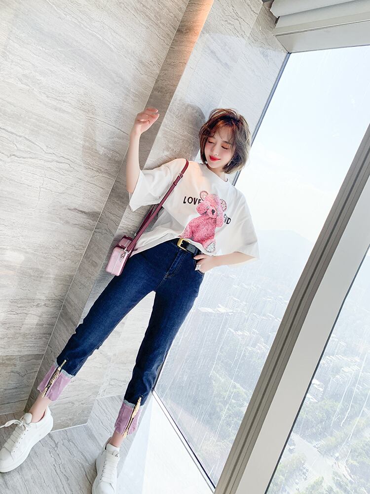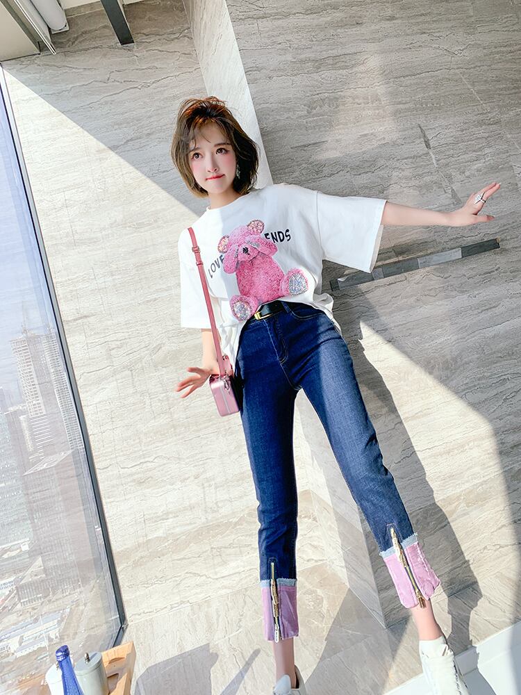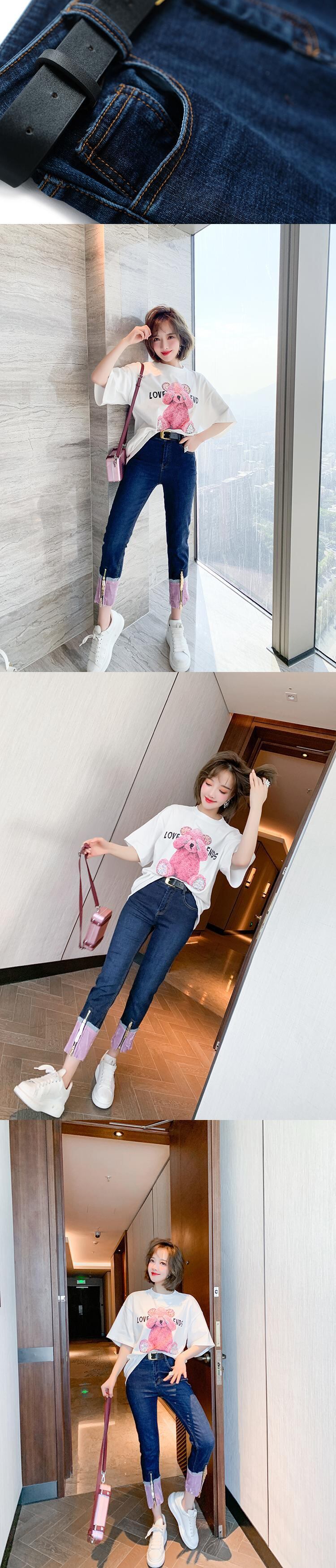 ラウンドネックTシャツ ジッパージーンズ Oネック MIUCO94860654781