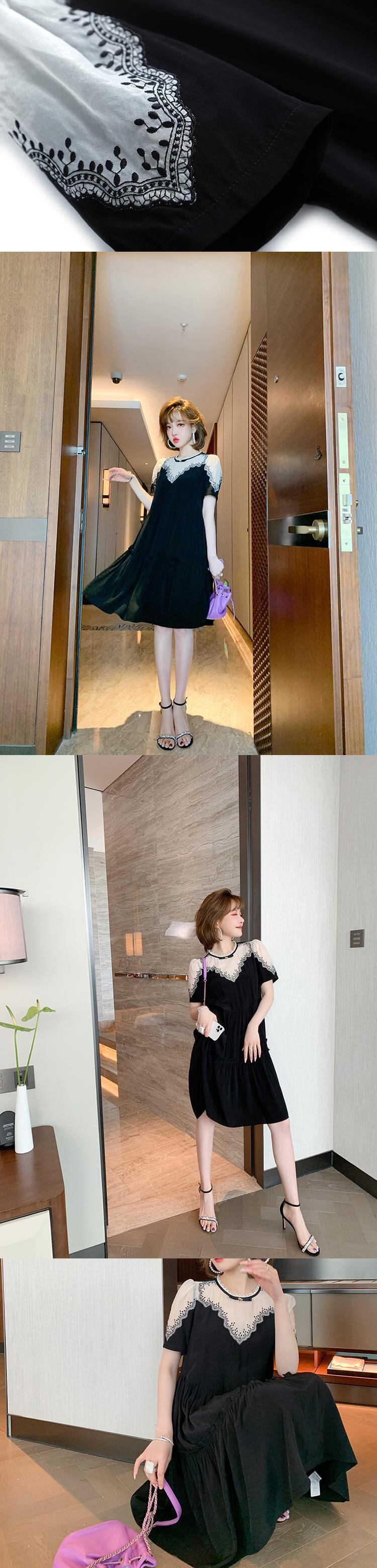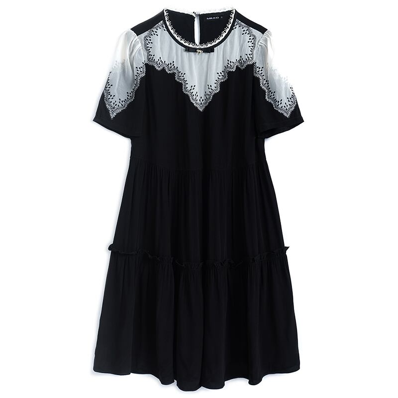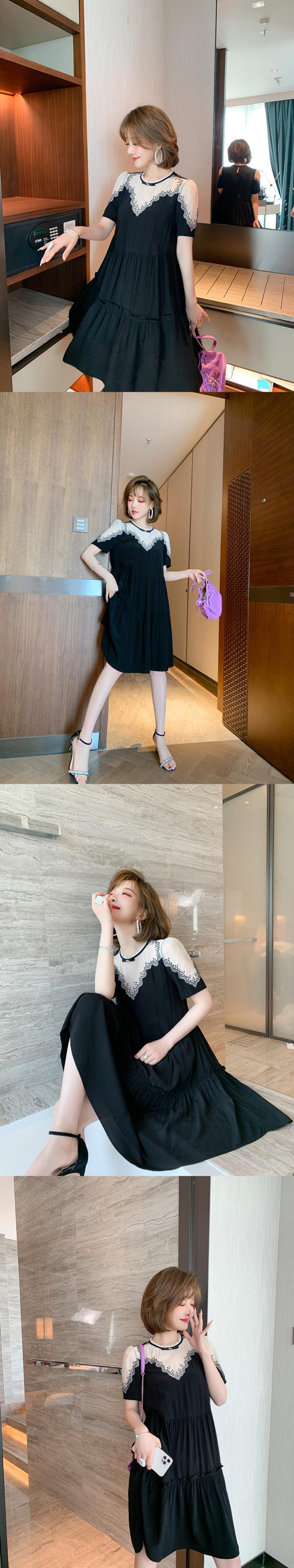 カラーレースパターンハイウェストウェストルーズAラインドレス サマースタイル 夏物 ステッチ MIUCO48786749107