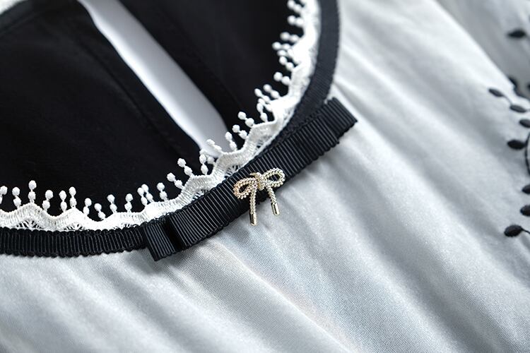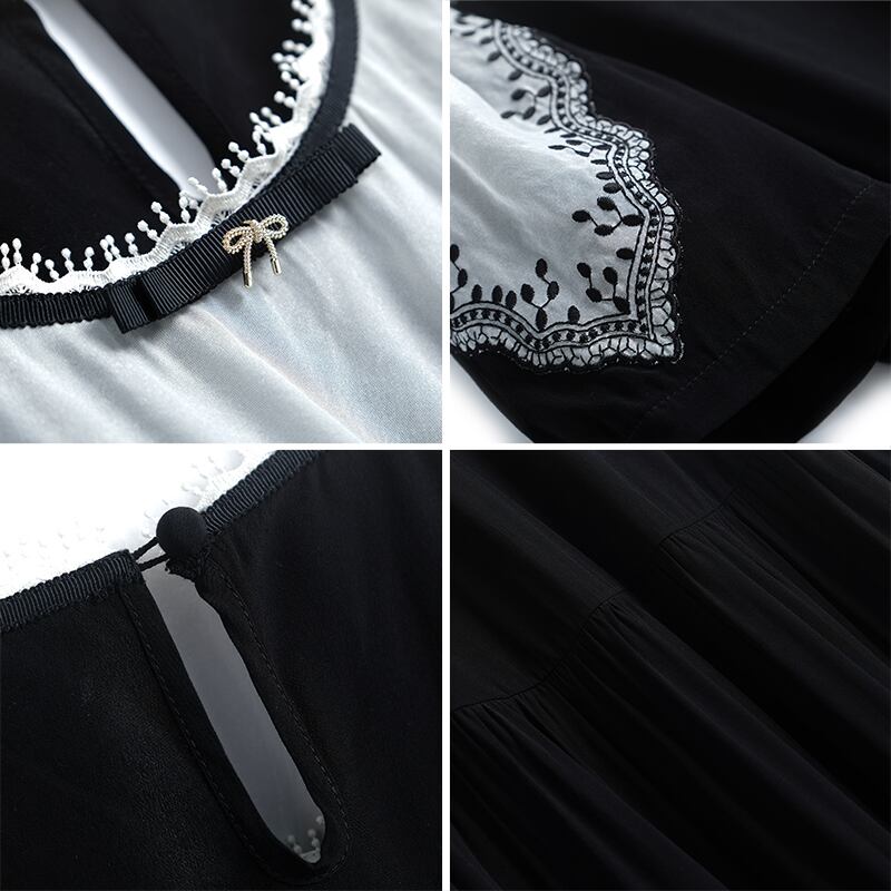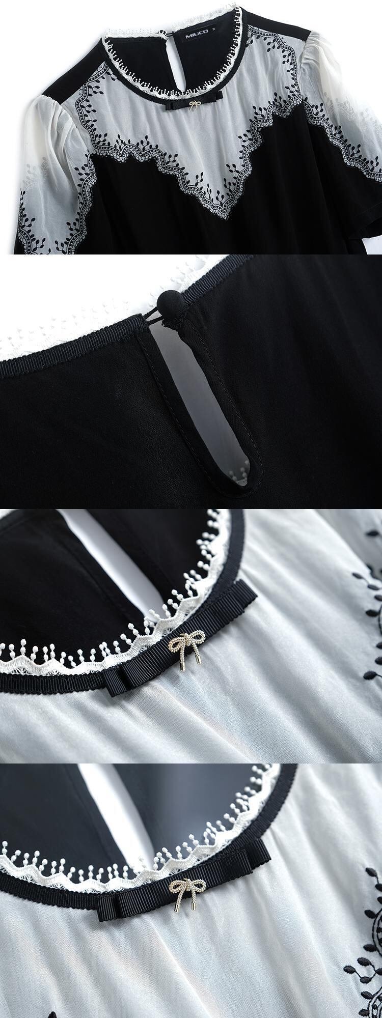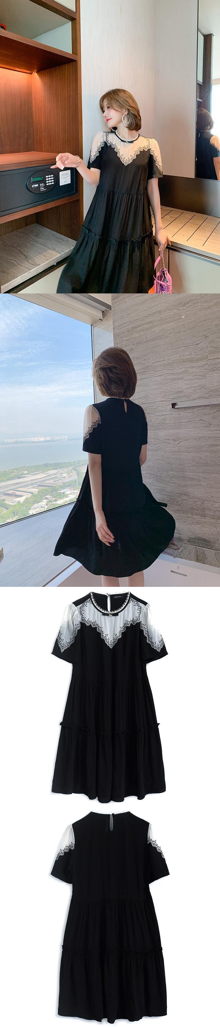 カラーレースパターンハイウェストウェストルーズAラインドレス サマースタイル 夏物 ステッチ MIUCO48786749107