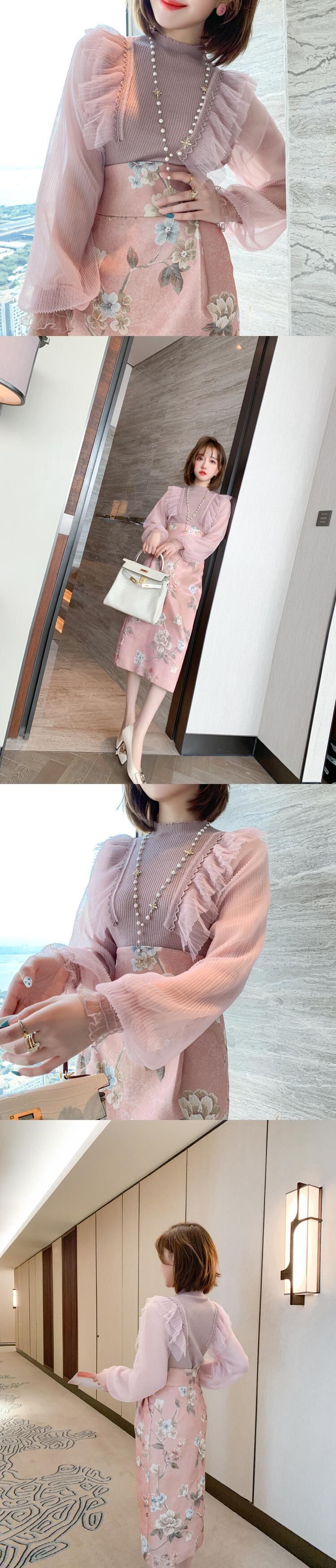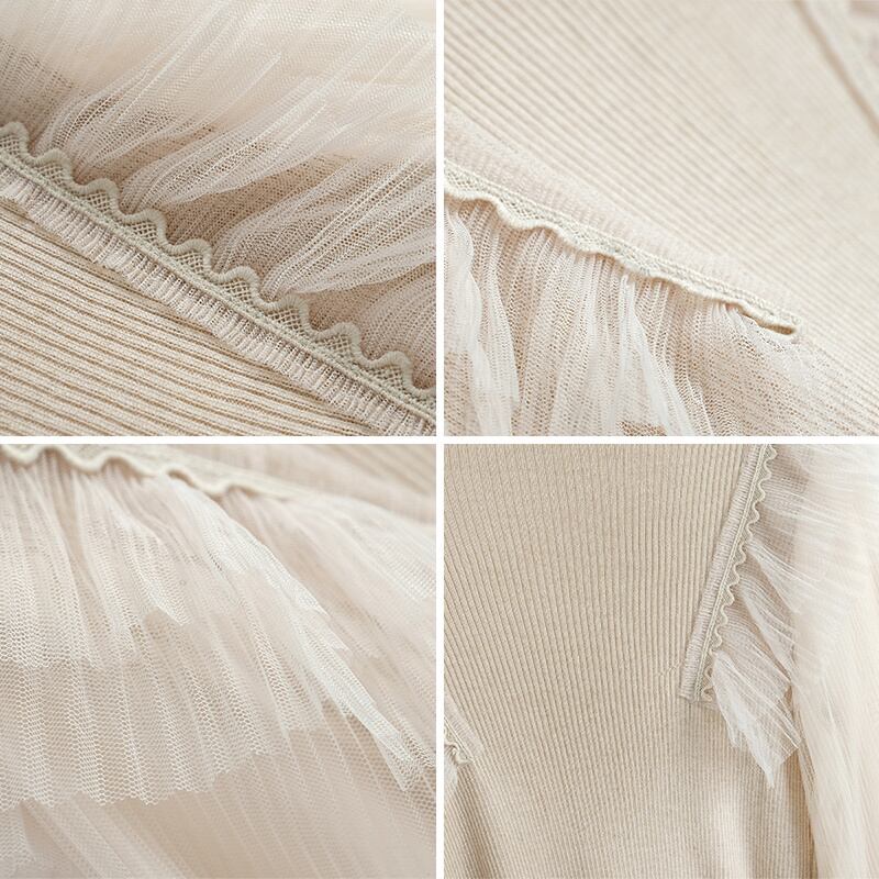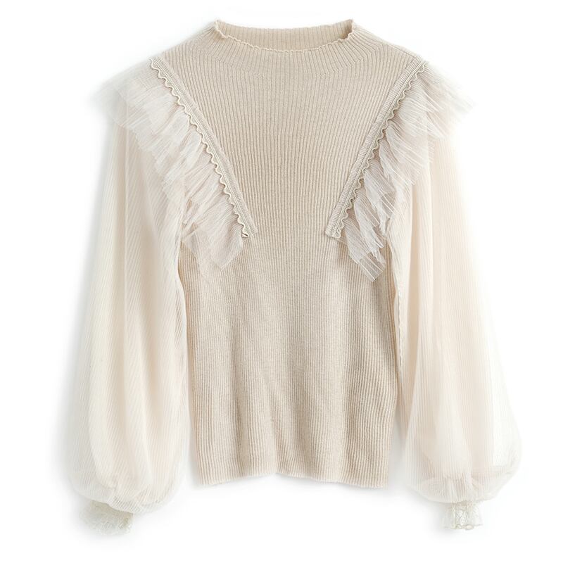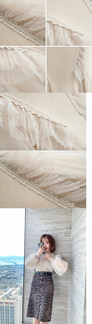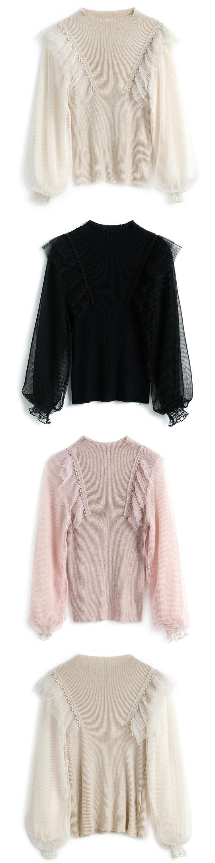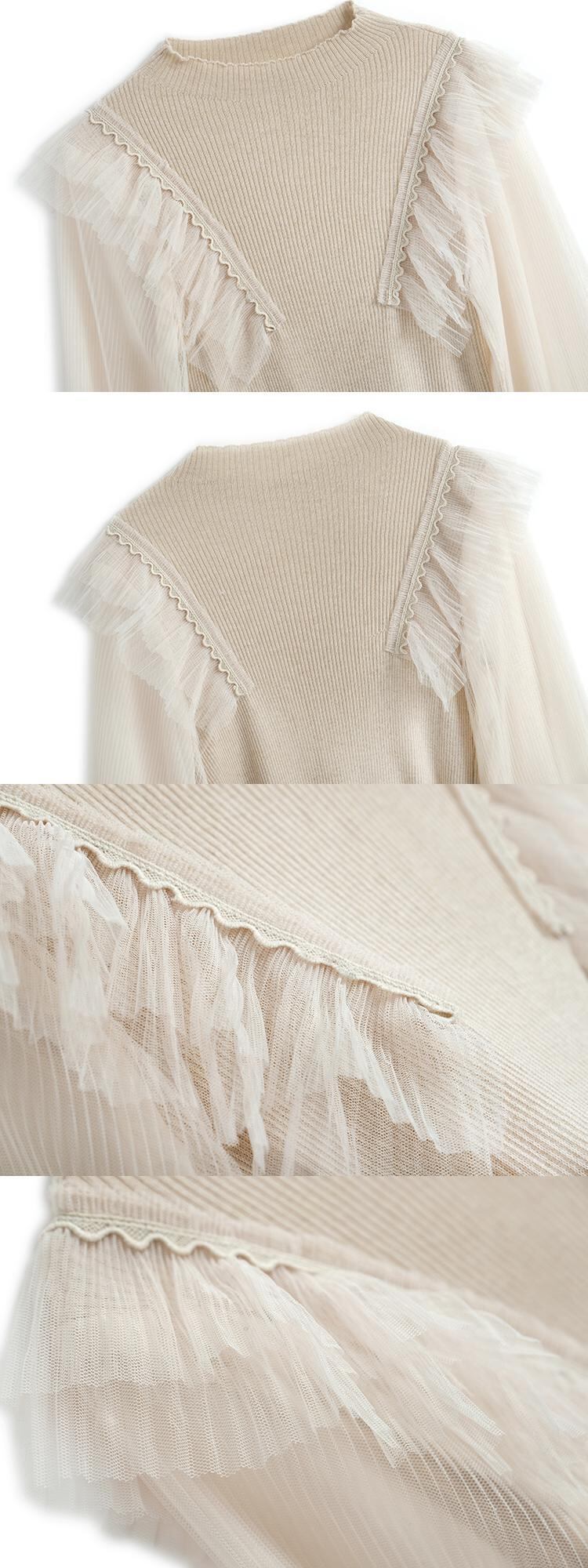 カラープリーツメッシュスリーブセーター レディースウィンター ランタンスリーブ 冬物 MIUCO34163747618