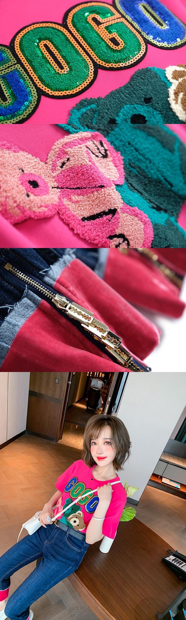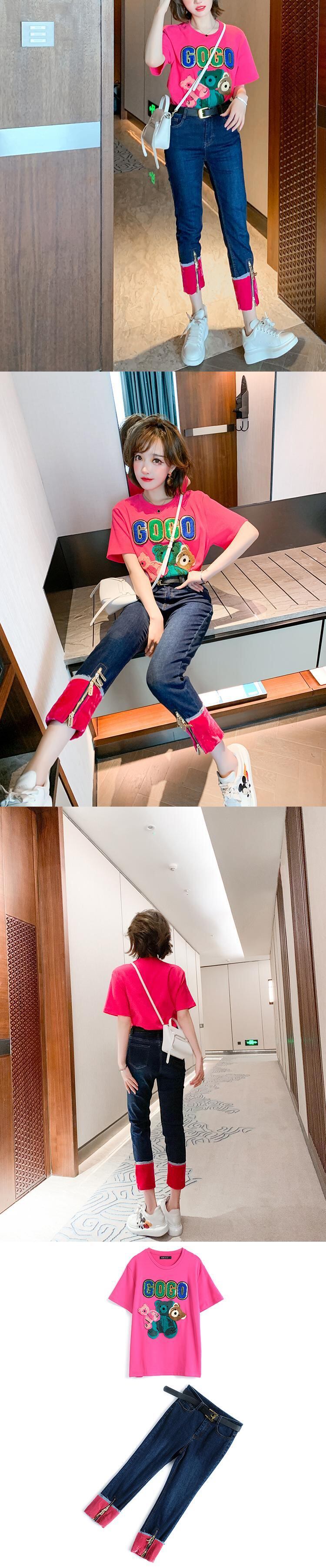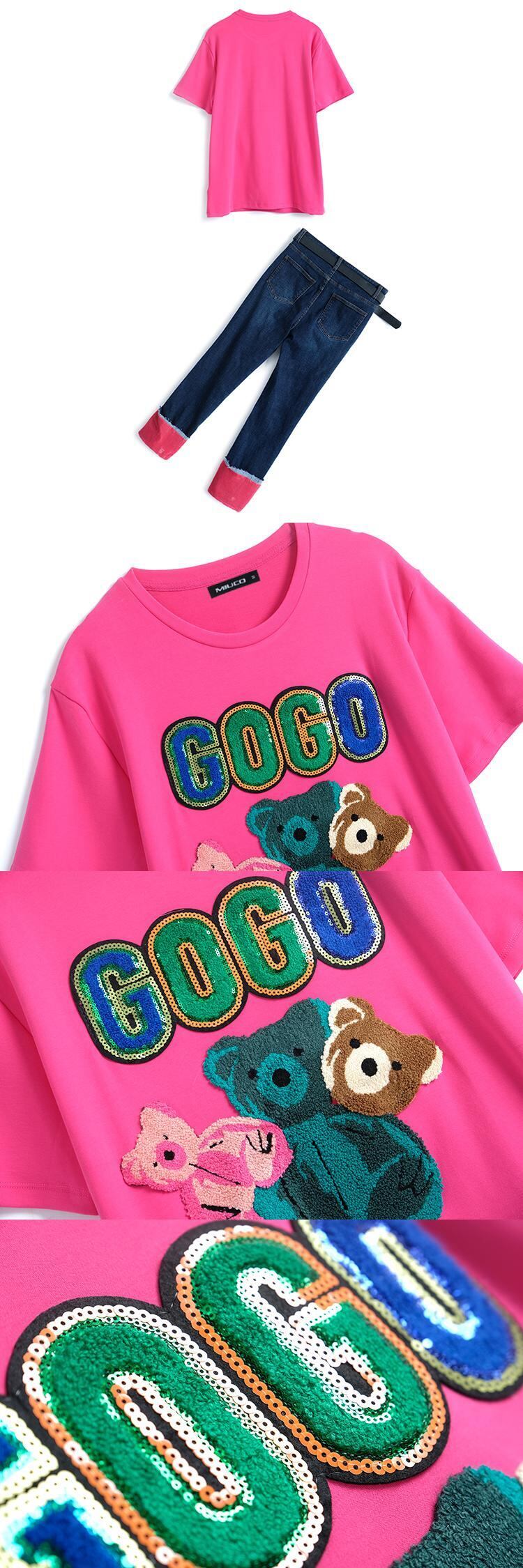 スパンコールTシャツ ジッパージーンズ サマー 夏物 MIUCO46943246824