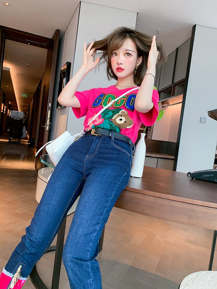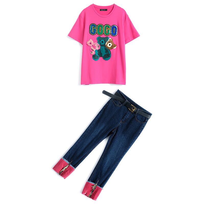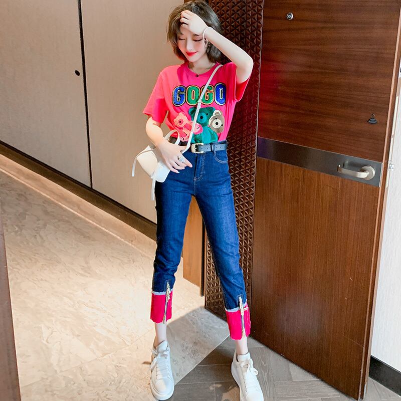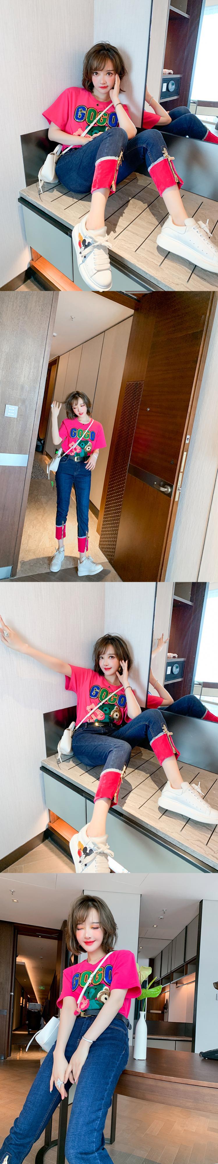 スパンコールTシャツ ジッパージーンズ サマー 夏物 MIUCO46943246824