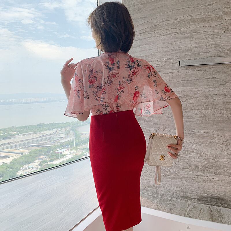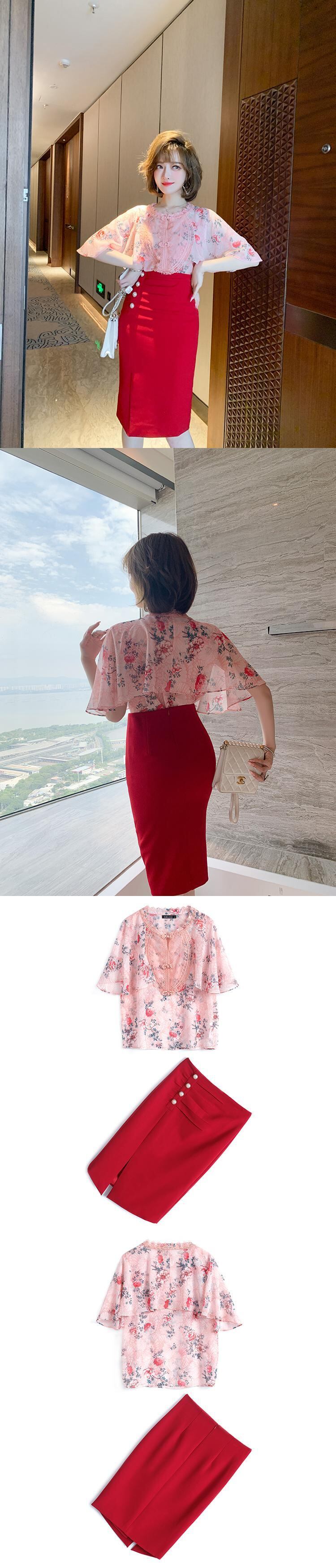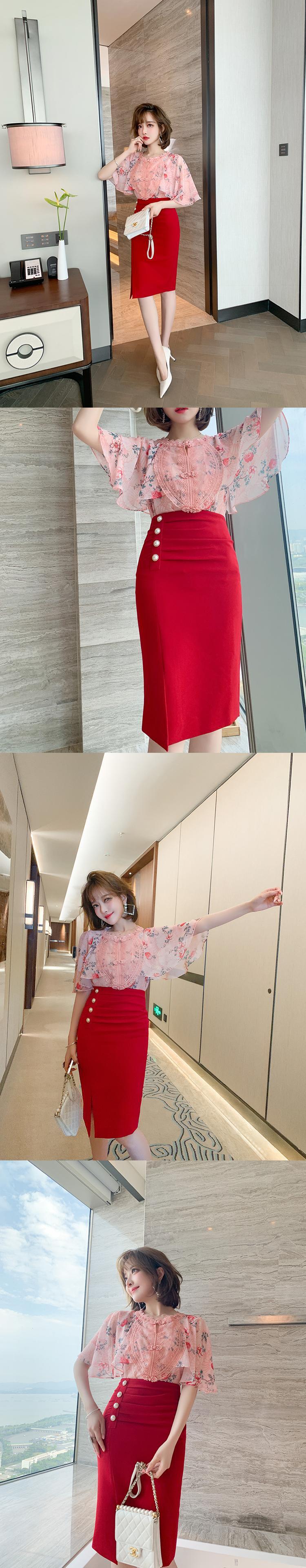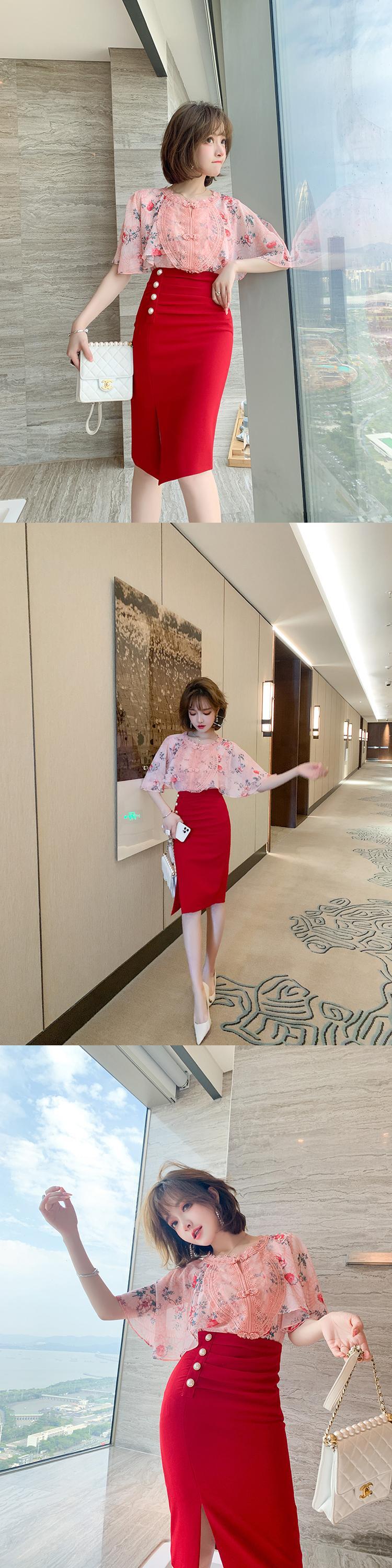 プリントシャツ プリーツスカート シルク ステッチ MIUCO76839878455