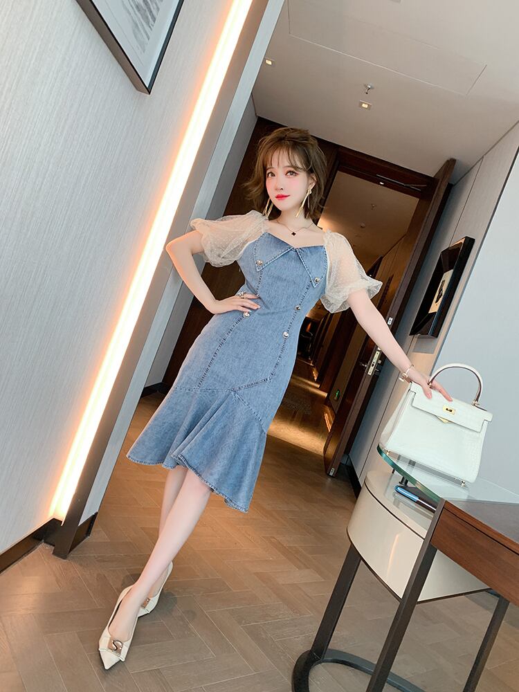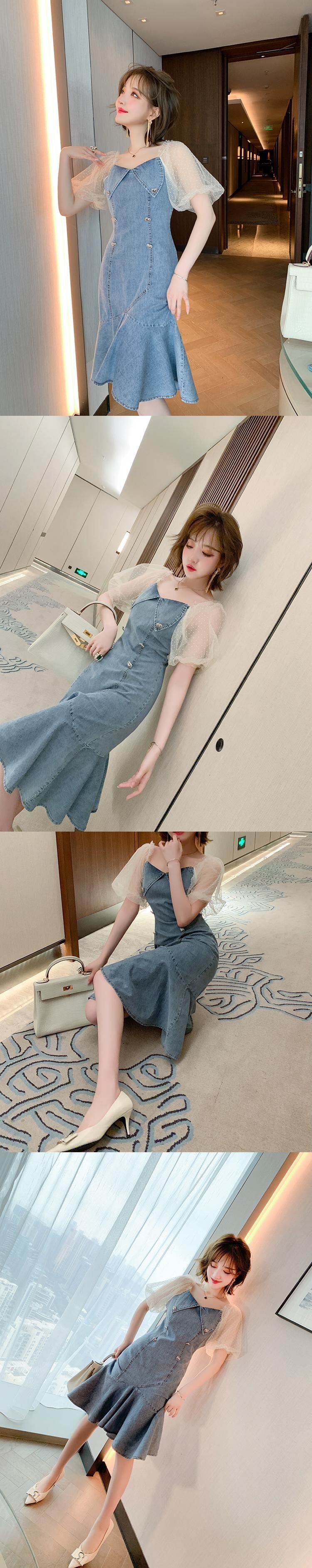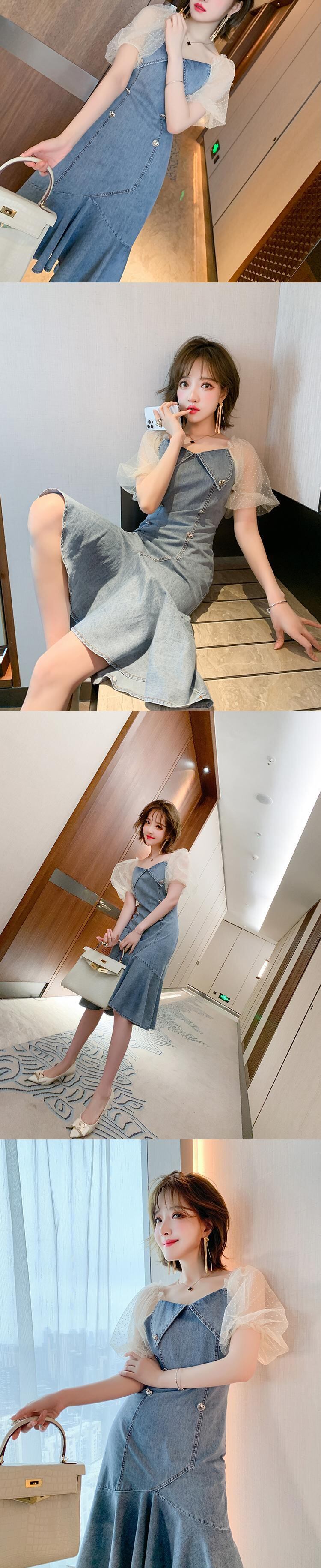 水玉メッシュスリーブダブルブレストドレス サマー 夏物 ステッチ MIUCO45538190754