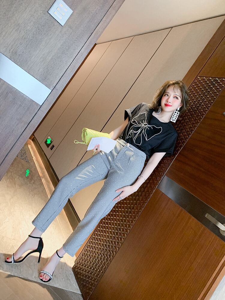 リボンラウンドネックTシャツ パターン薄手パンツ サマースタイル 夏物 Oネック MIUCO63255621070