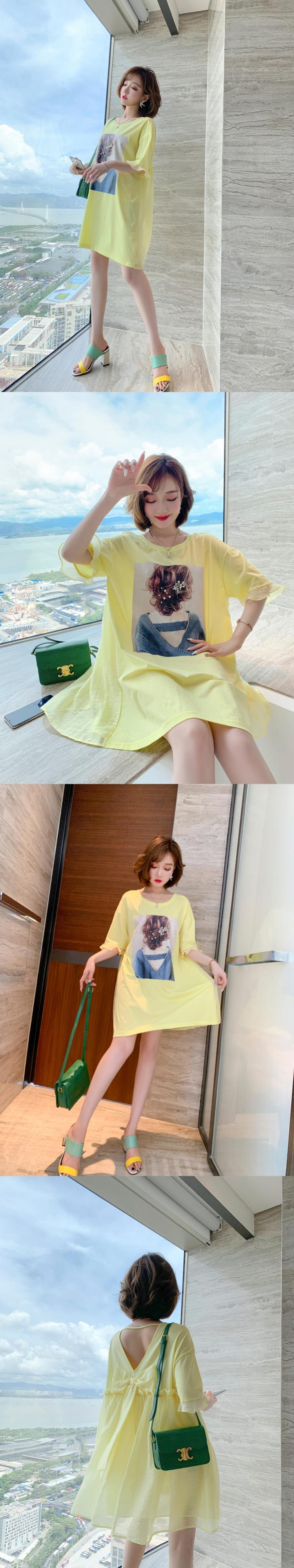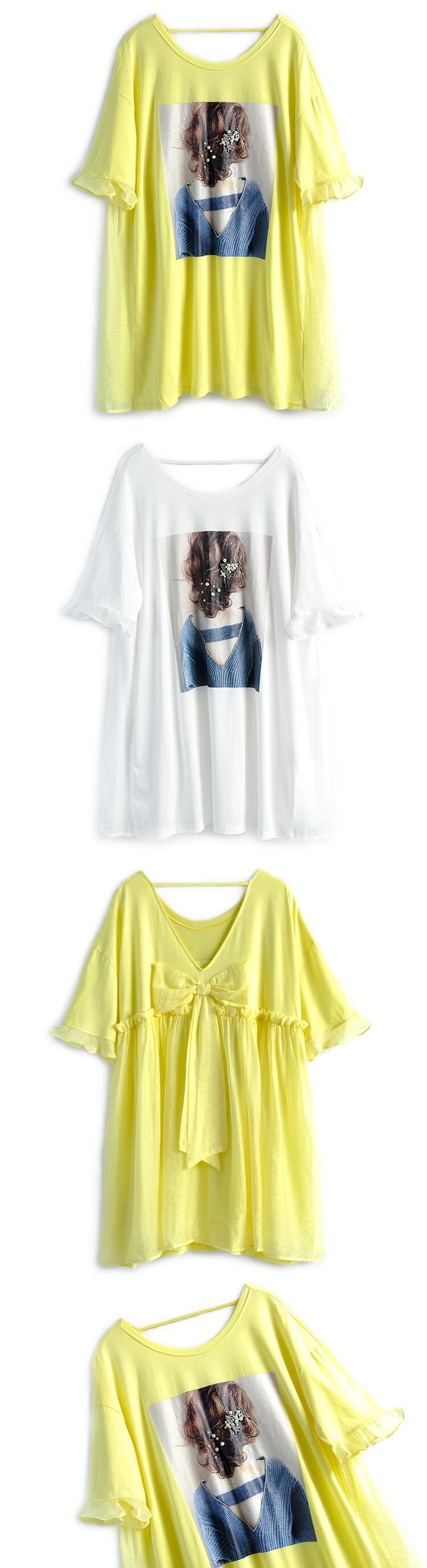 バックVネックリボンレーススリーブルーズTシャツ スカート ドレス サマー 夏物 ステッチ MIUCO44622663993