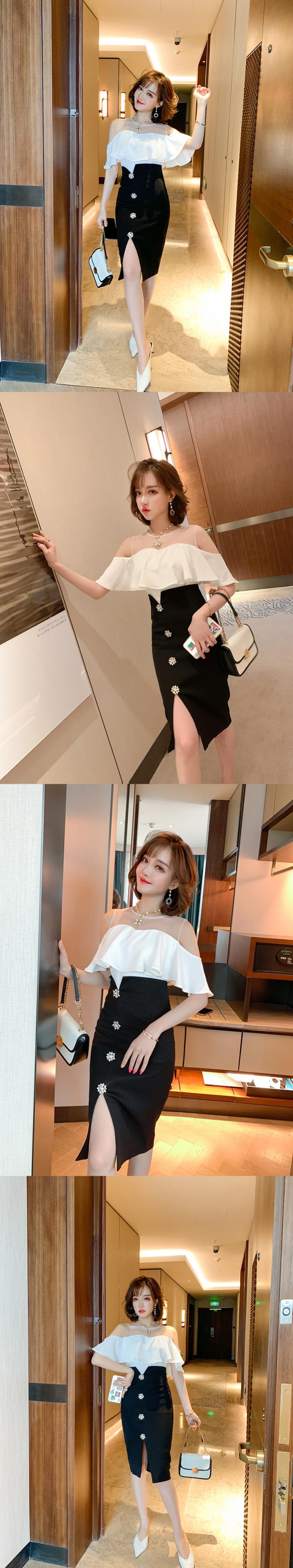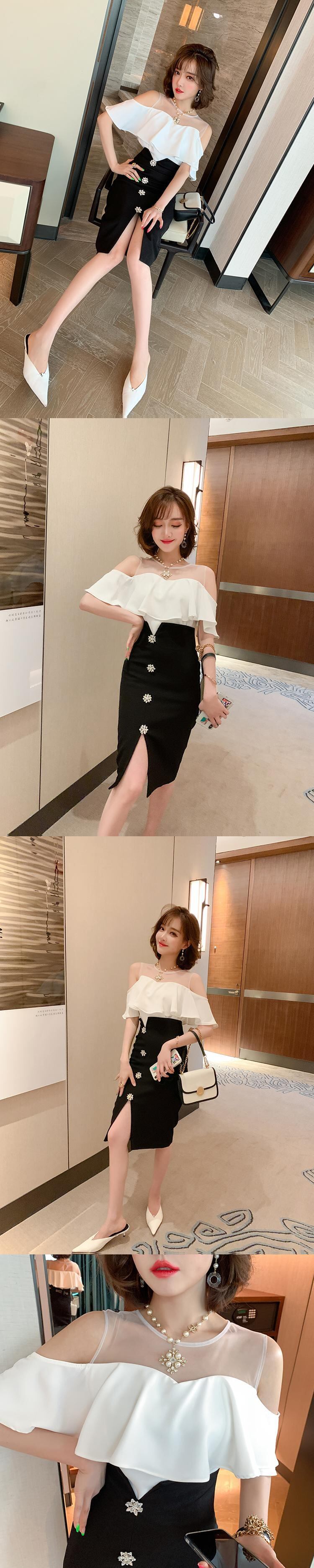 メッシュトップス バックルスカート スプリング 春物 ステッチ MIUCO64915156678