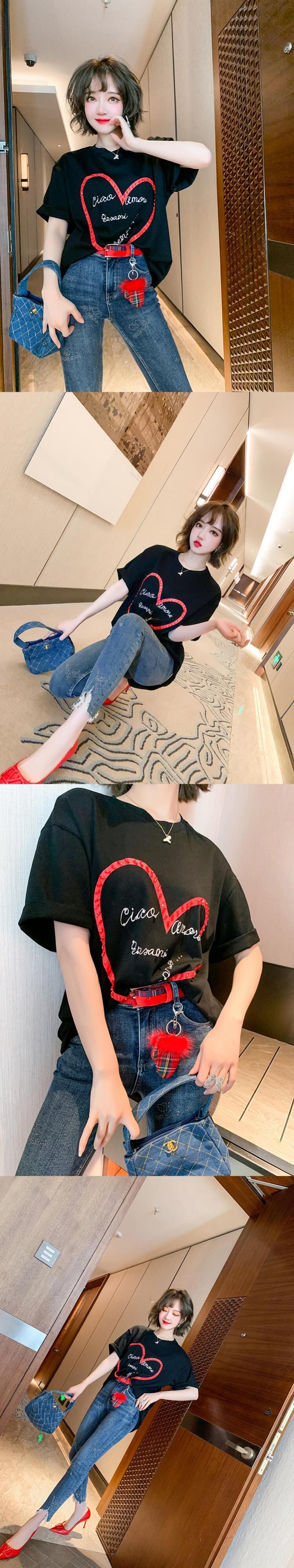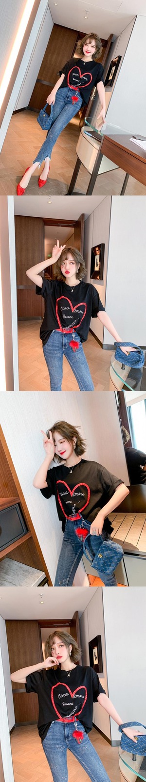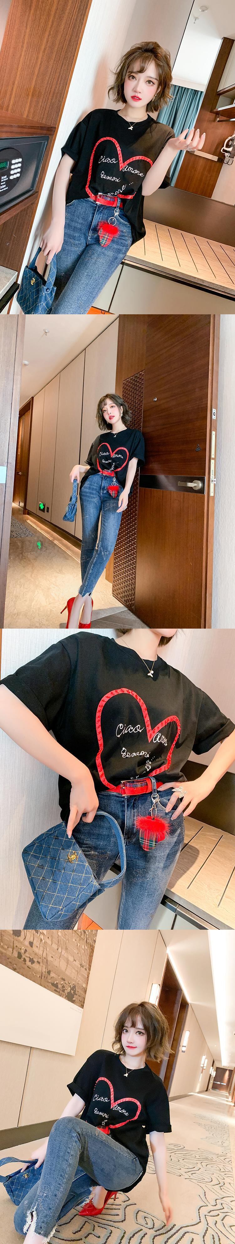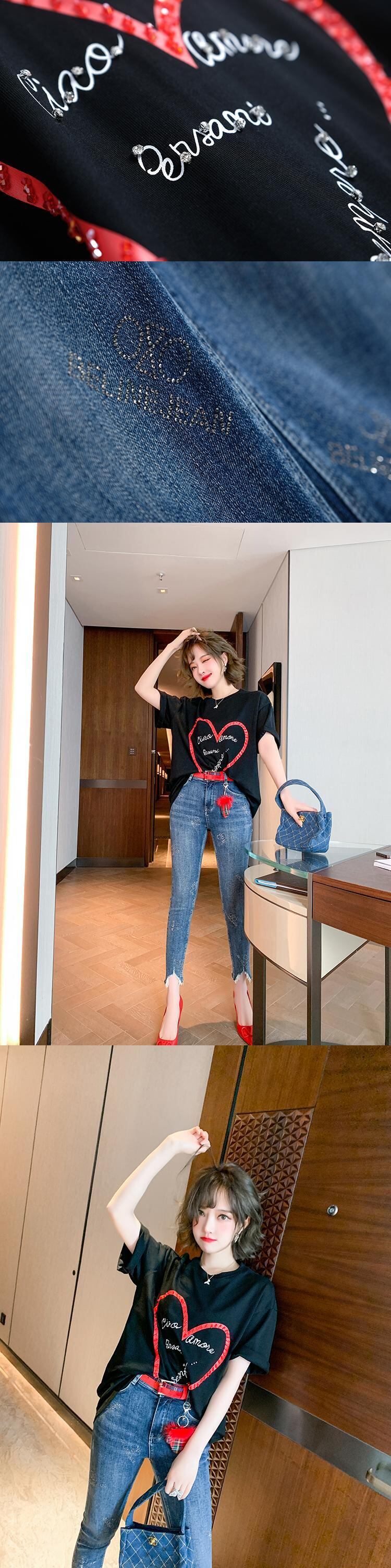 ルーズTシャツ ラインストーンジーンズ スプリング 春物 MIUCO40727676082