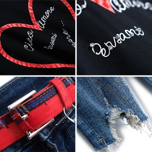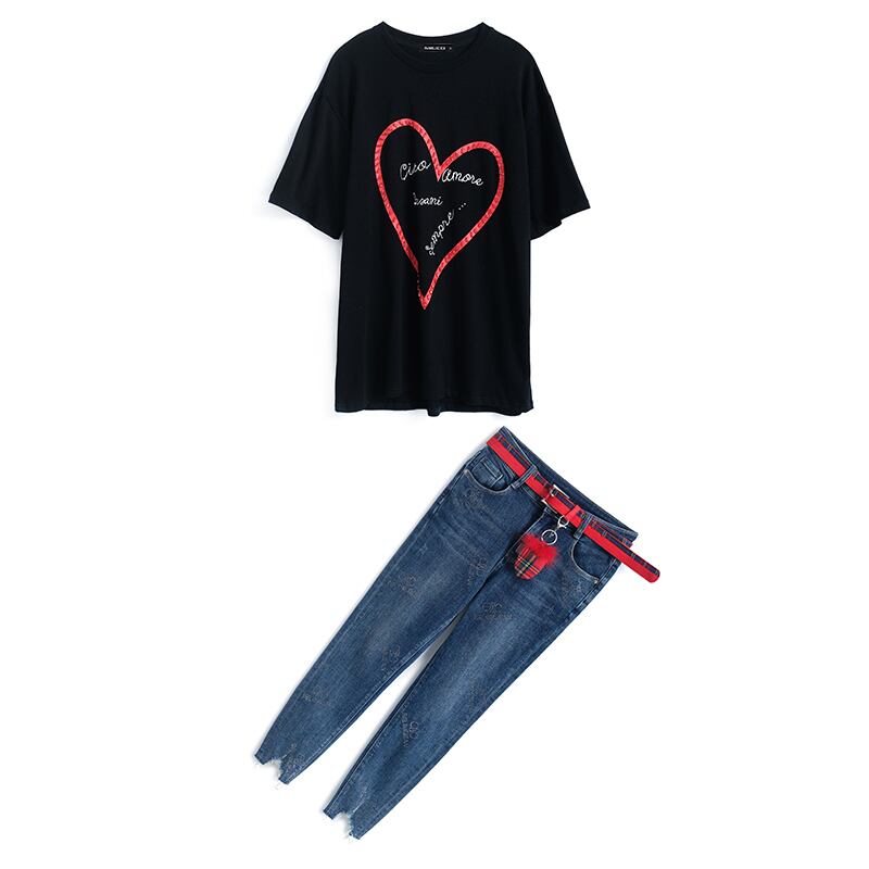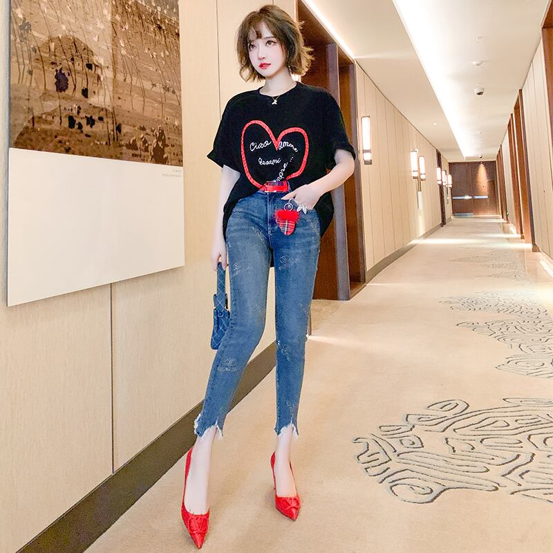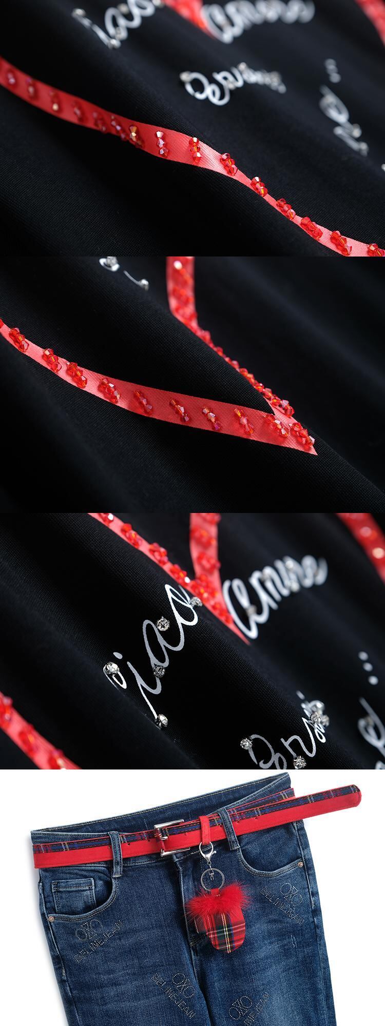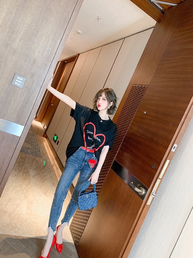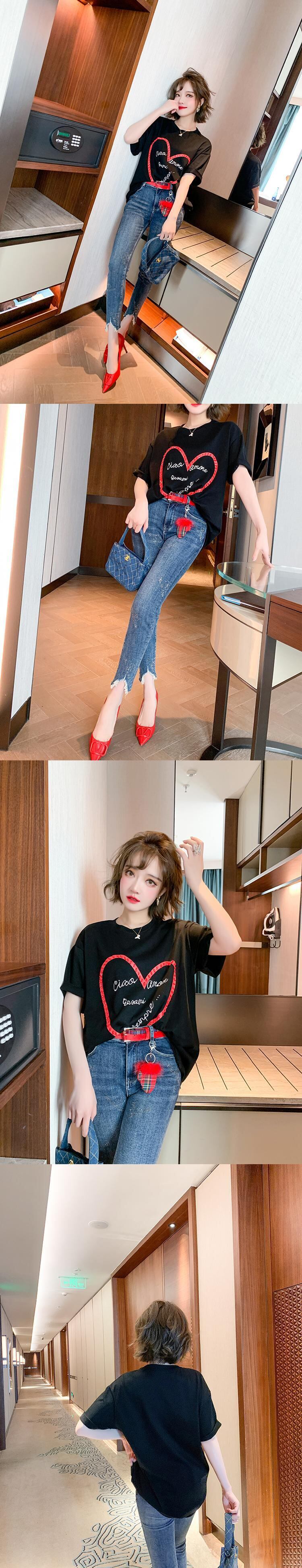 ルーズTシャツ ラインストーンジーンズ スプリング 春物 MIUCO40727676082