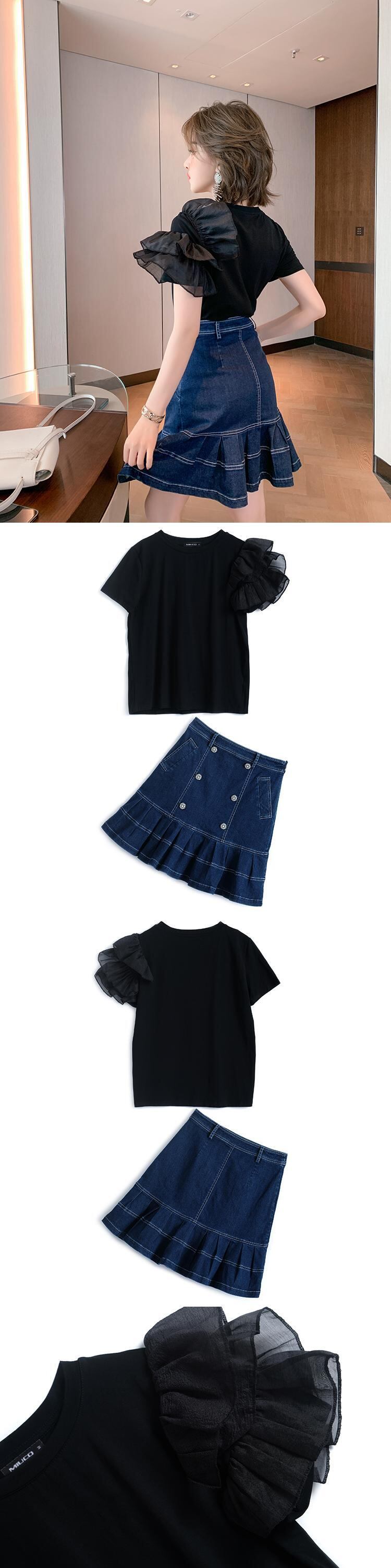 レースTシャツ ダブルブレストスカート ステッチ MIUCO4888713724