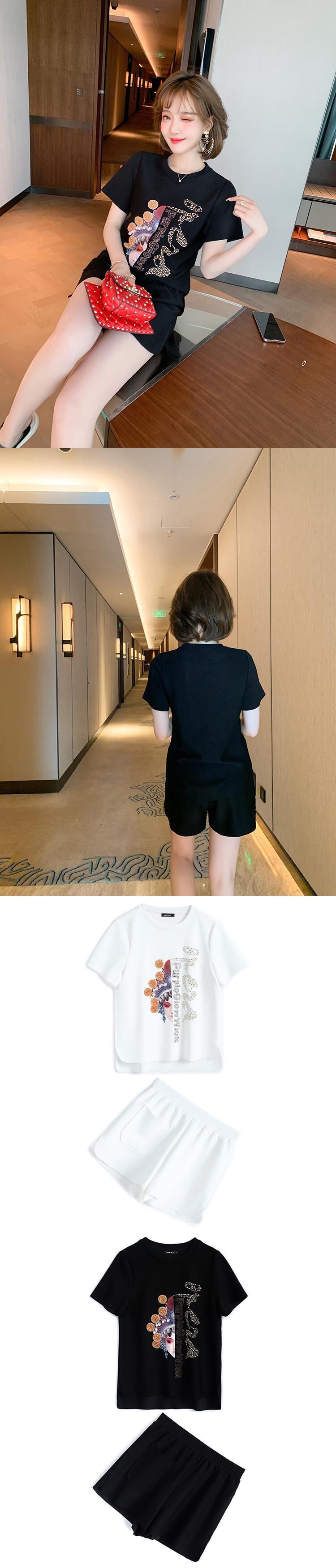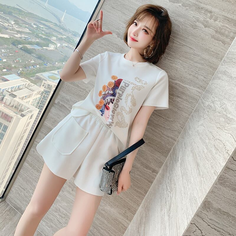 プリントTシャツ ハイウェストウェストポケットショーツ サマー レトロ 夏物 ブルマー MIUCO39168701749