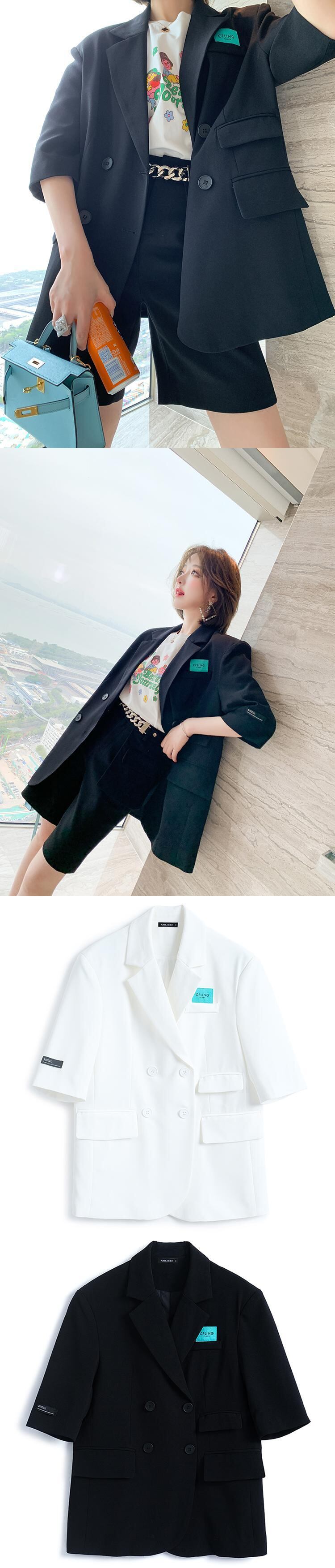 カジュアルスタイルダブルブレストルーズジャケット スプリングサマー 春物 夏物 MIUCO10331758212