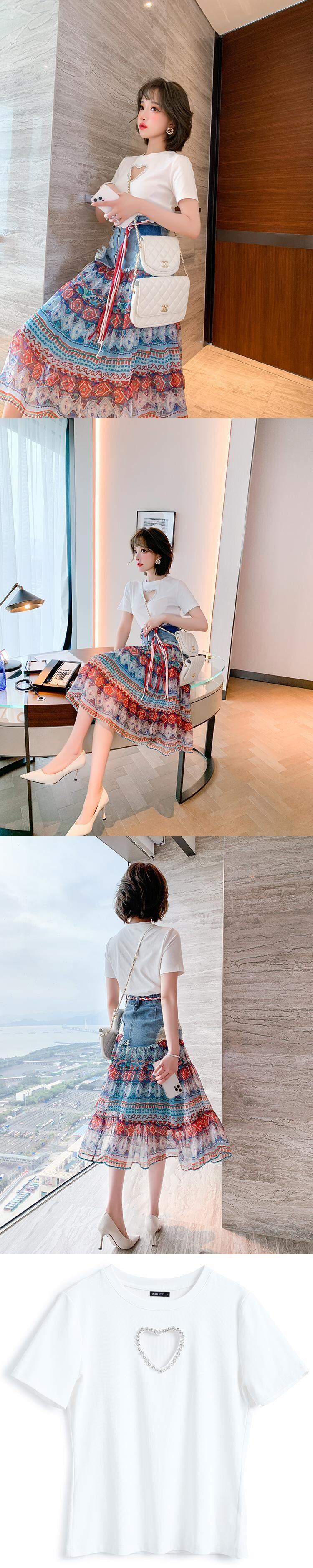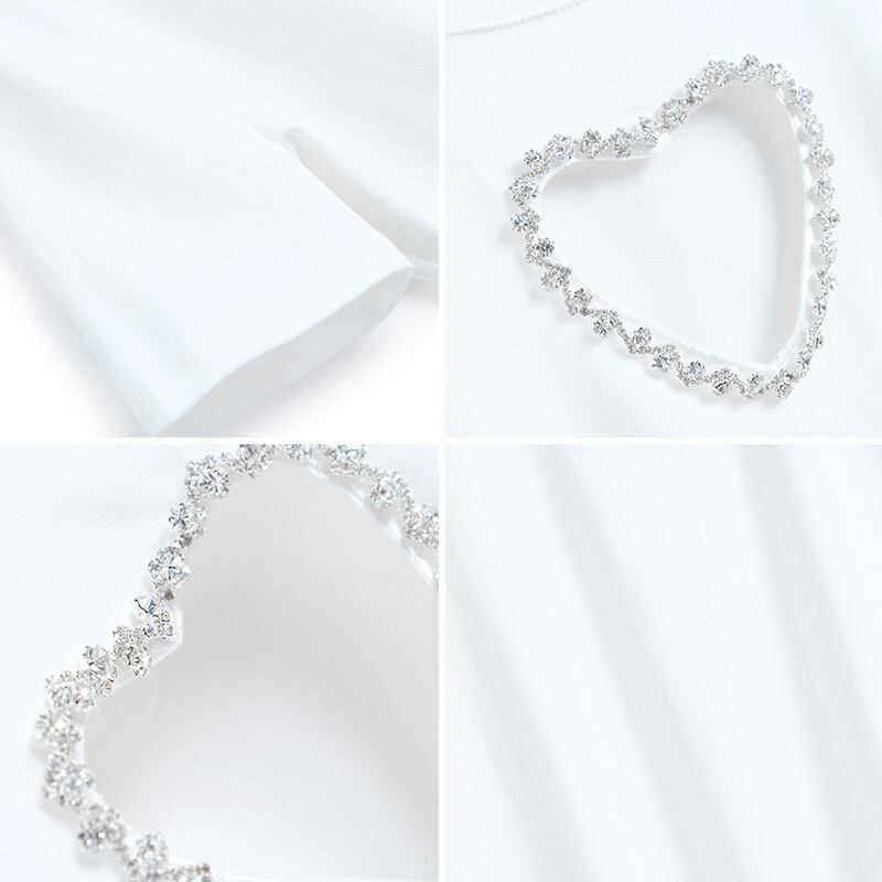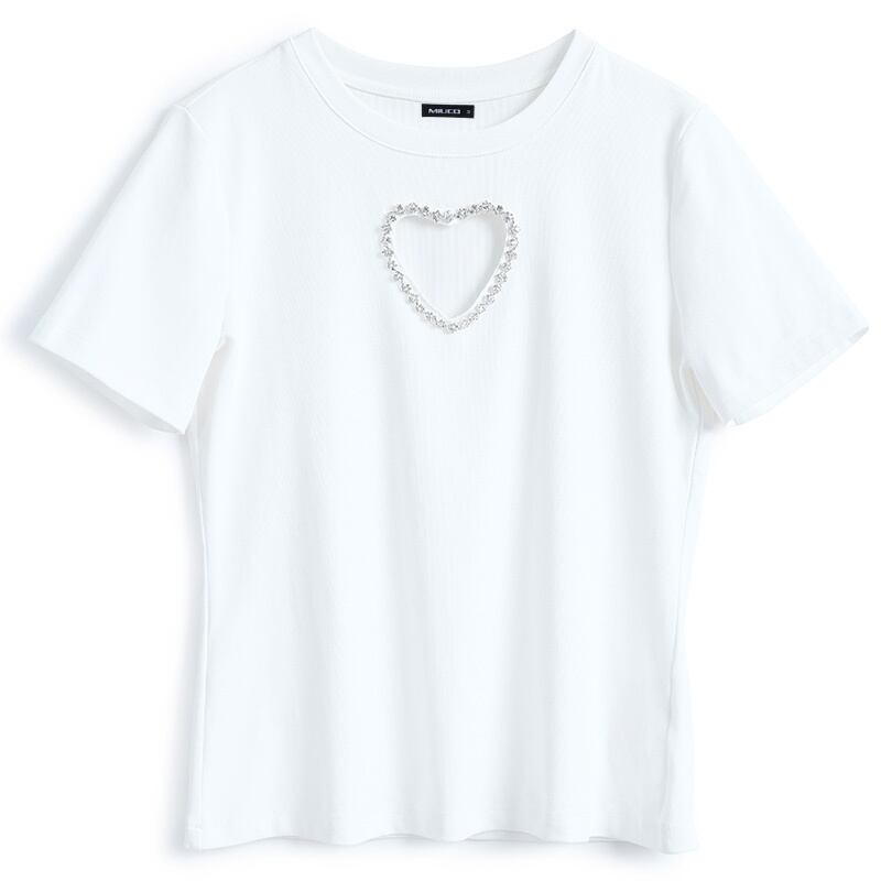 ラウンドネックハートソリッド カラーTシャツ トップス スプリングサマー 春物 夏物 Oネック ソリッドカラー MIUCO78572369438