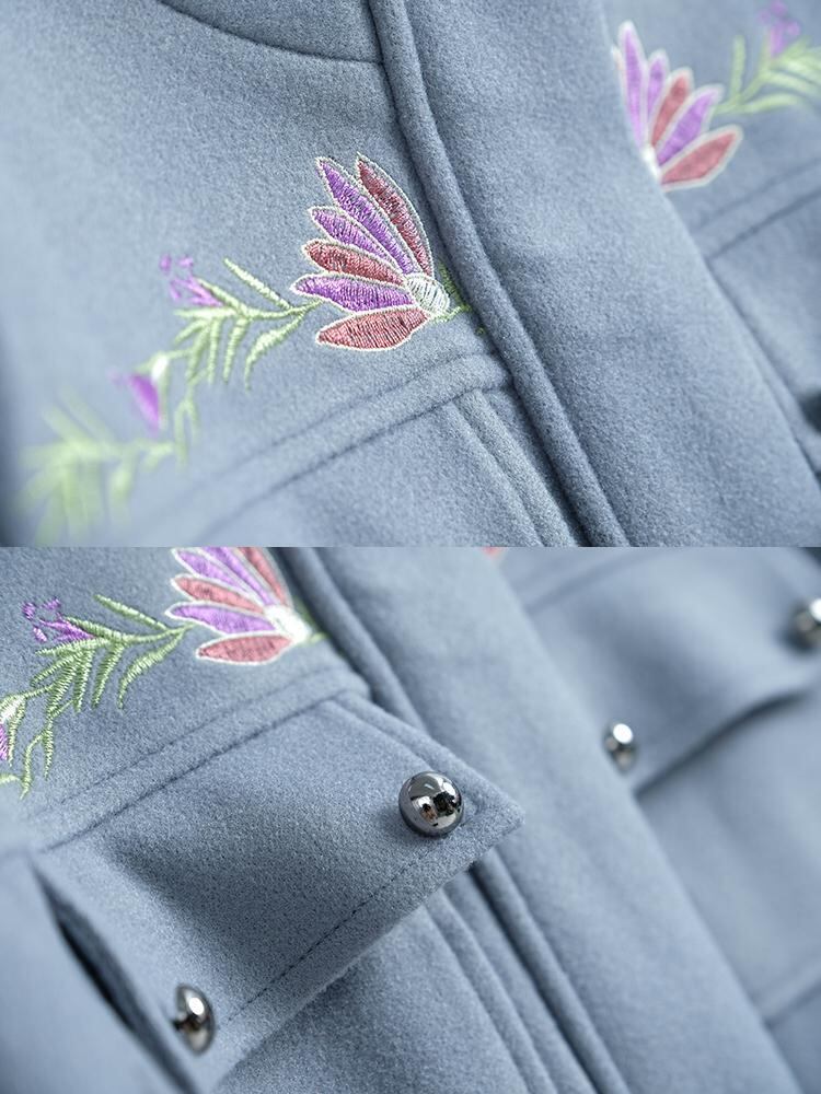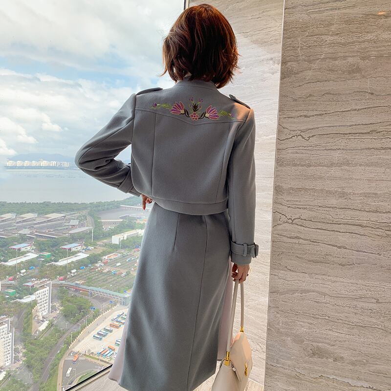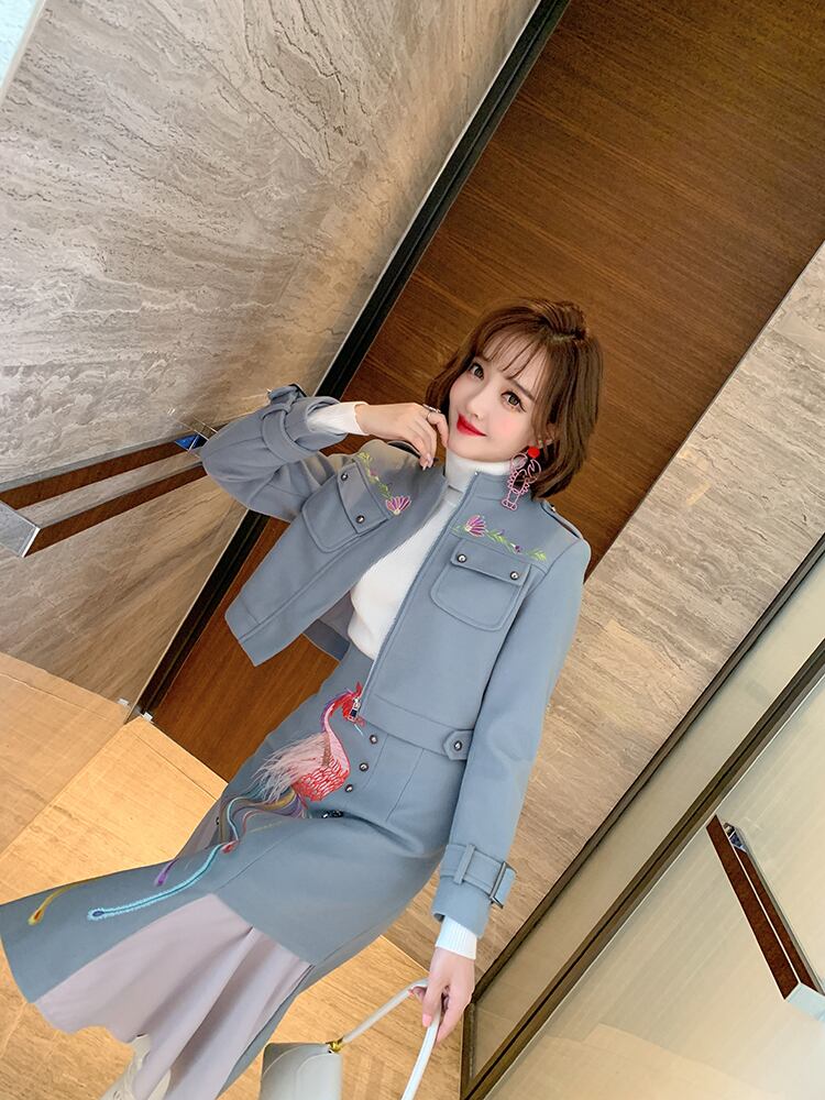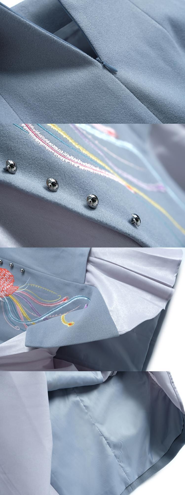スタンドカラーカラーウェストショートトップス Aラインスカート セット レッド 刺繍 オータム 秋物 ウィンター 冬物 MIUCO70027885119