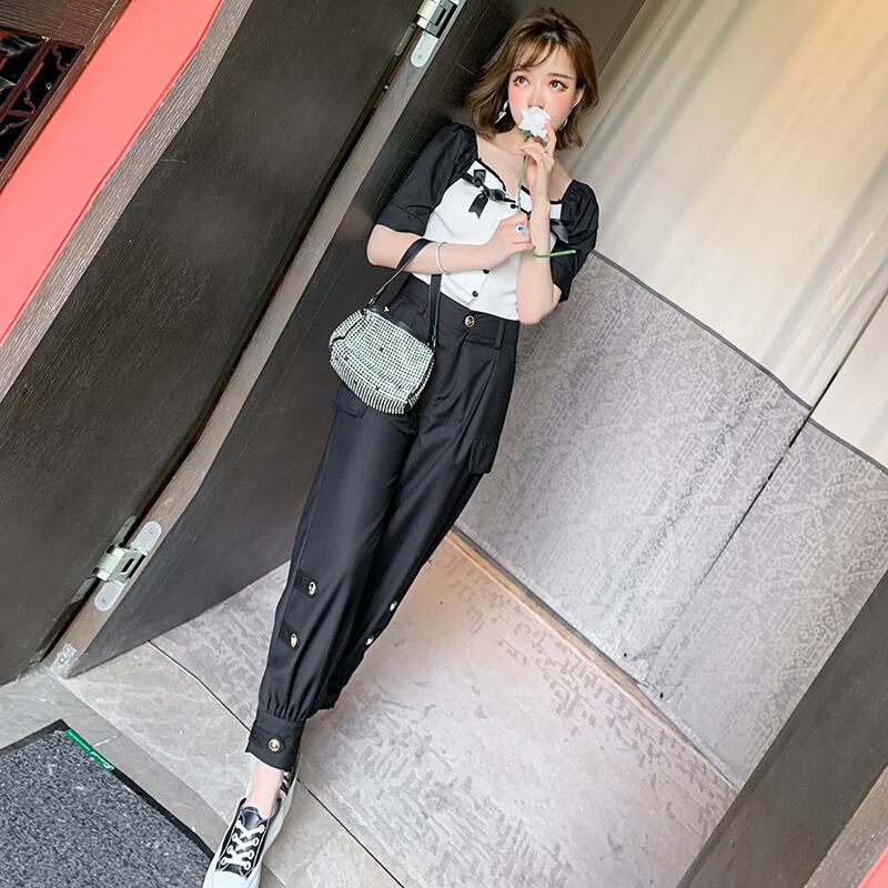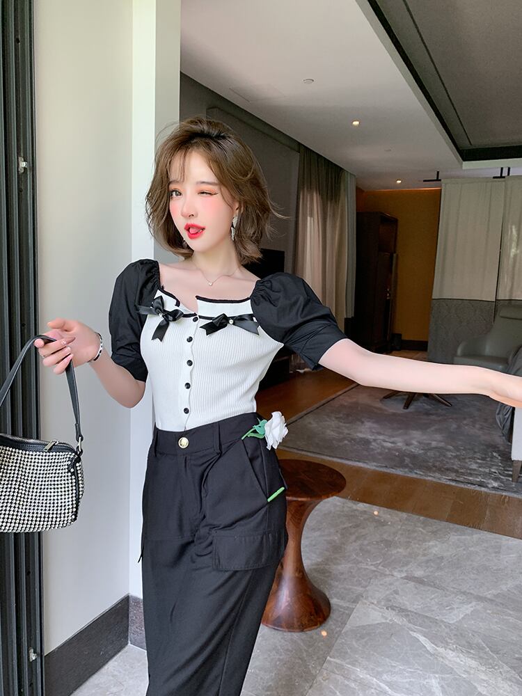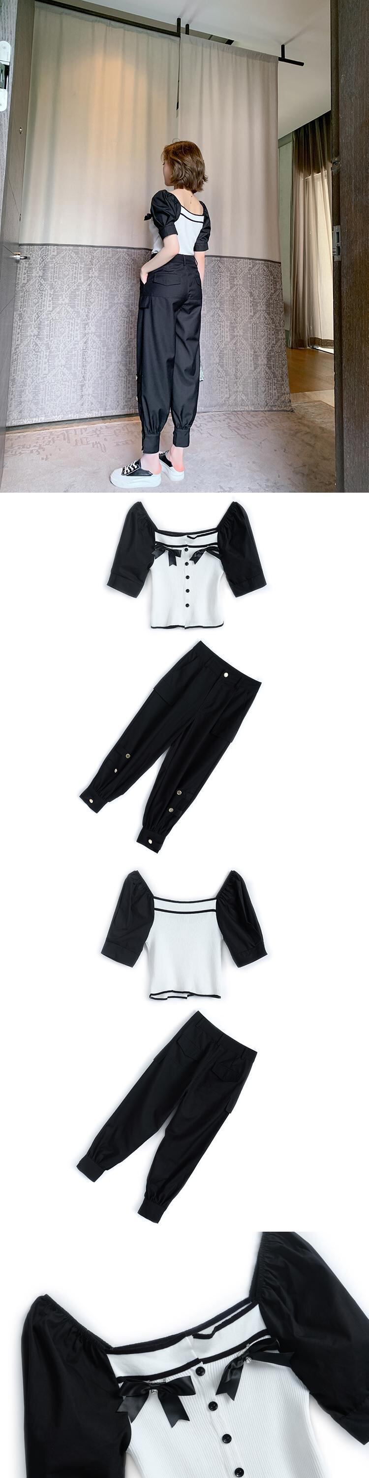 スリーブニットセーター ウェストギャザーオーバーオール サマー リボン レース 夏物 MIUCO25067120286