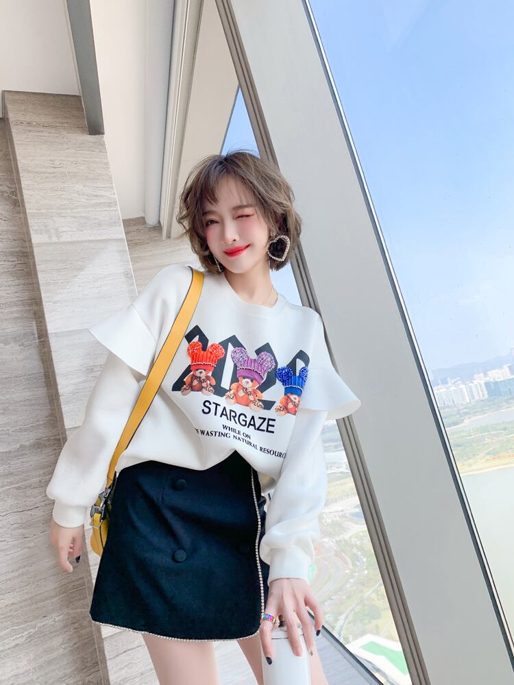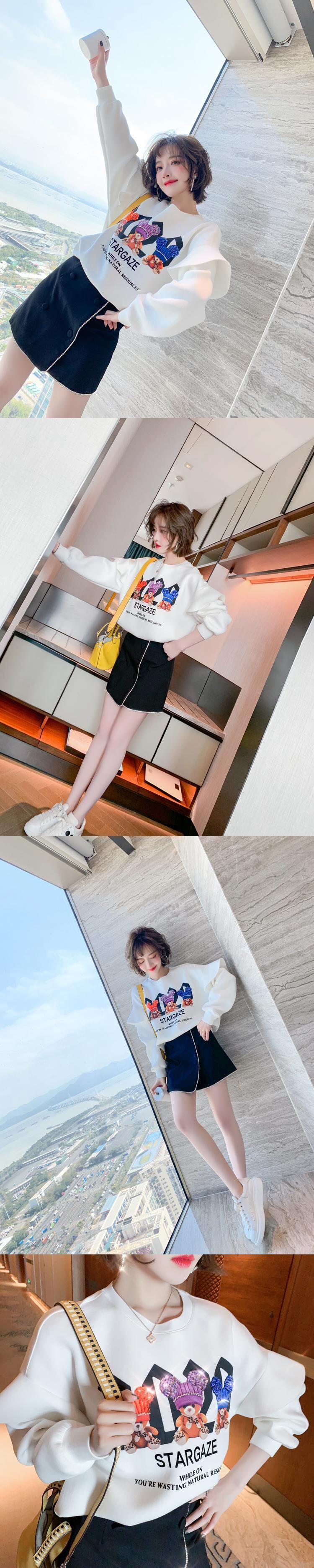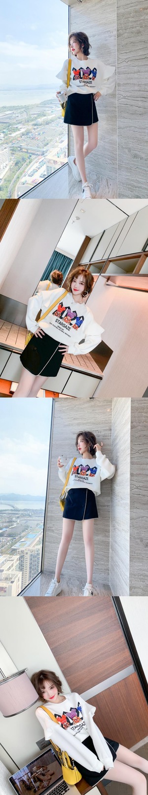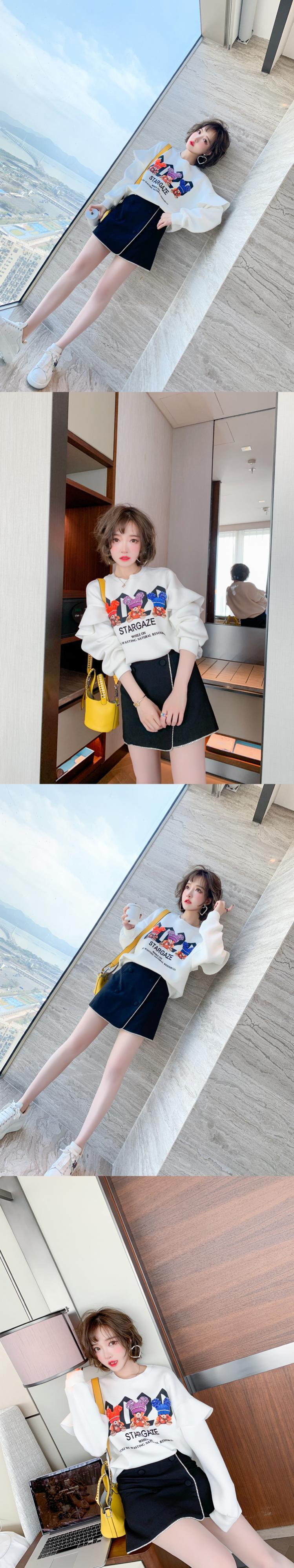 ラウンドネックプリント柄セーター スプリング 春物 Oネック ステッチ MIUCO83659424808