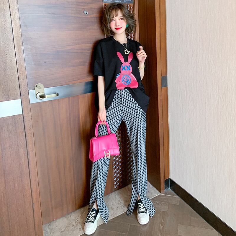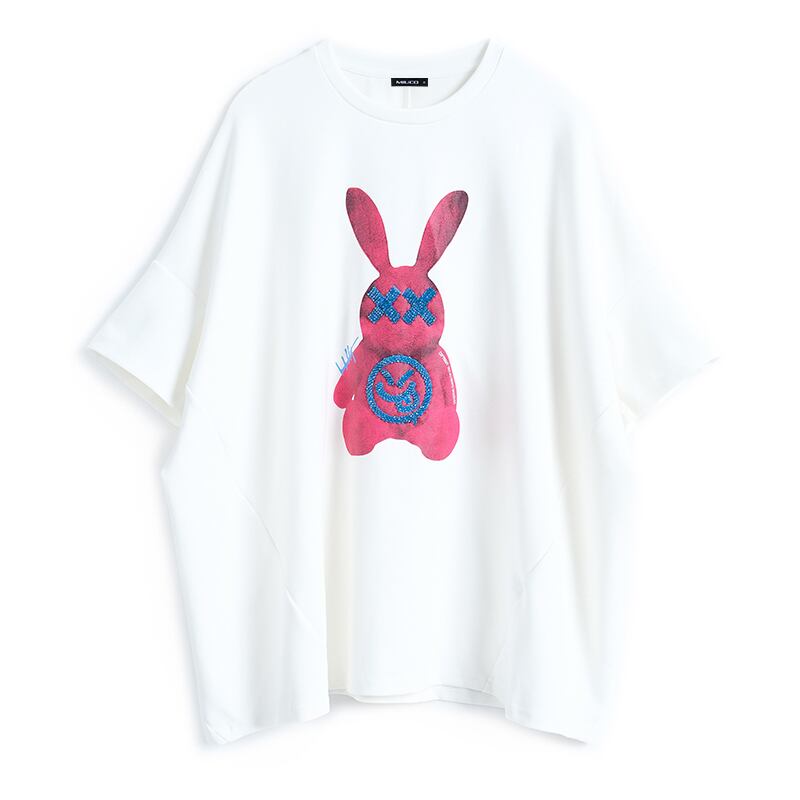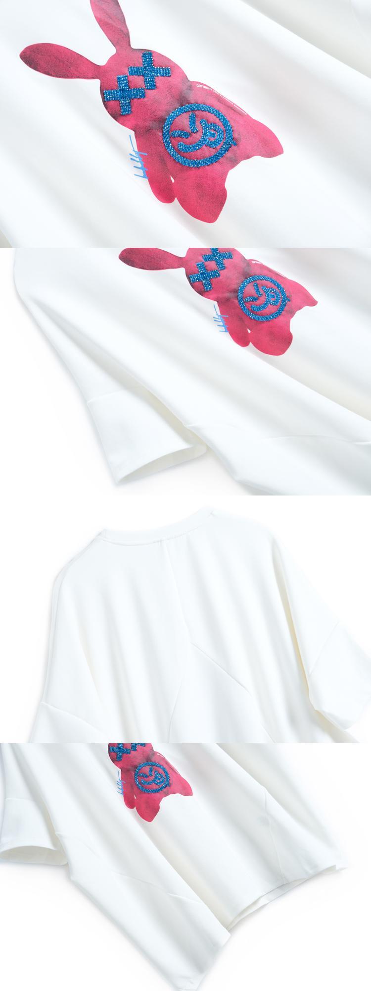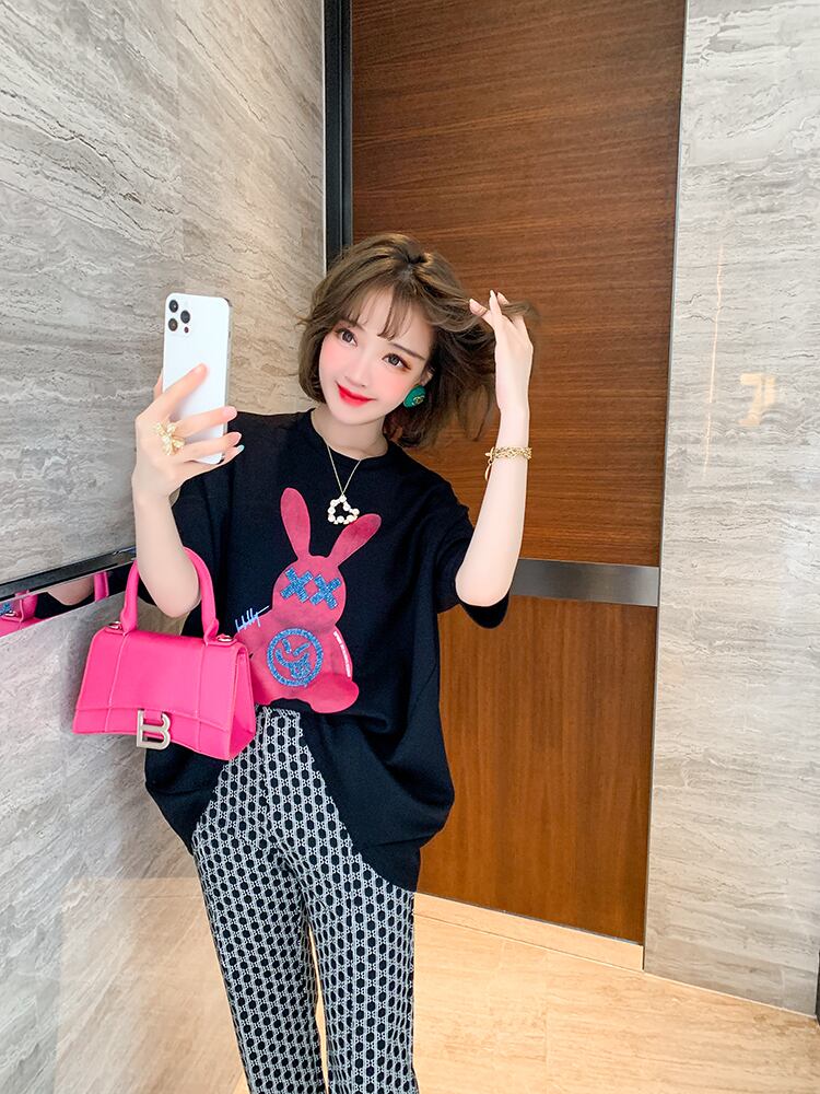 ラウンドネックプリント柄ルーズ薄手Tシャツ スプリングサマー 春物 夏物 Oネック MIUCO27181886044