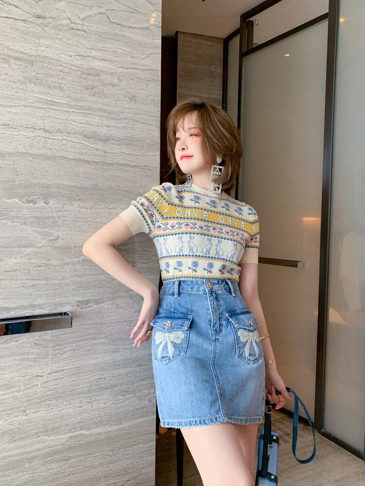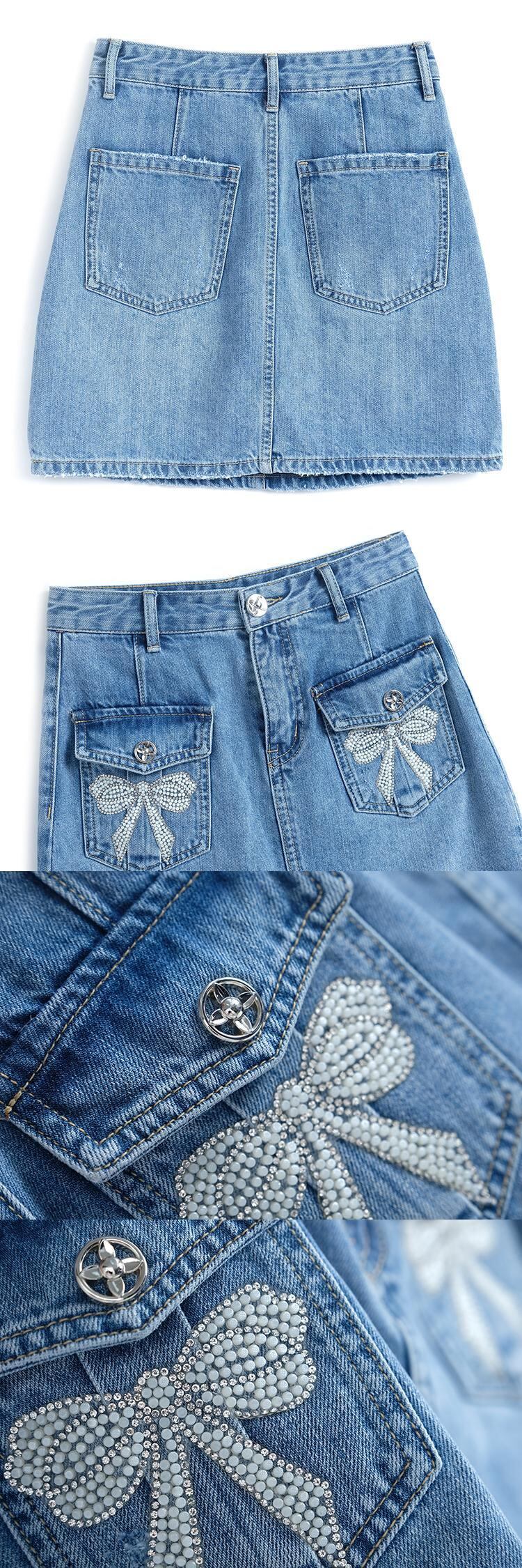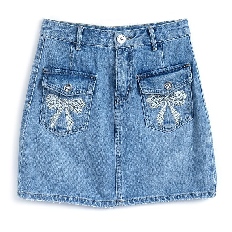 ラインストーンポケットウェスト薄手スカート サマー リボン 夏物 MIUCO1320193497