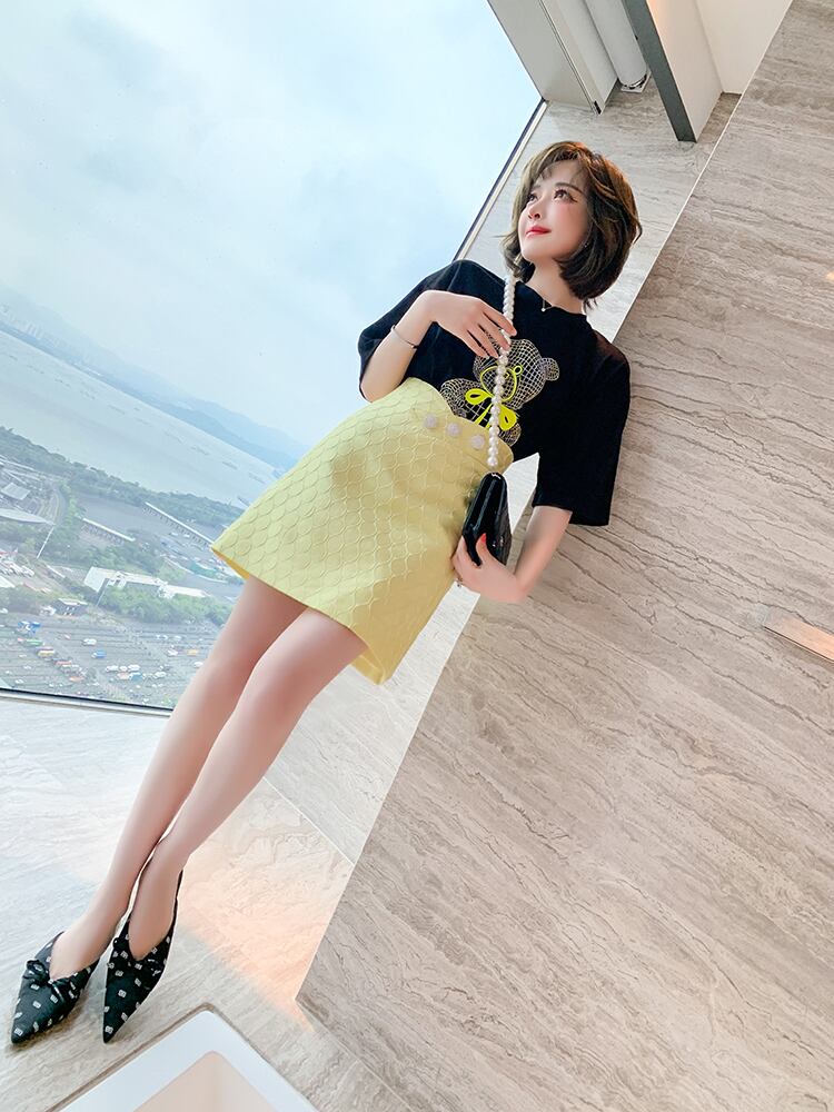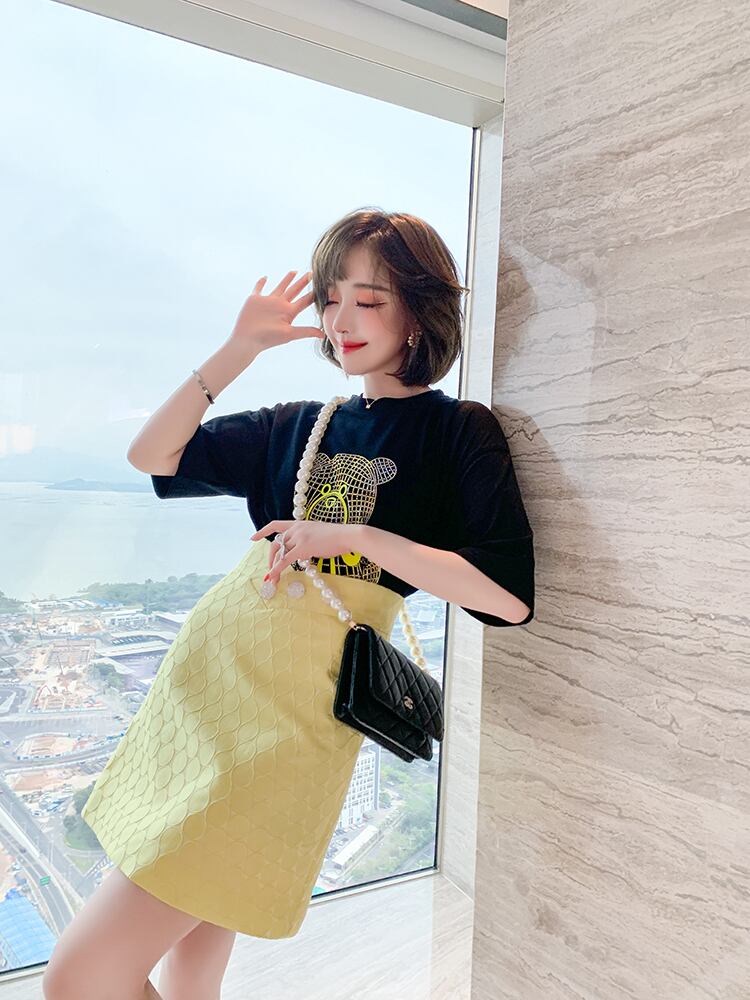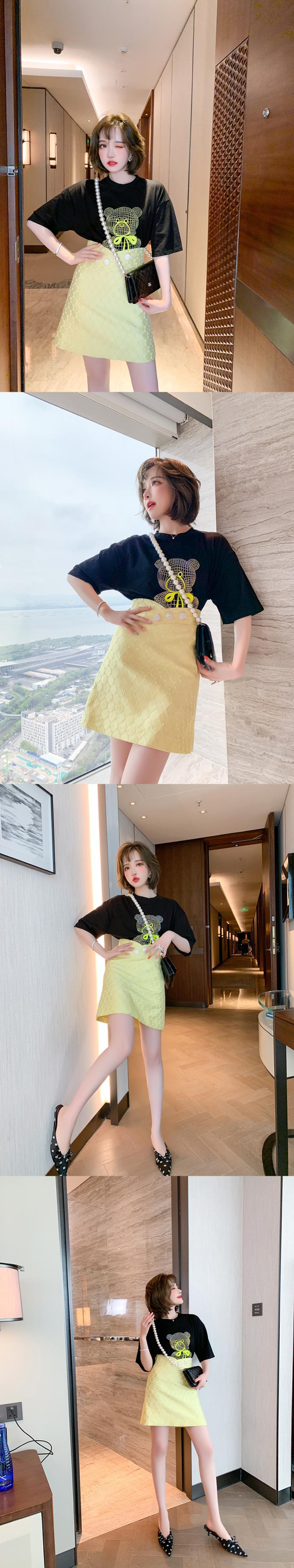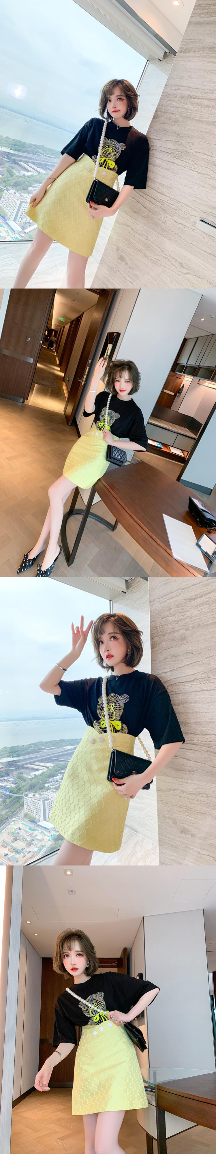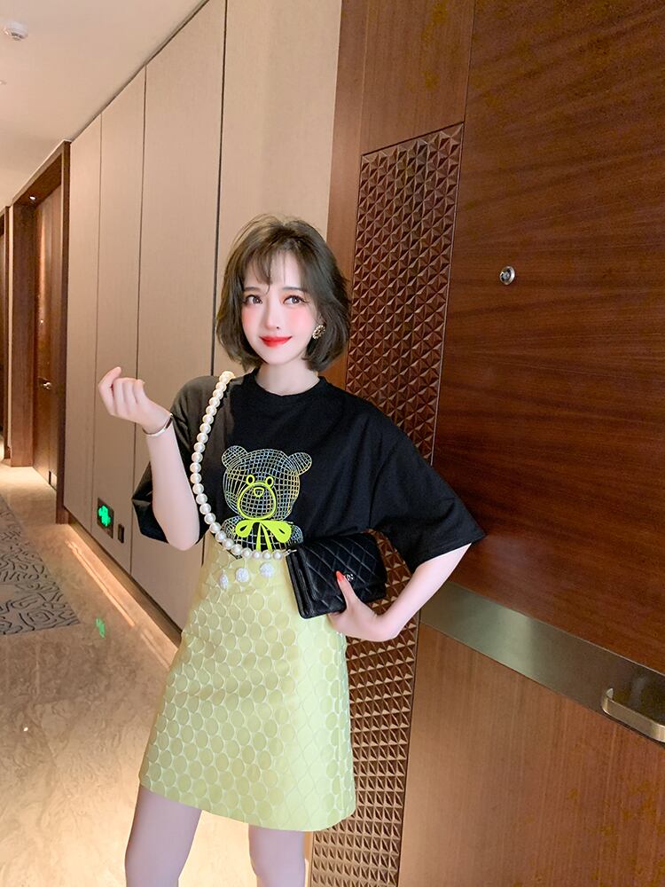 ラインストーンルーズTシャツ ウェスト薄手Aラインスカート セット スプリング 春物 サマー 夏物 MIUCO8158339898
