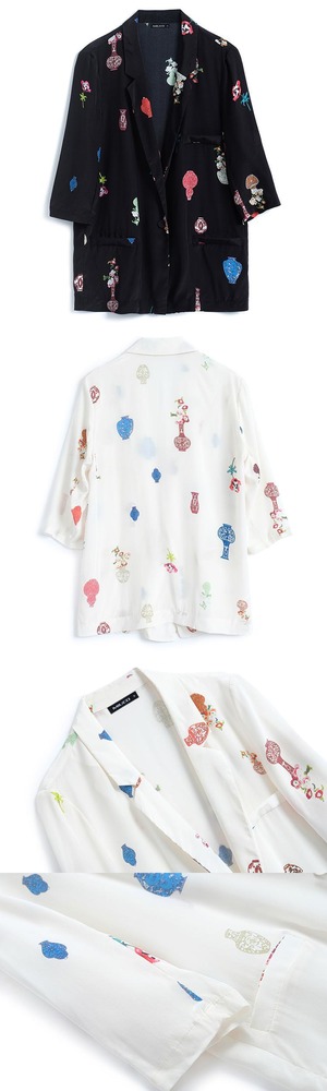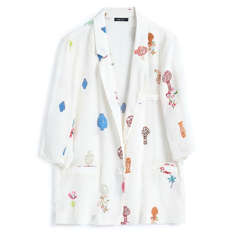 ヴィンテージプリントボタンルーズ薄手ジャケット スプリング 春物 サマー 夏物 ビンテージ MIUCO55108504659