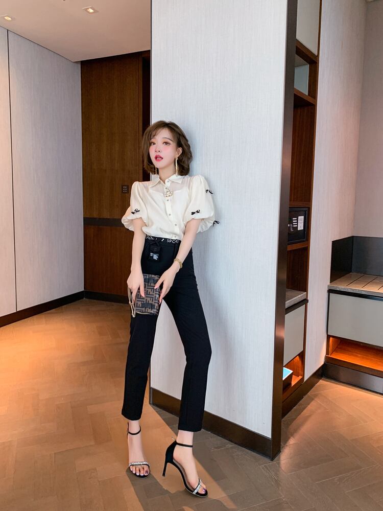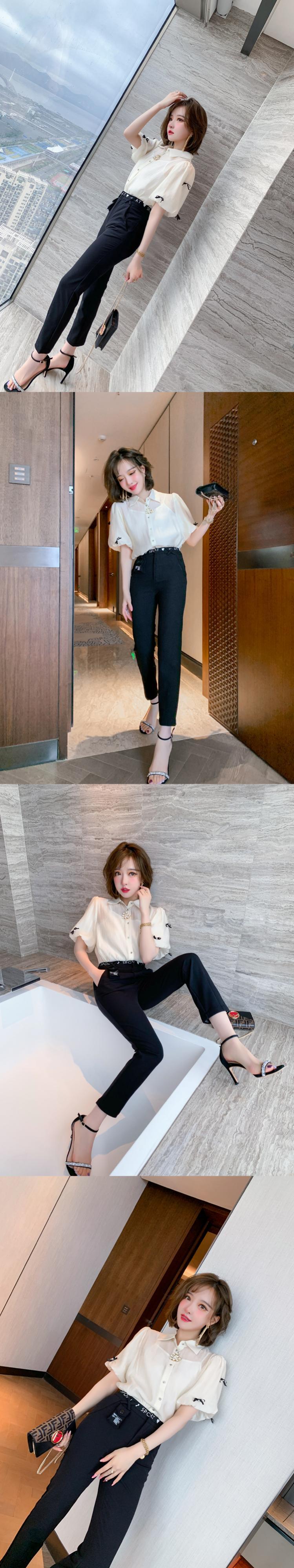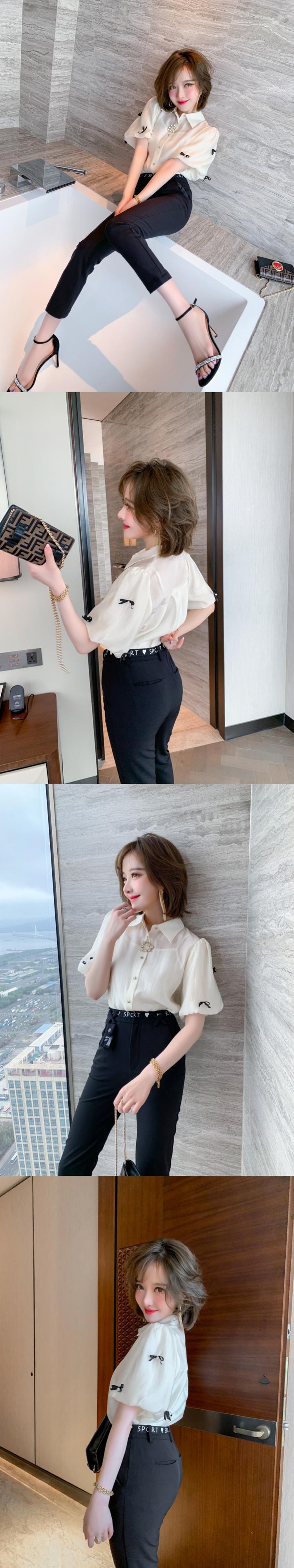 スリーブリボンシャツ カラーウェストパンツ サマー ランタンスリーブ 夏物 MIUCO23736553187
