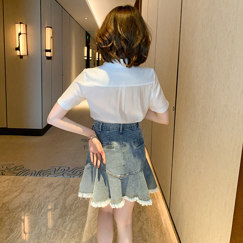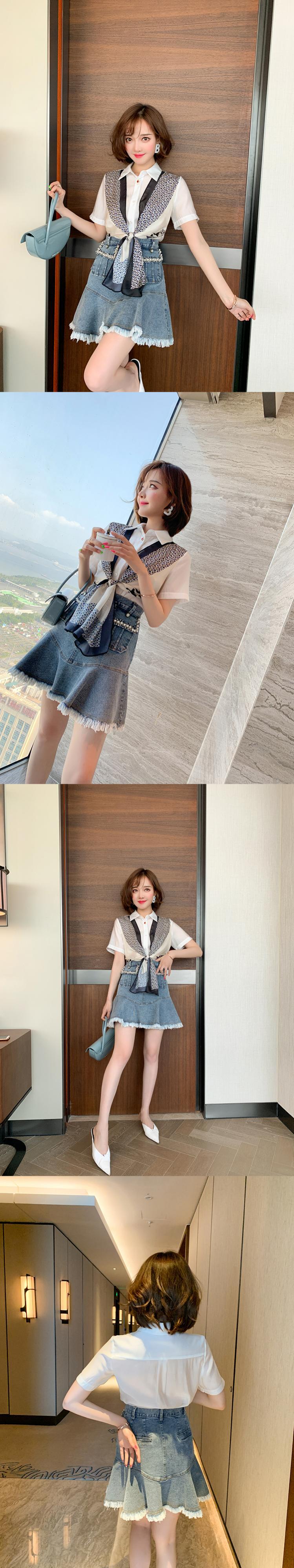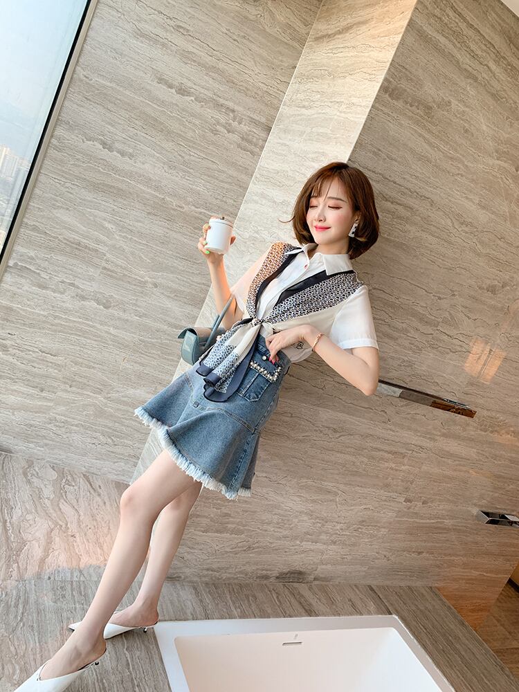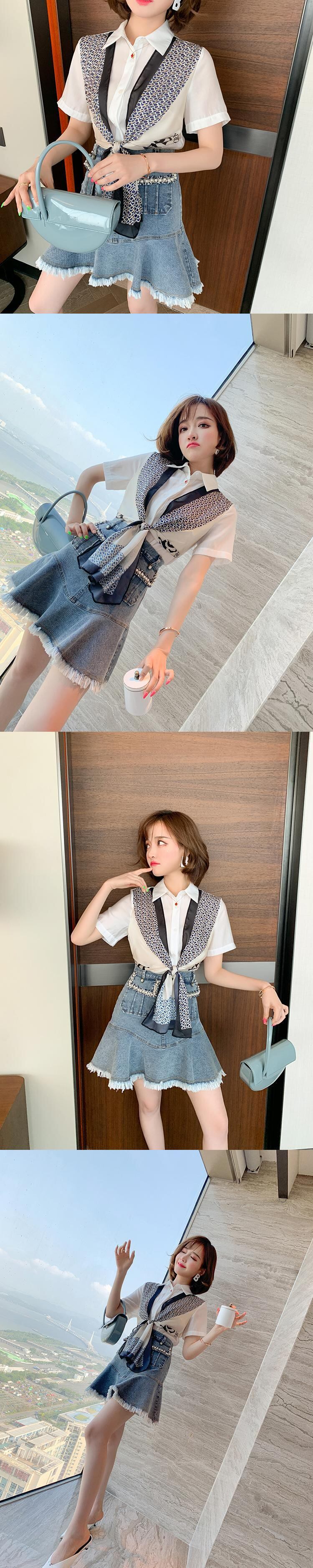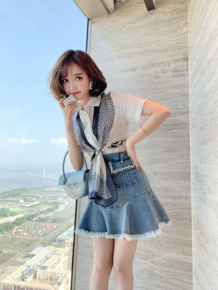 プリントスカーフ クロスシャツ ラッフルスカート サマー 夏物 シルク ステッチ MIUCO40616464500