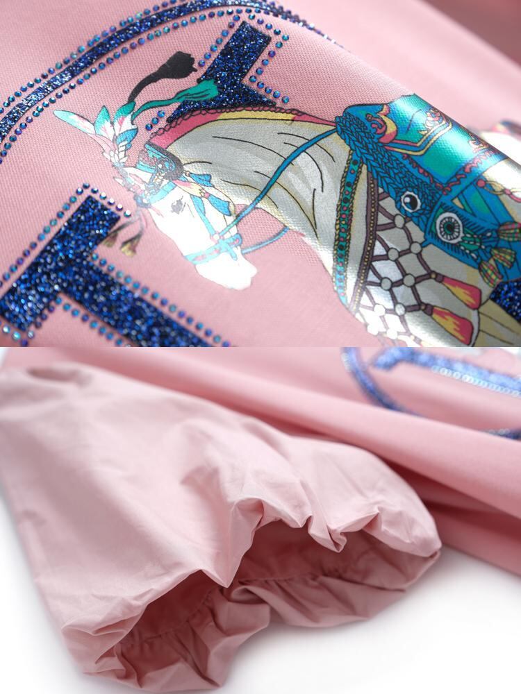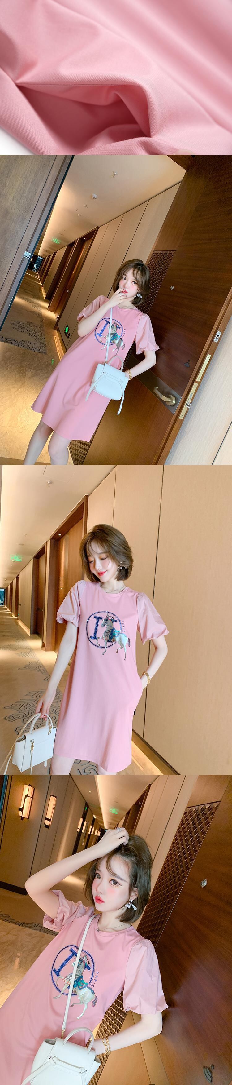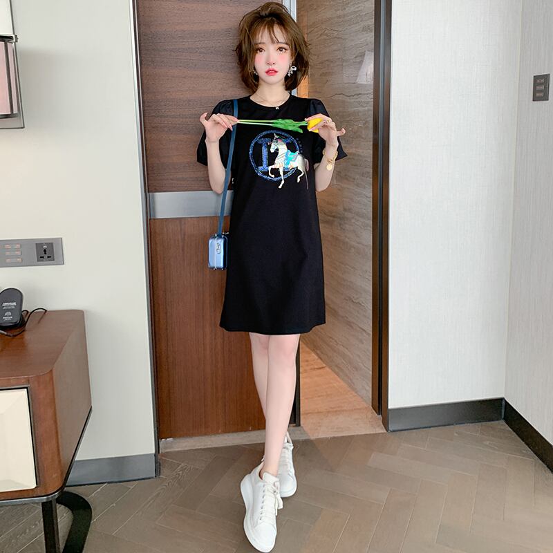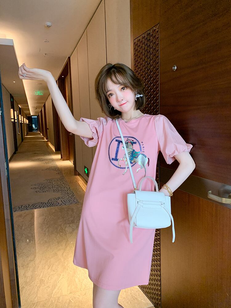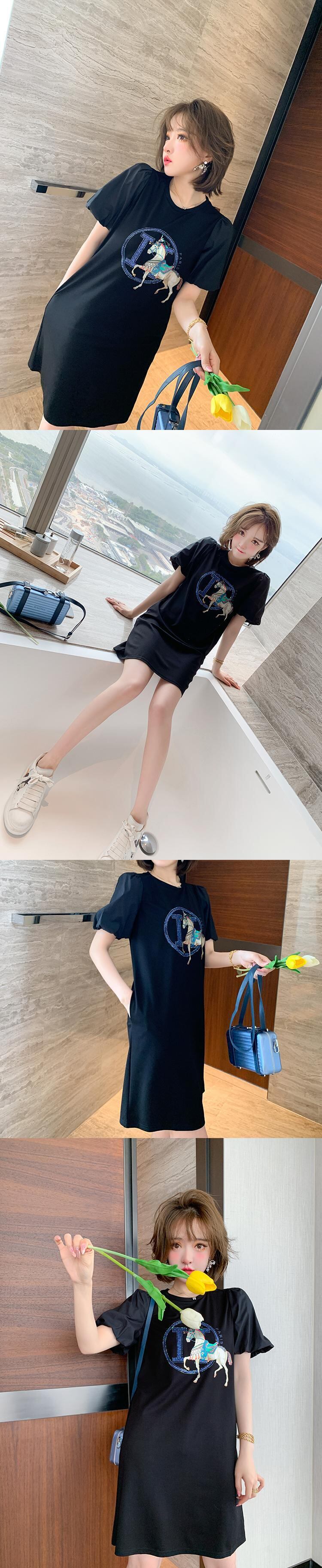 プリント柄ラウンドネックスリーブTシャツ スカート ドレス スプリングサマー 春物 夏物 Oネック MIUCO64614800417