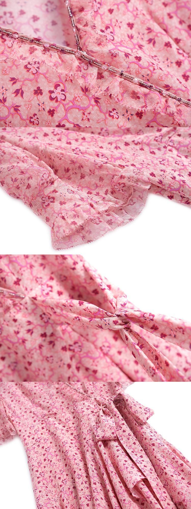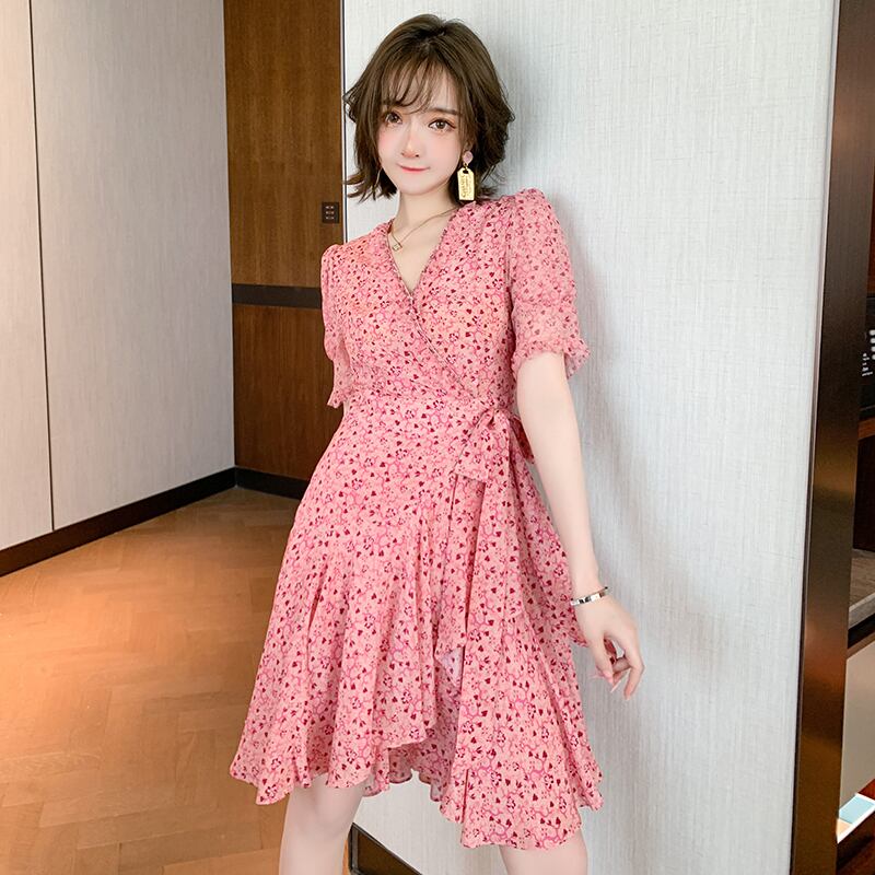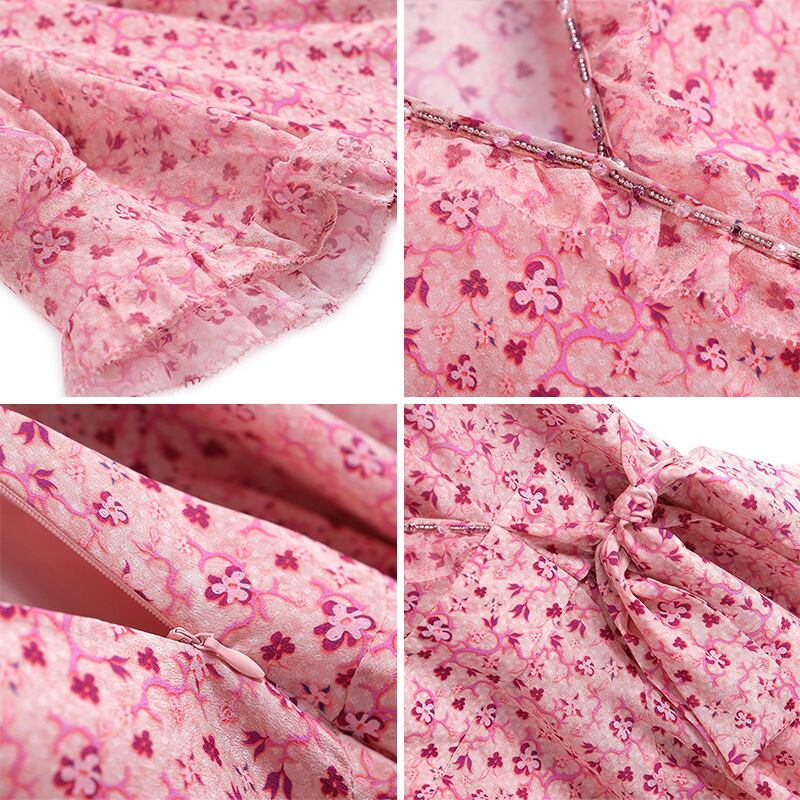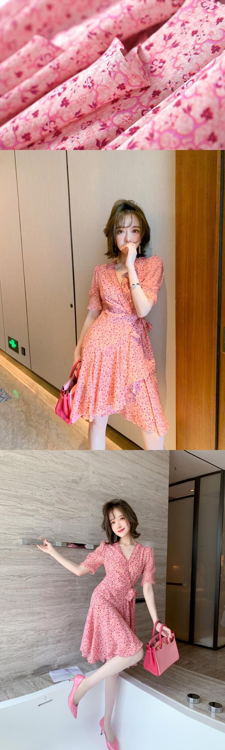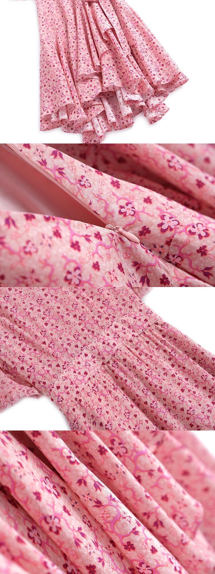 Vネックレースウェストプリントドレス サマー 夏物 MIUCO81669713808