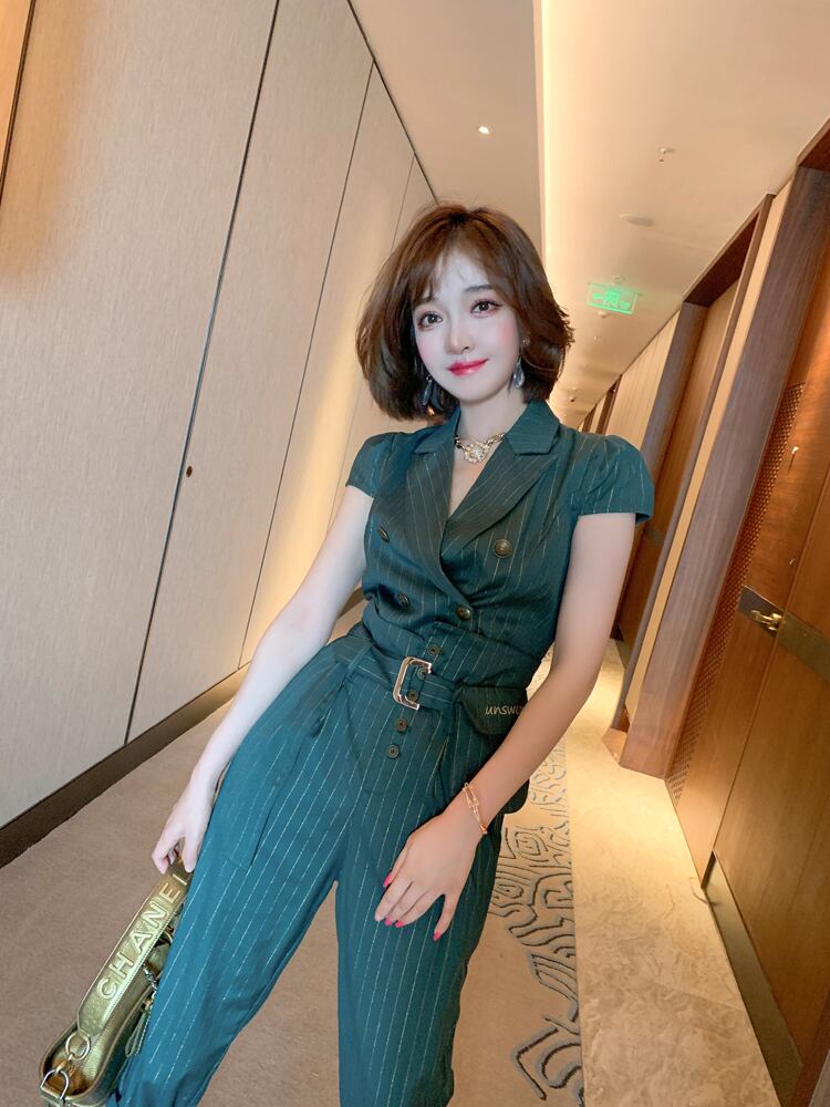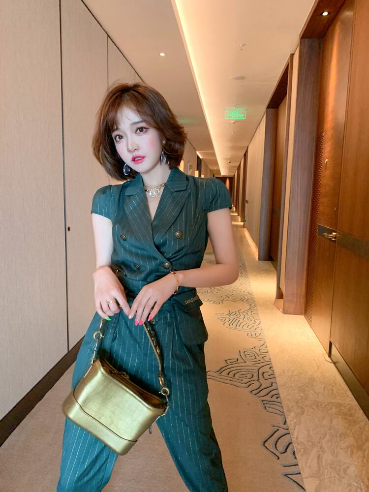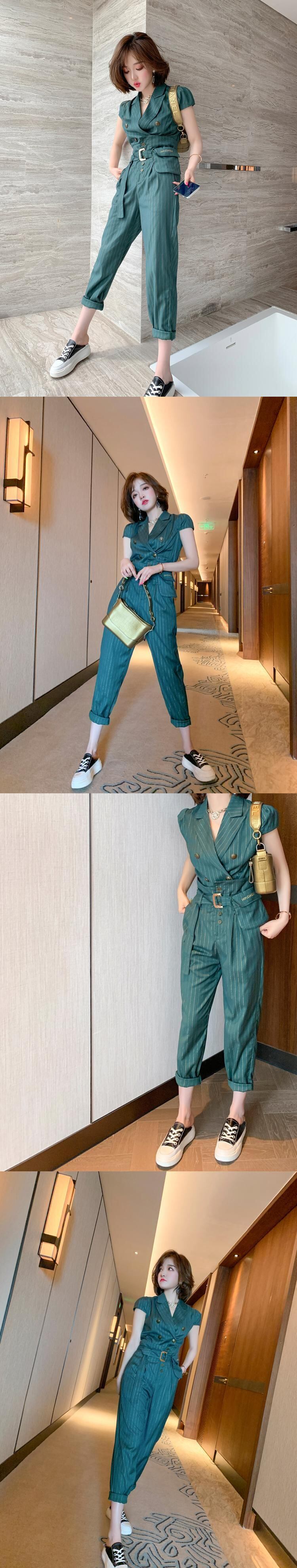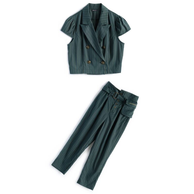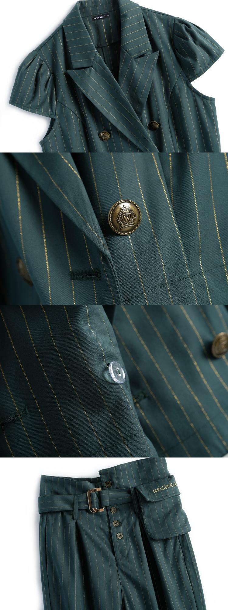 スリーブダブルブレストブラウス ストライプハイウェストウェストカジュアルパンツ レディース MIUCO76873456377