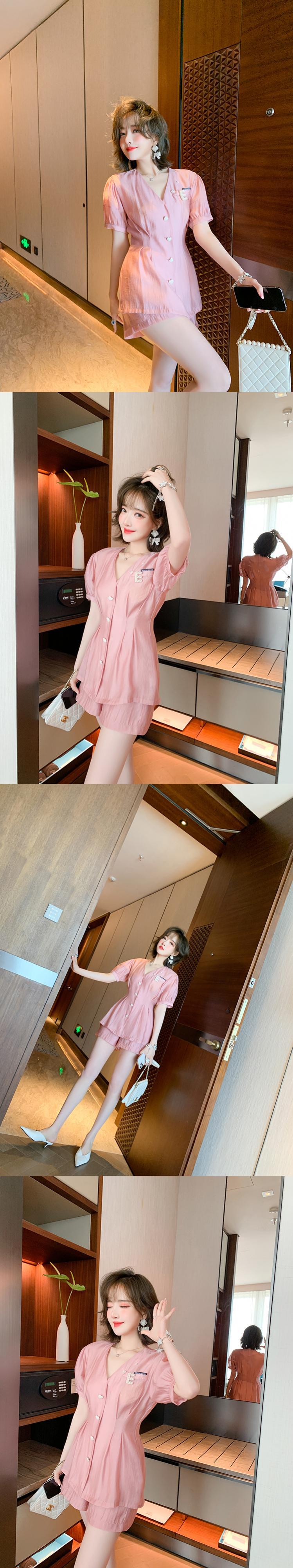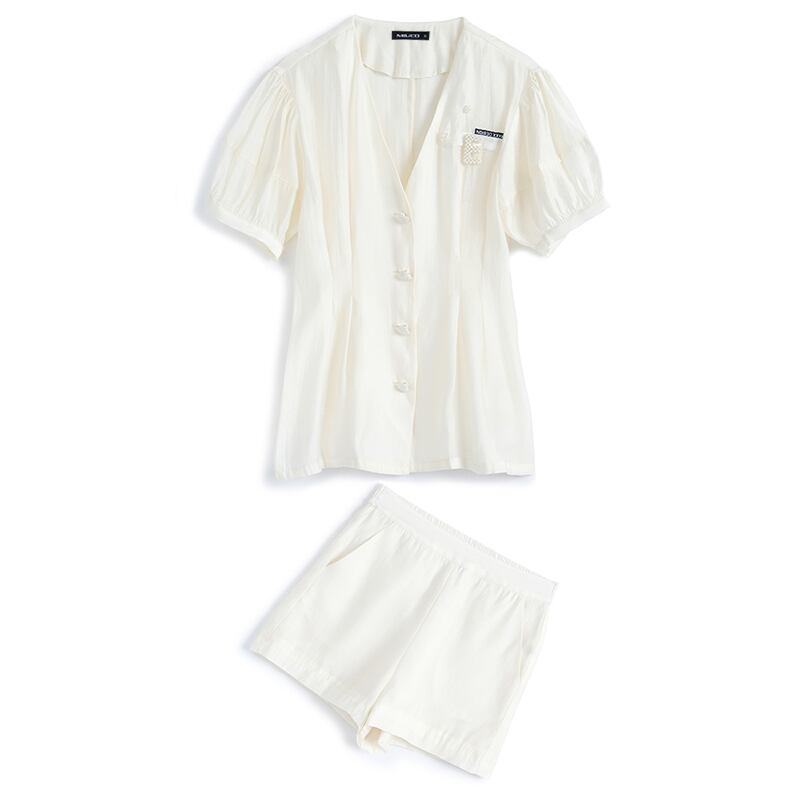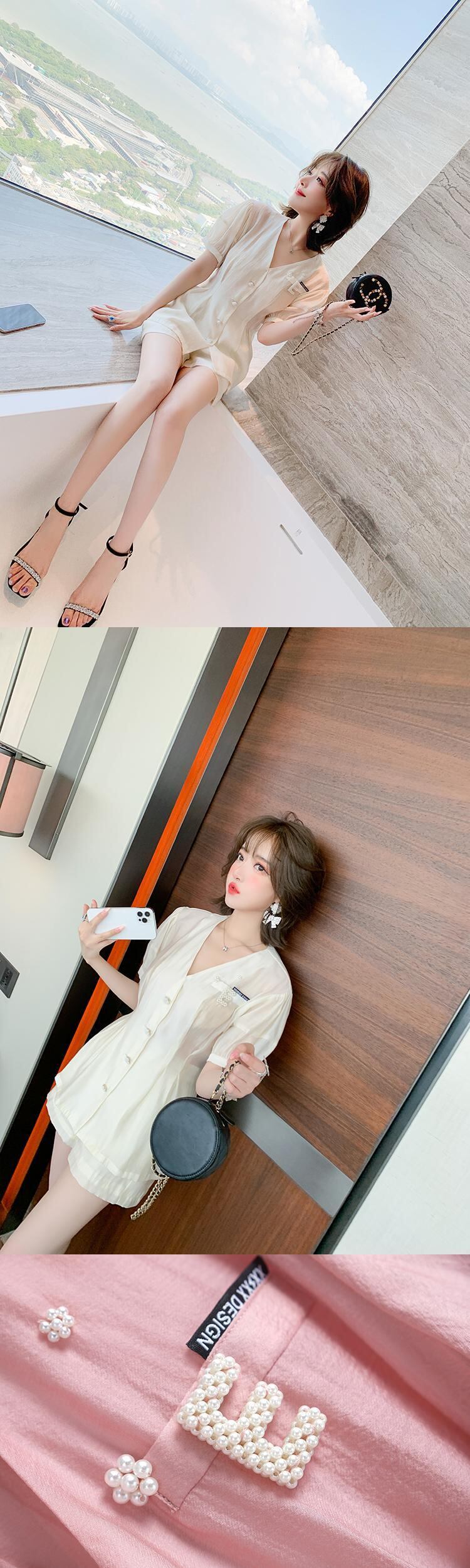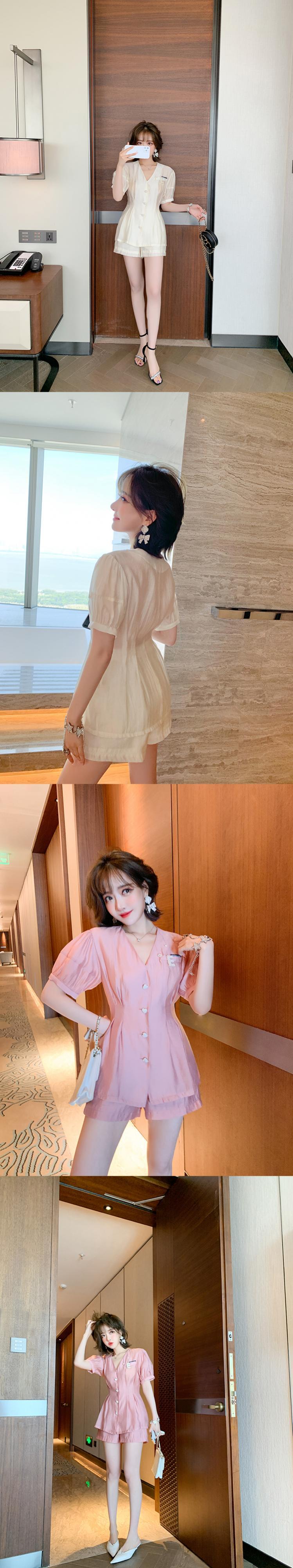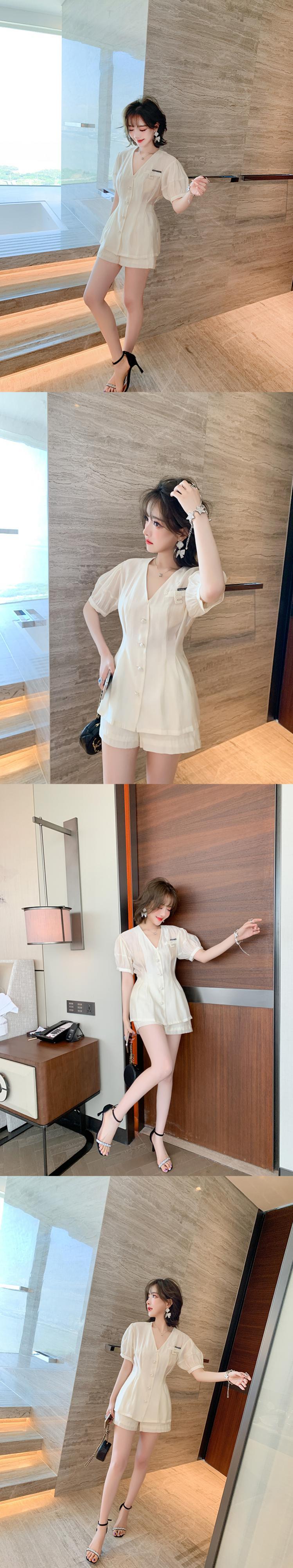 Vネックウェストブラウス ハイウェストAラインショーツ サマー 夏物 ブルマー MIUCO71746091518