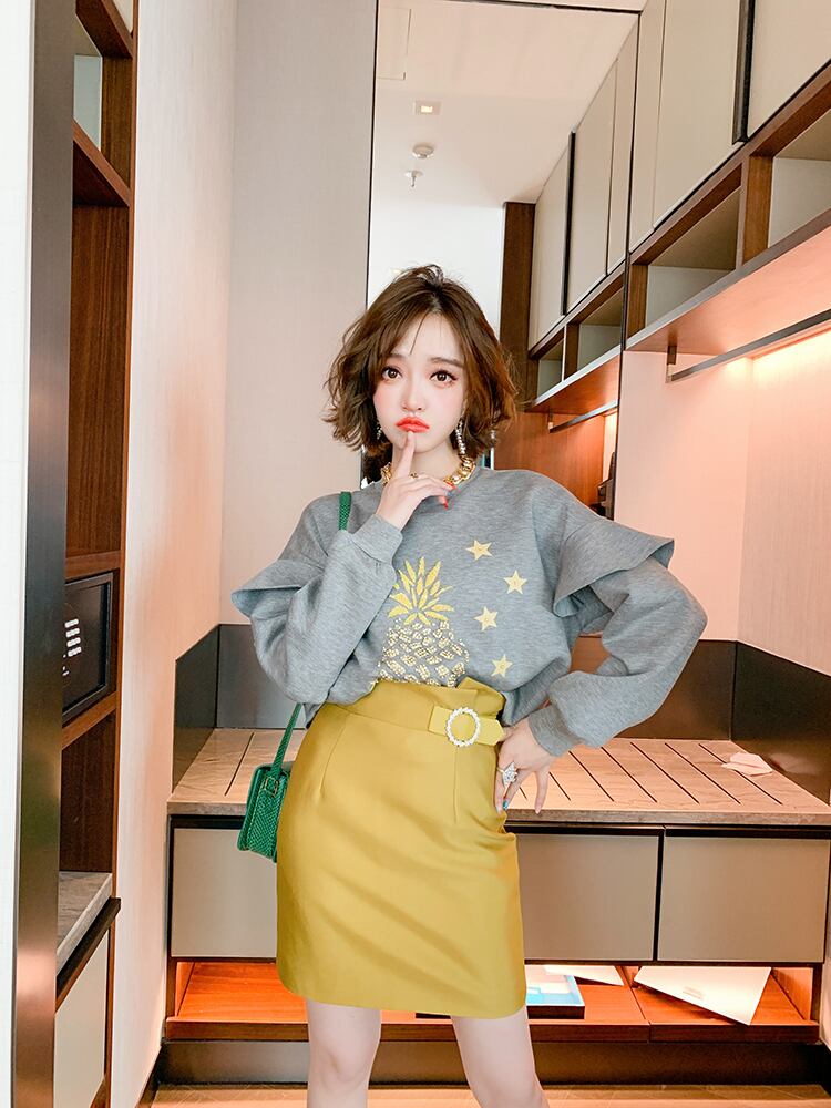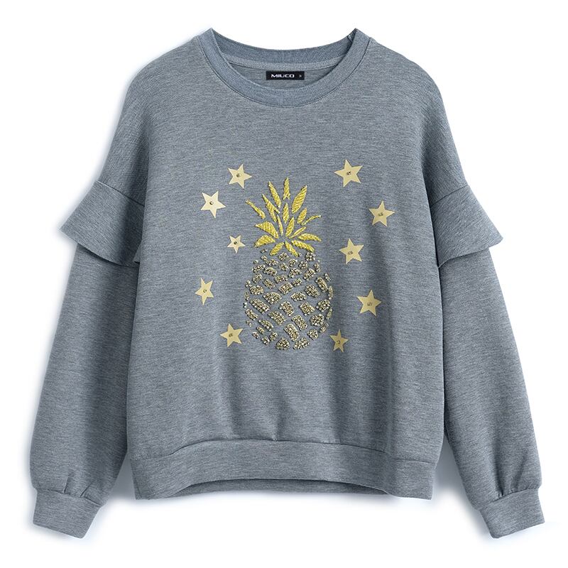 ラウンドネックセーター レディースオータム 秋物 Oネック ステッチ MIUCO76878440237