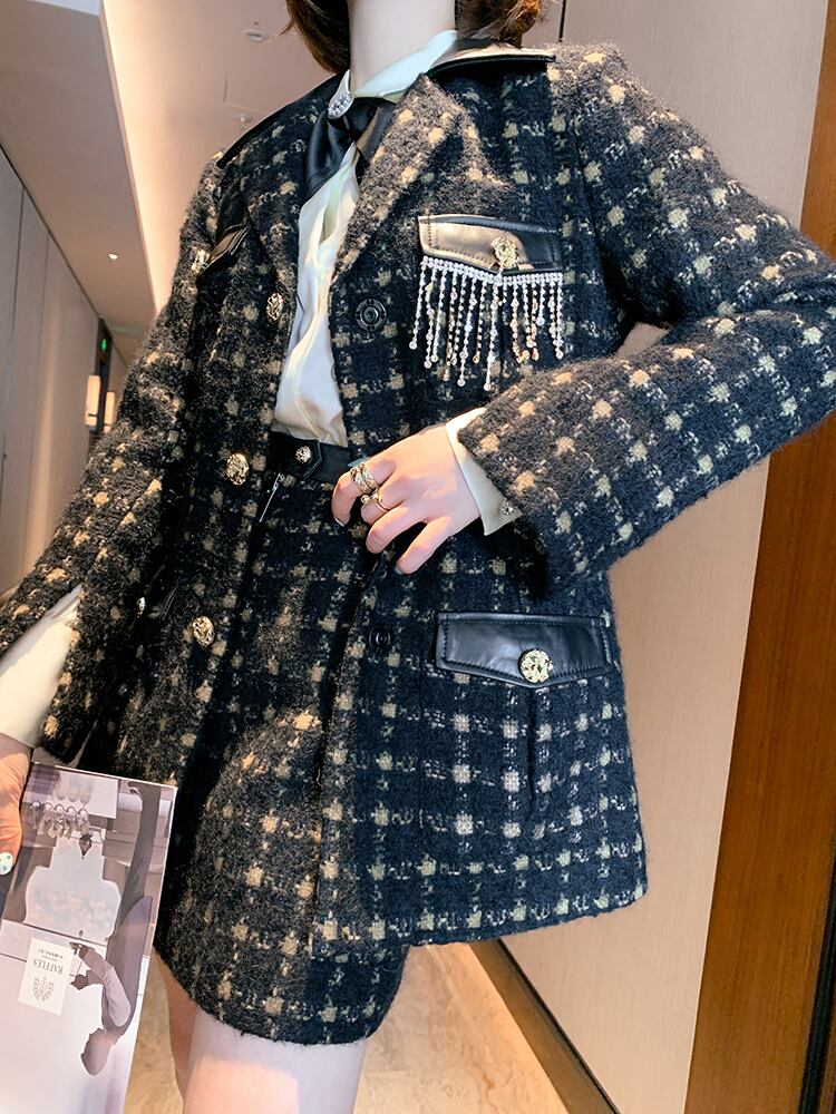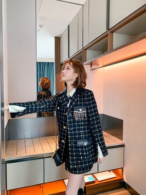 スタイルツィード格子柄スリムジャケット オータムウィンター 秋物 冬物 MIUCO31429299636