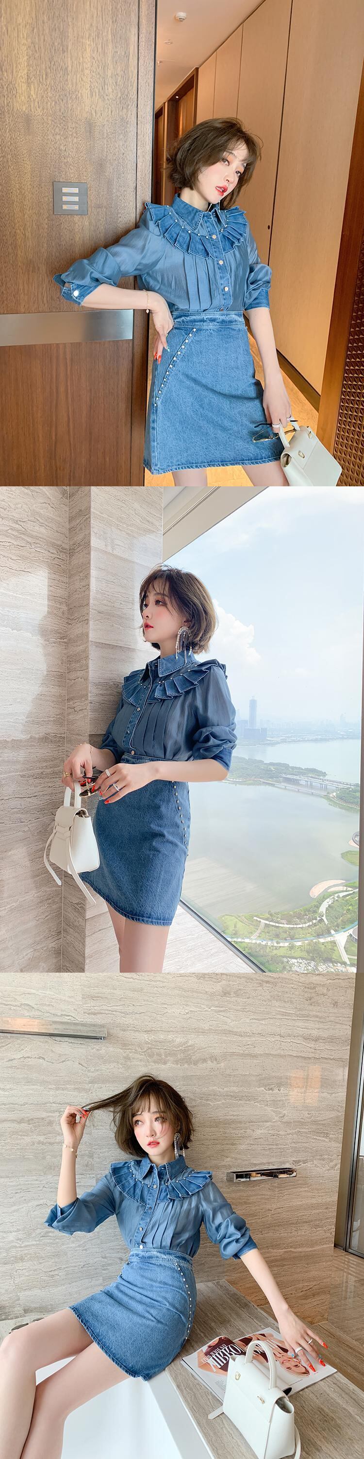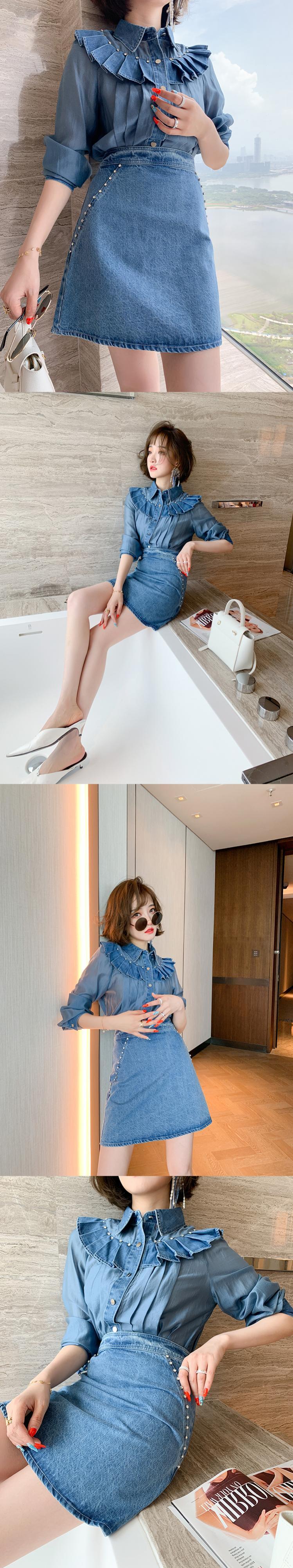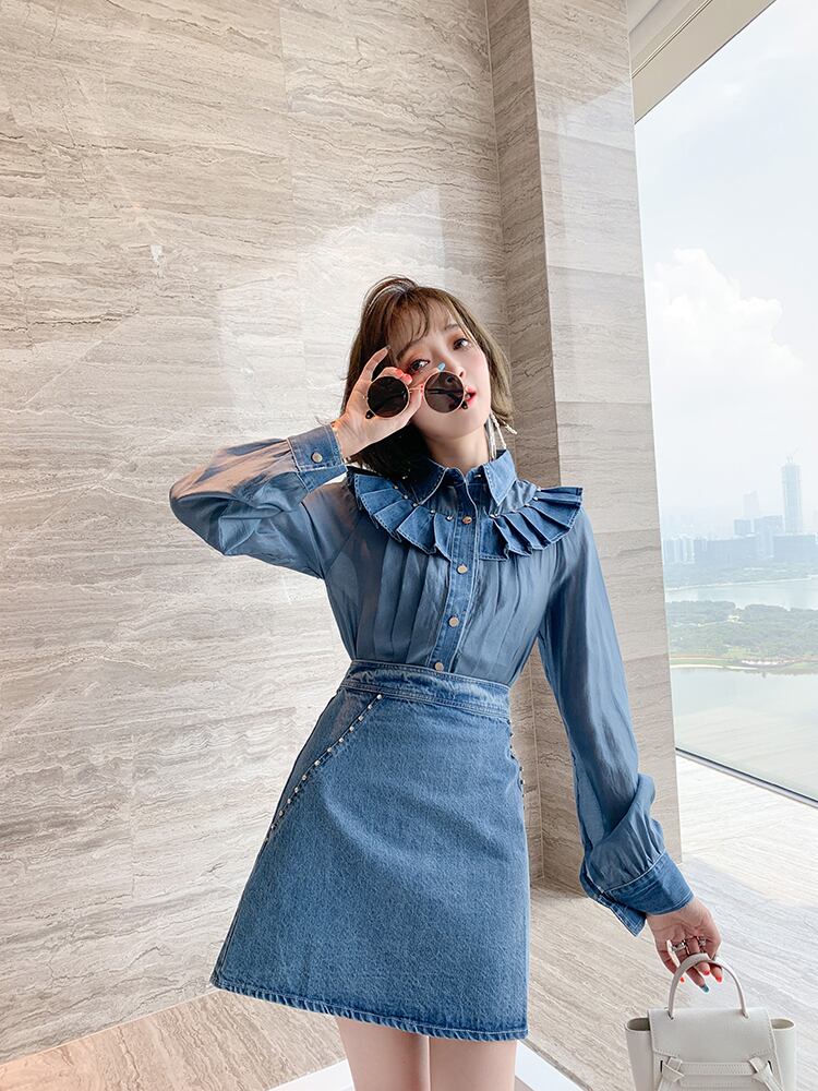 シャツ Aラインスカート オータム 秋物 ステッチ MIUCO29276342043