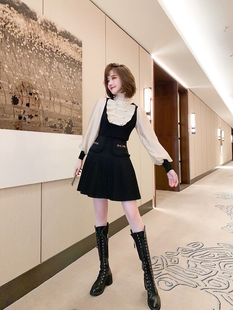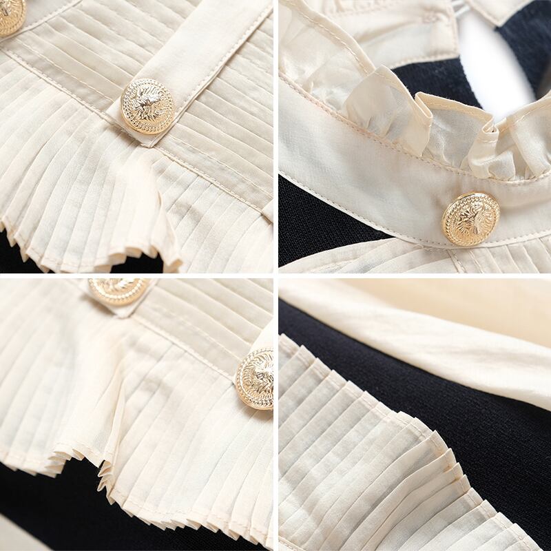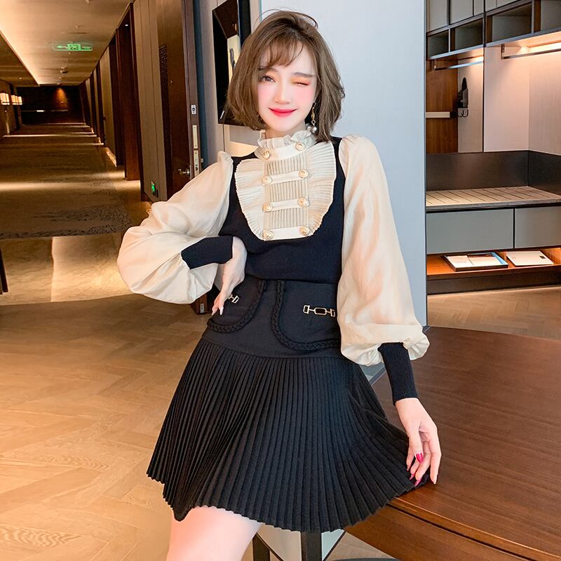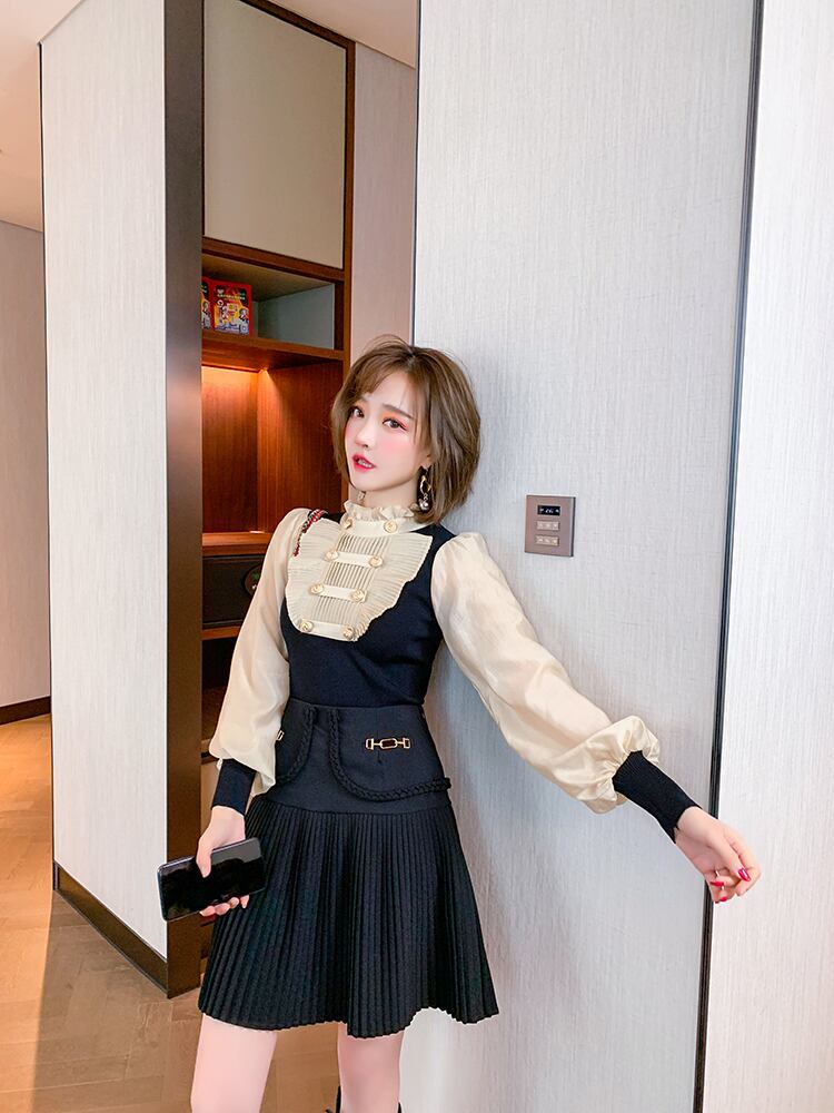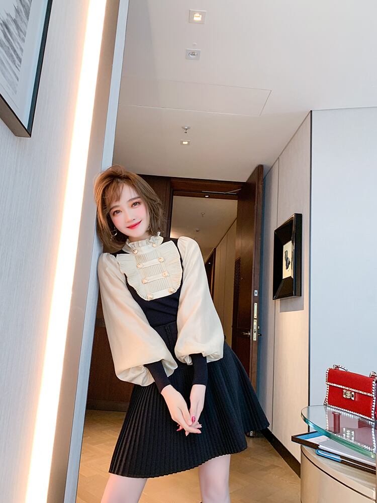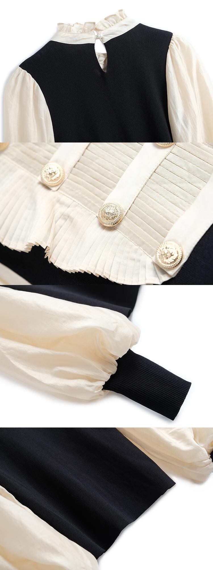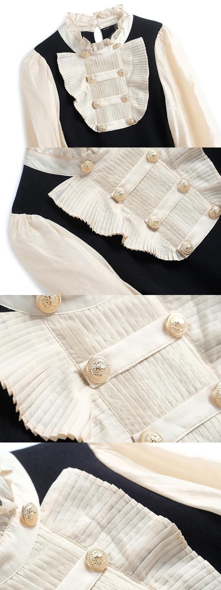 レーススタンドカラーカラープリーツスリーブシャツ スプリング ランタンスリーブ 春物 ステッチ MIUCO74571085435