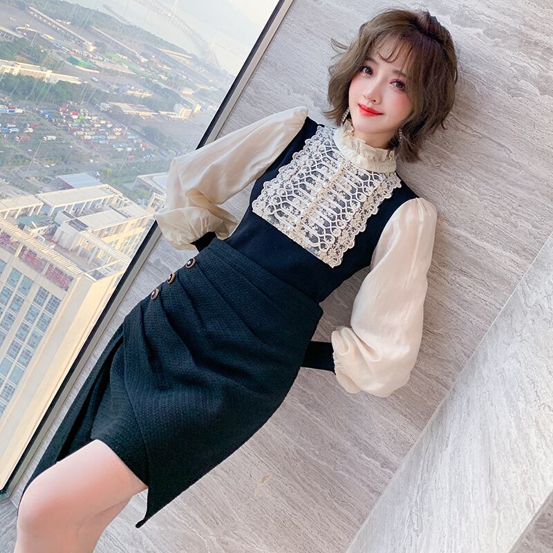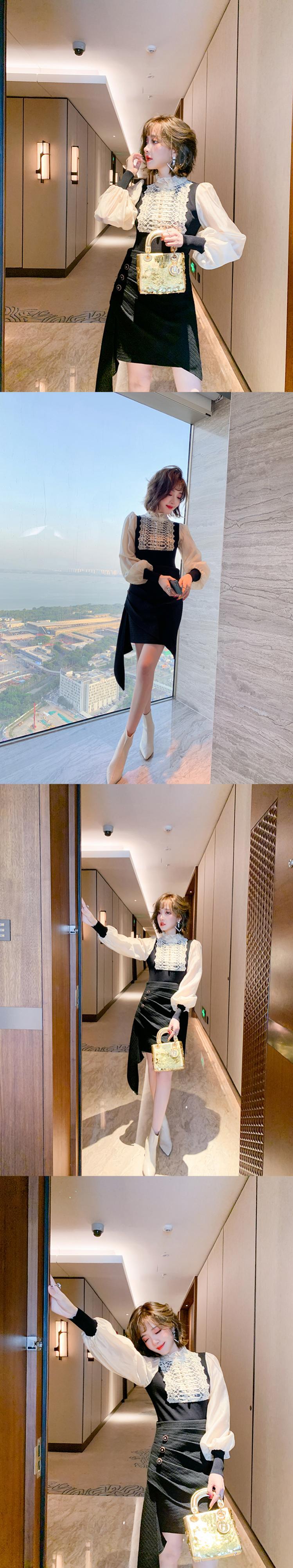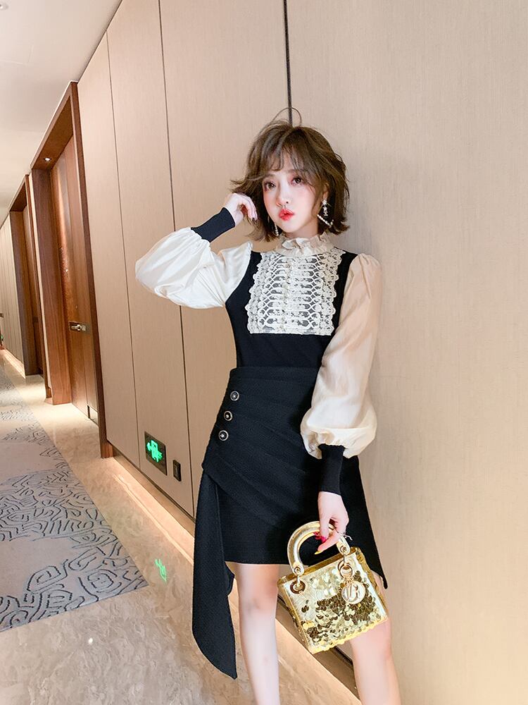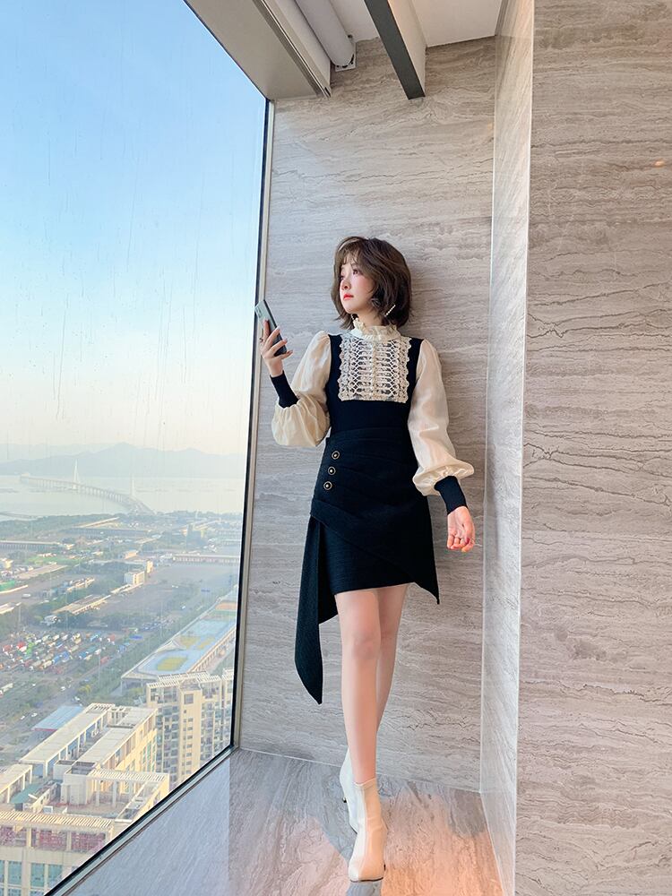 プリーツサイドボタンハイウェストウェストスリムスカート ウィンター 冬物 ステッチ MIUCO9292596602