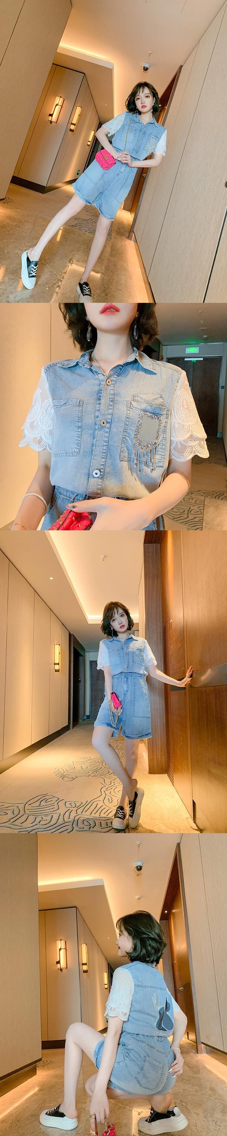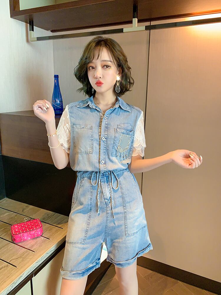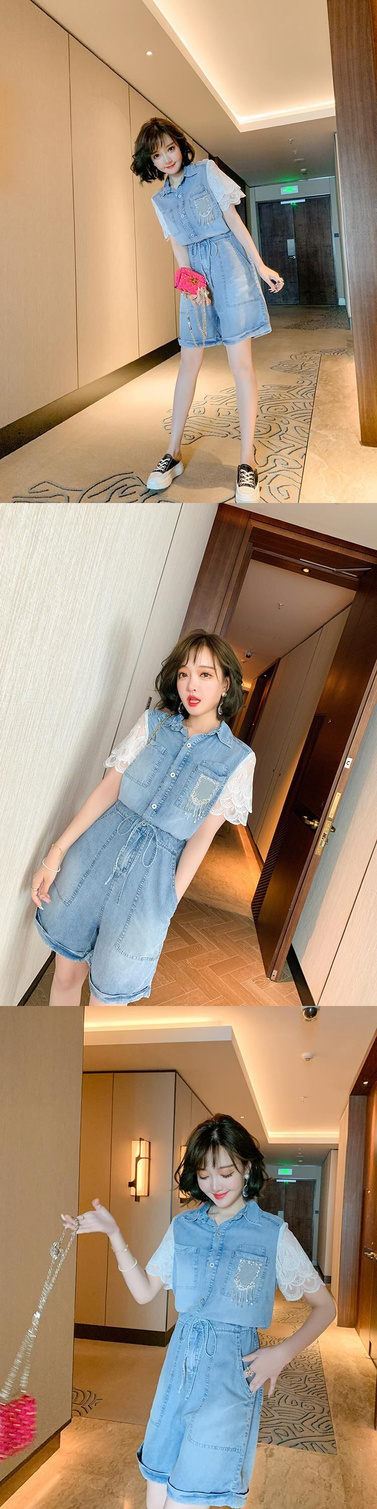 レース刺繍ウェストジャンプスーツ オールインワン サマー 夏物 ステッチ MIUCO80223447978