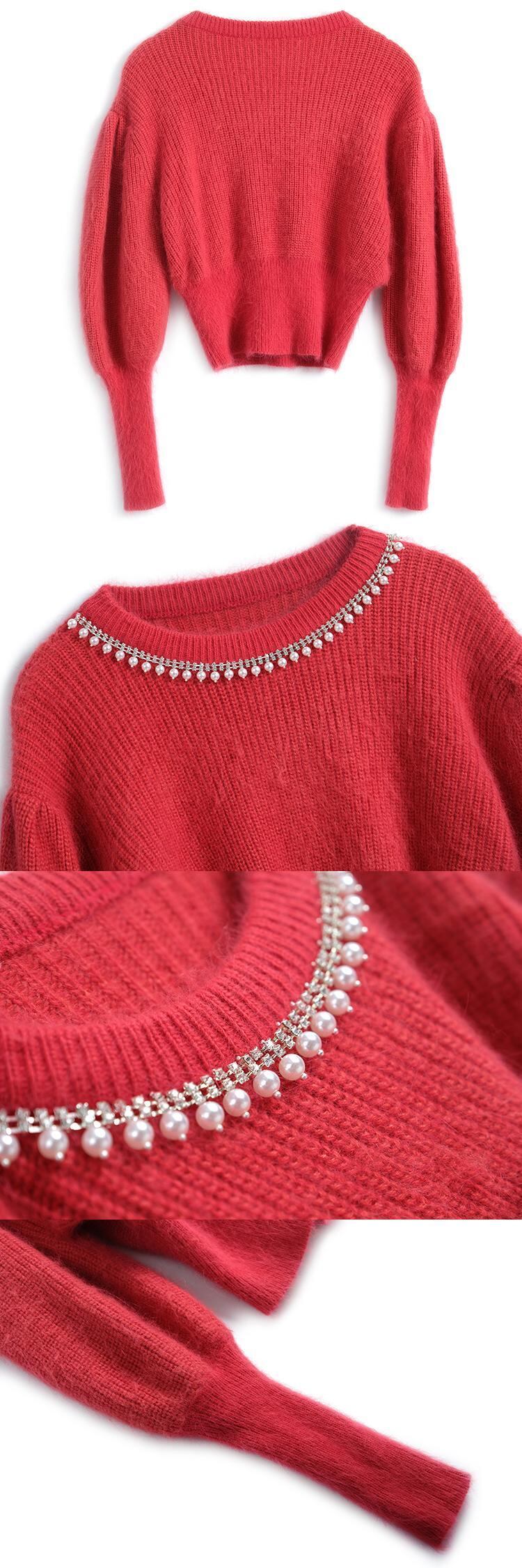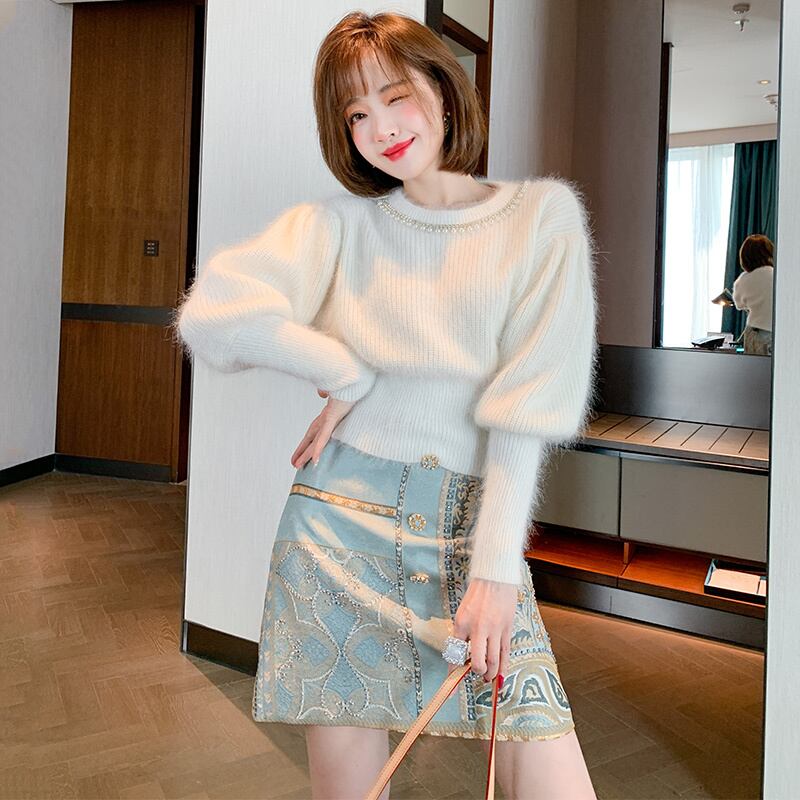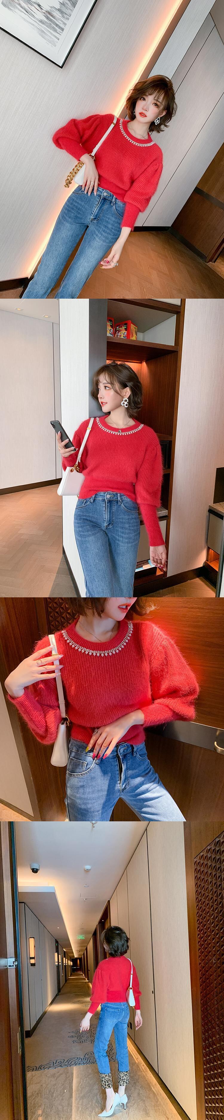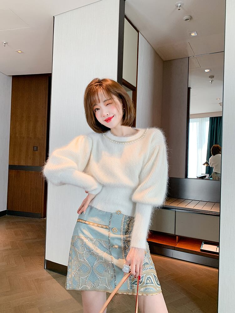 ラウンドネックスリーブニットセーター ウィンター ランタンスリーブ 冬物 Oネック MIUCO24715031224