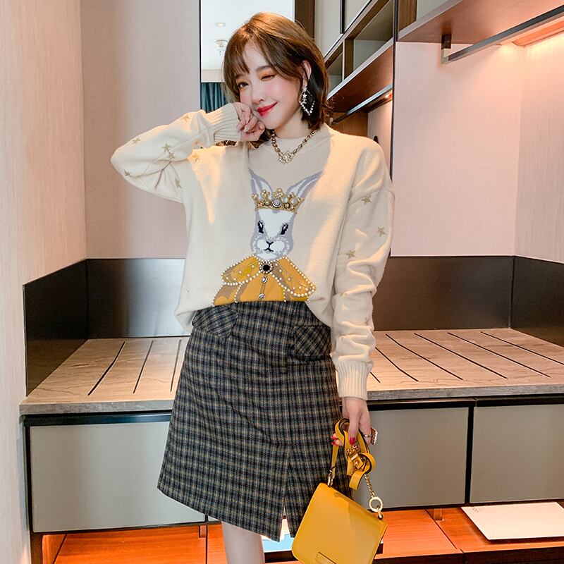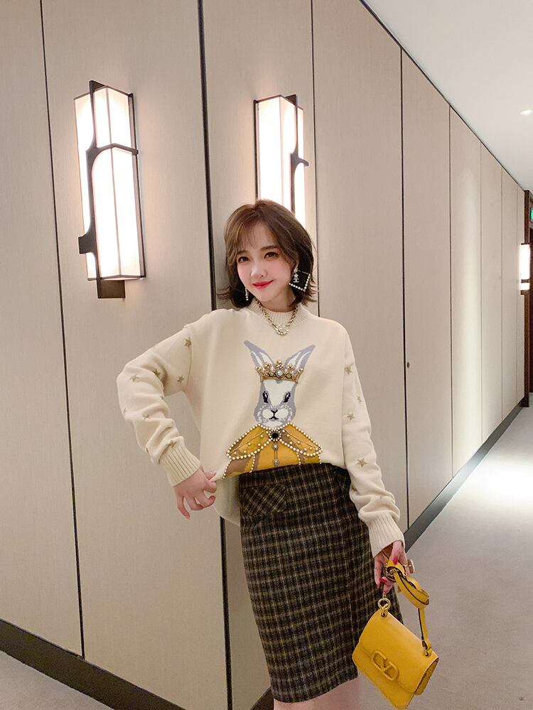 ジャカード刺繍ルーズラウンドネックセーター ウィンター 冬物 Oネック MIUCO57708270389