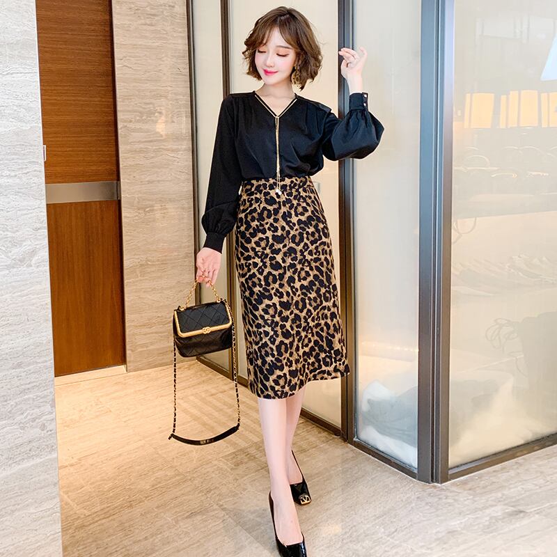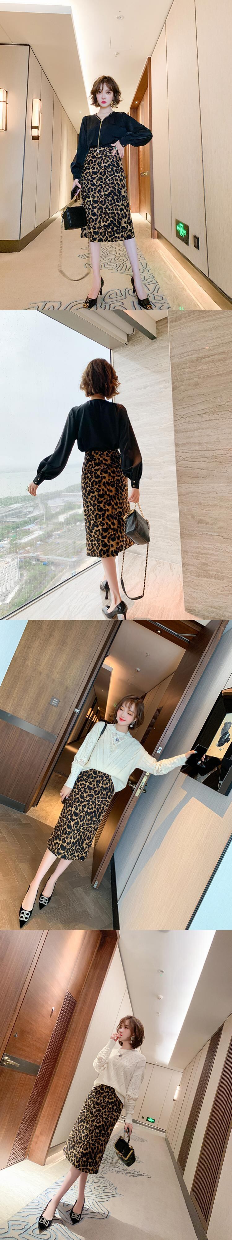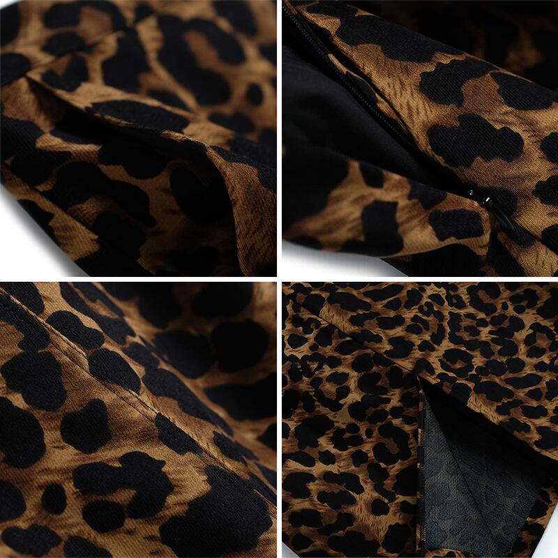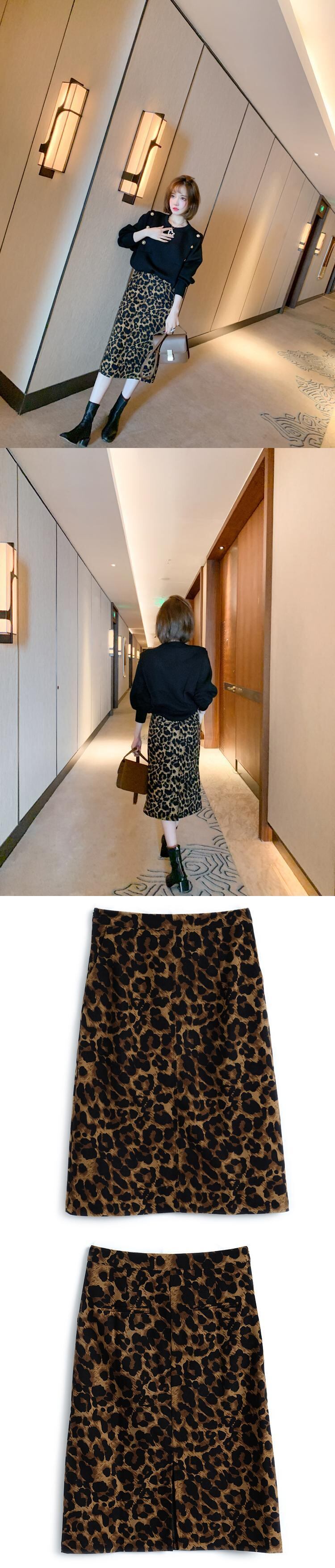 ハイウェストスリムスタンダードレオパードプリント柄スカート オータムウィンター レトロ 秋物 冬物 MIUCO92062992439
