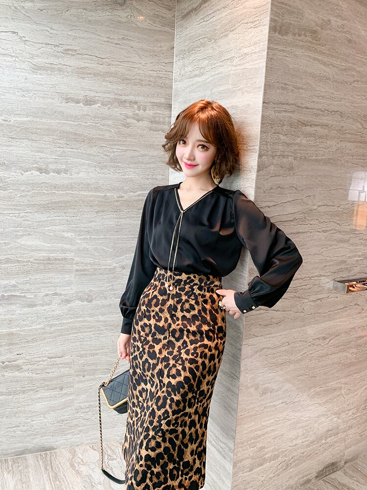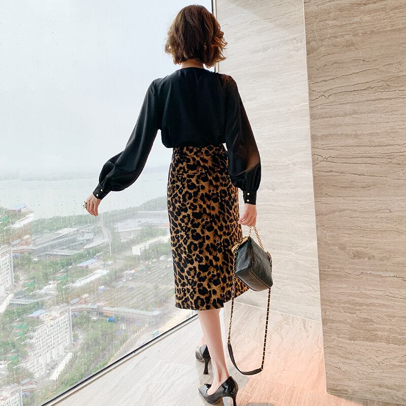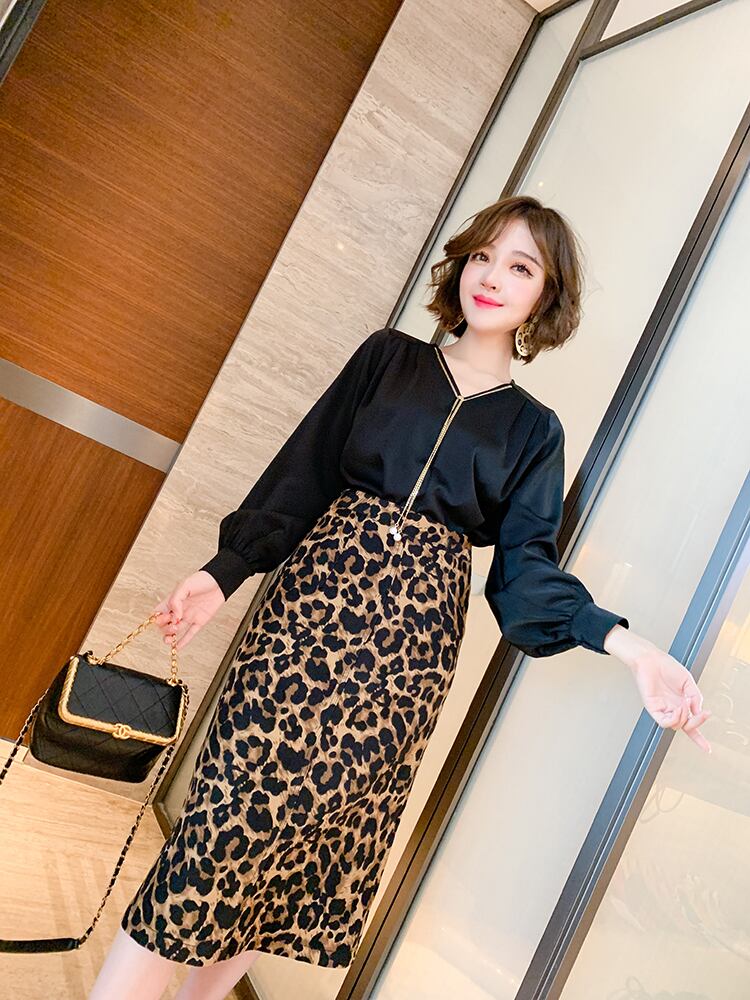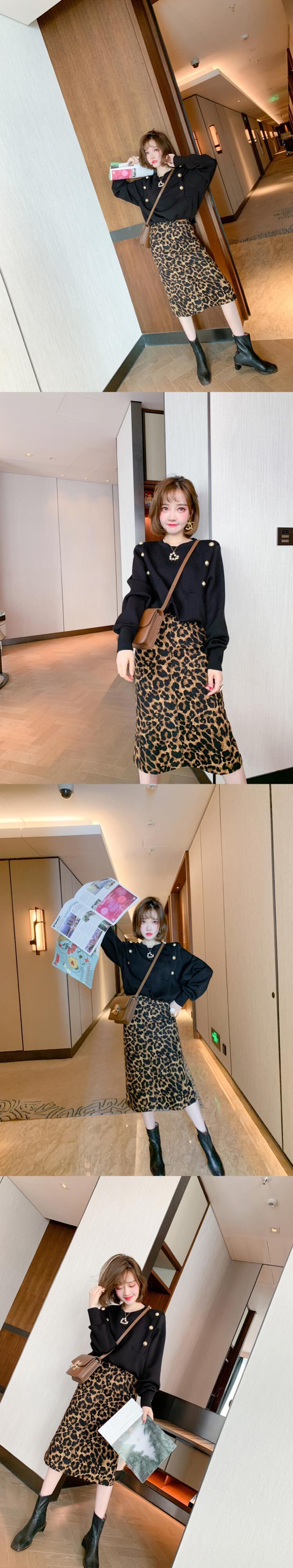 ハイウェストスリムスタンダードレオパードプリント柄スカート オータムウィンター レトロ 秋物 冬物 MIUCO92062992439