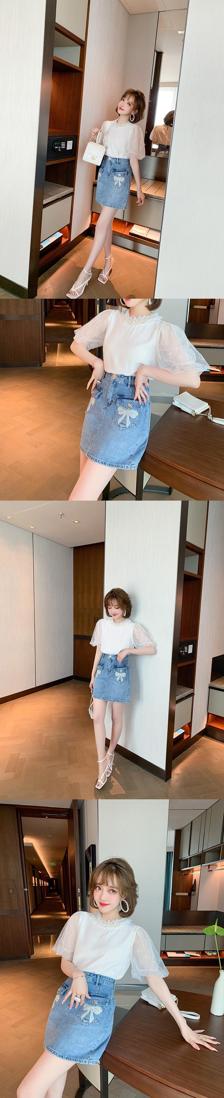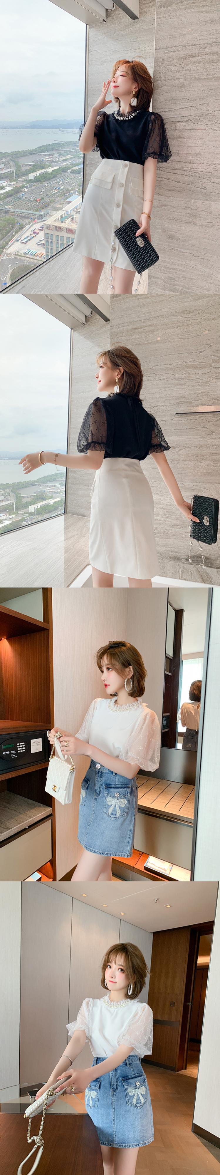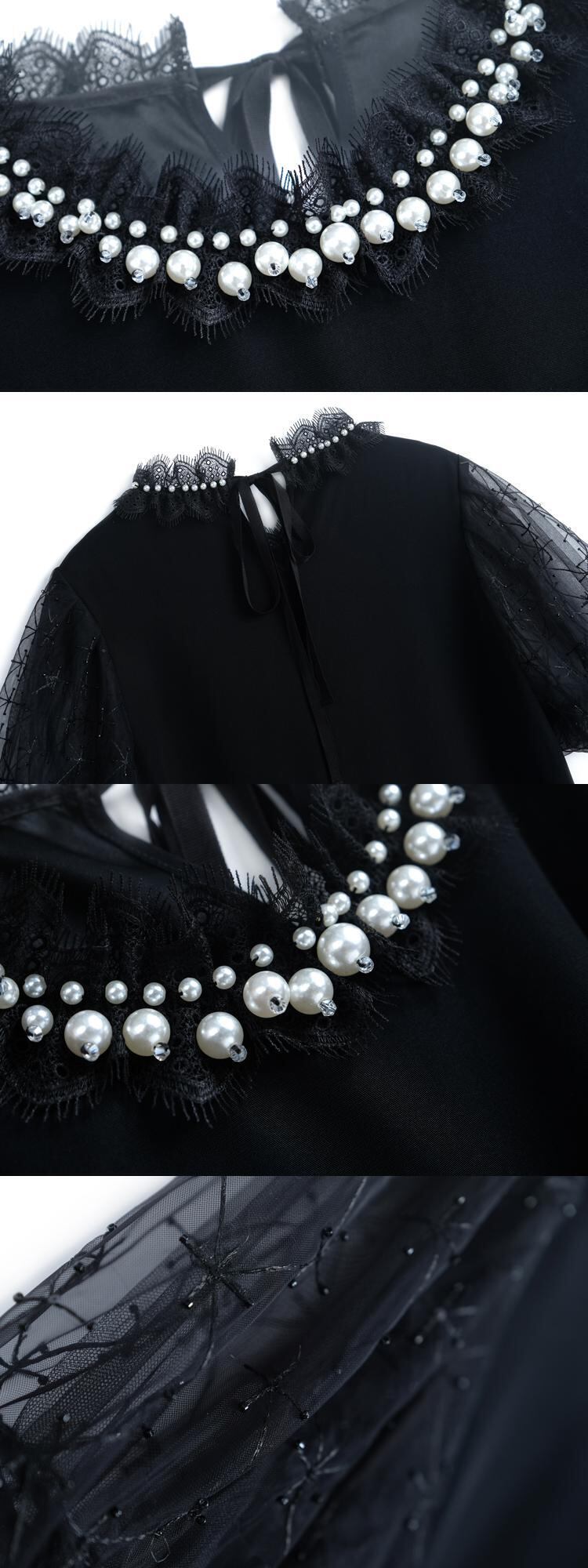 レースカラースリーブスパンコールトップス サマー レッド 刺繍 夏物 MIUCO99487147526
