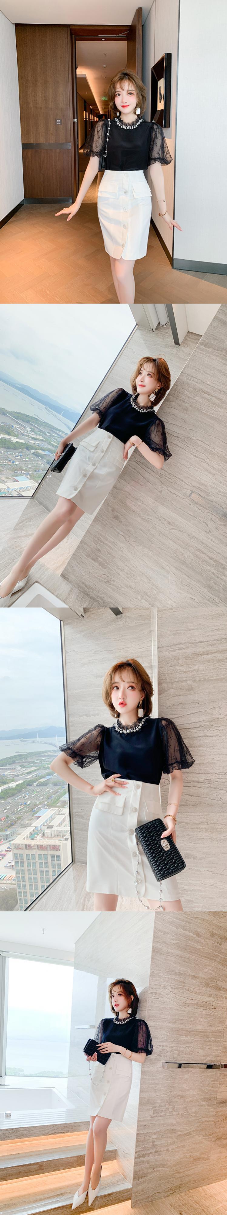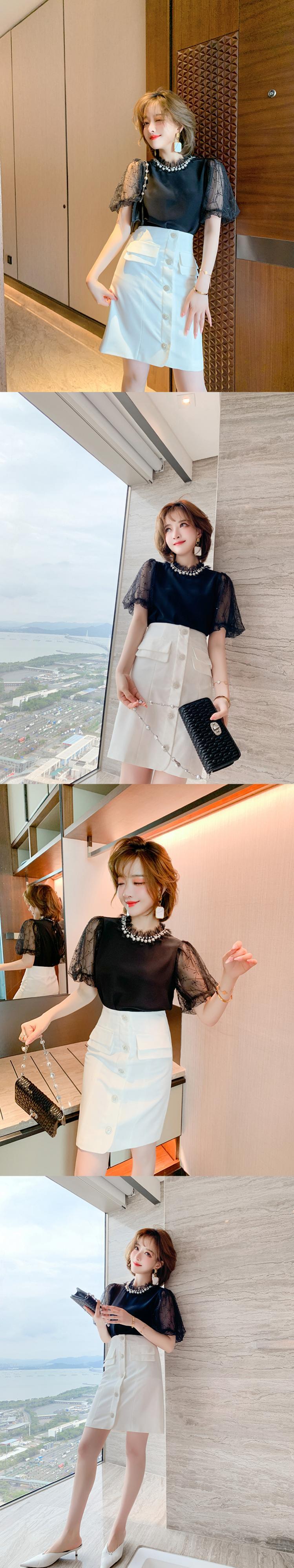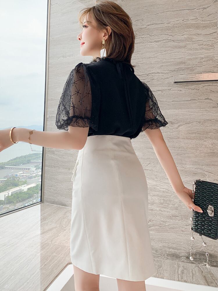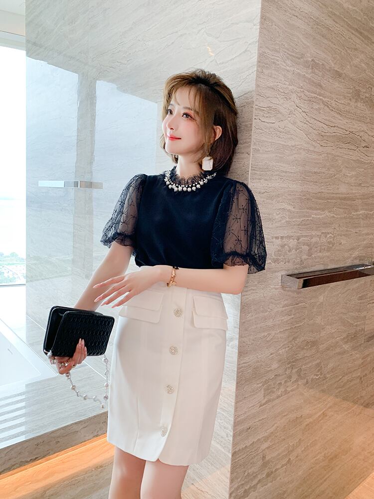 レースカラースリーブスパンコールトップス サマー レッド 刺繍 夏物 MIUCO99487147526
