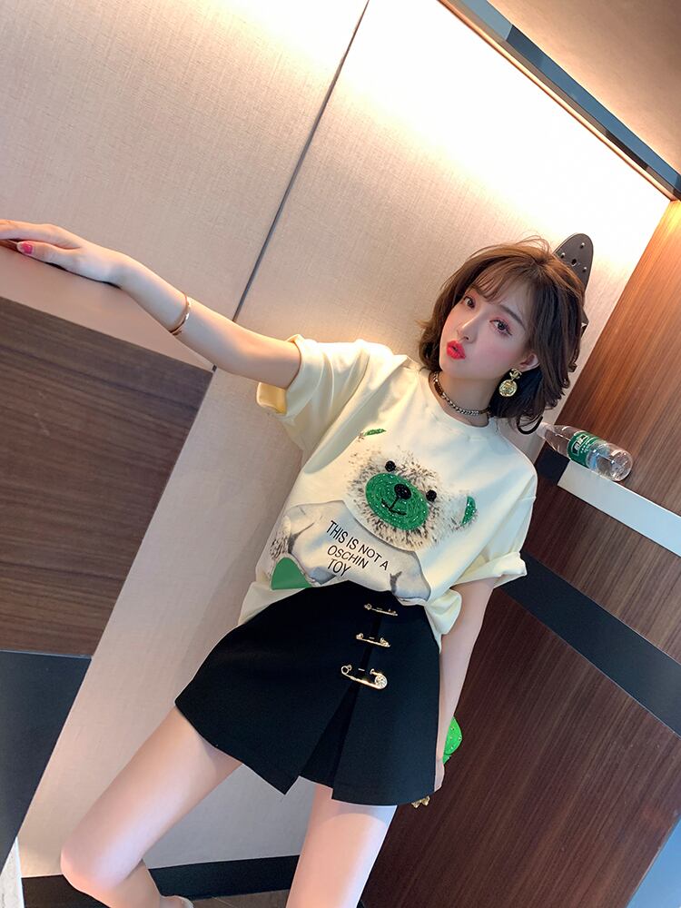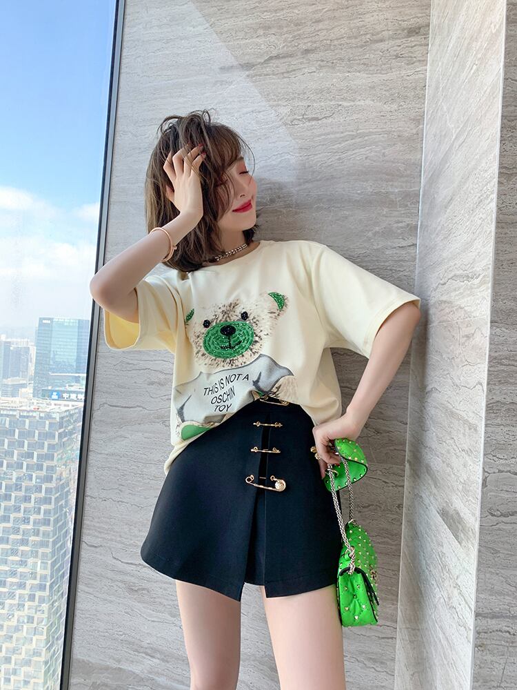 ラウンドネックパターンプリントTシャツ スプリング 春物 Oネック MIUCO82630097700